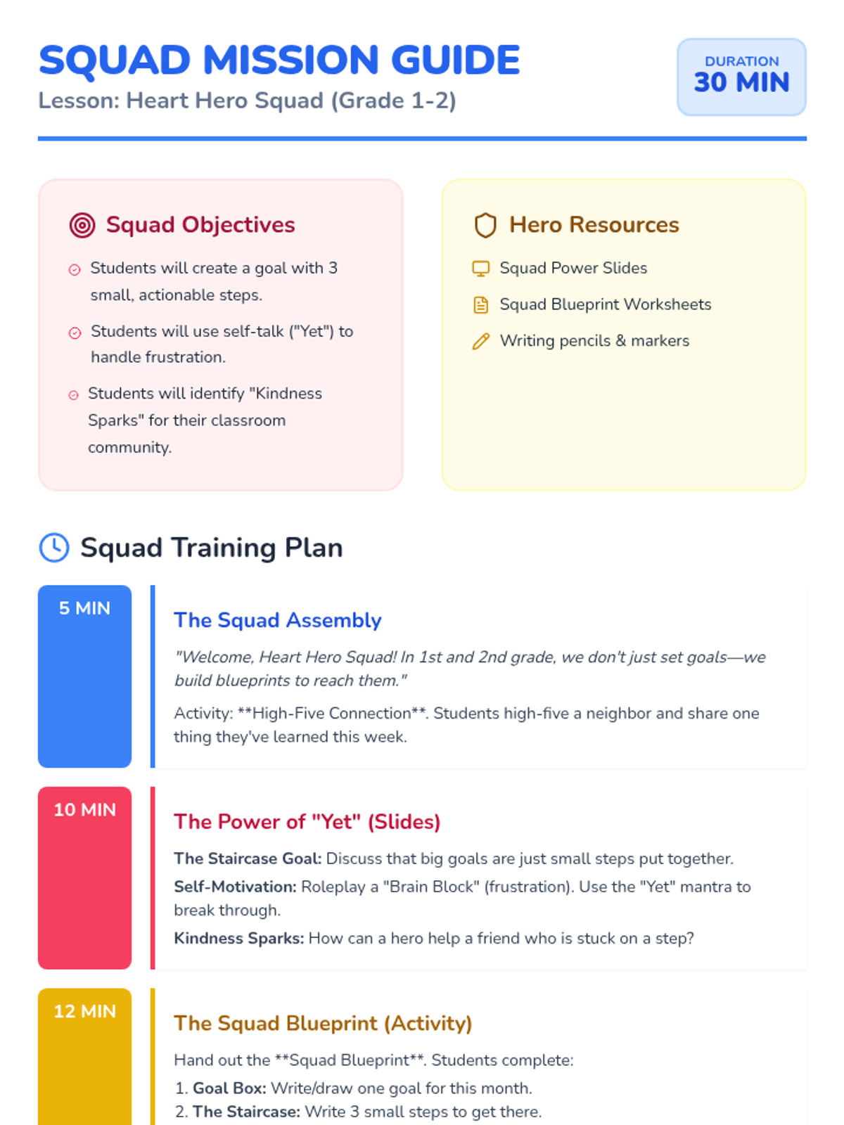 A series of lessons focused on self-motivation, goal setting, and kindness using the 'Heart Hero' metaphor, tailored for early elementary grades.