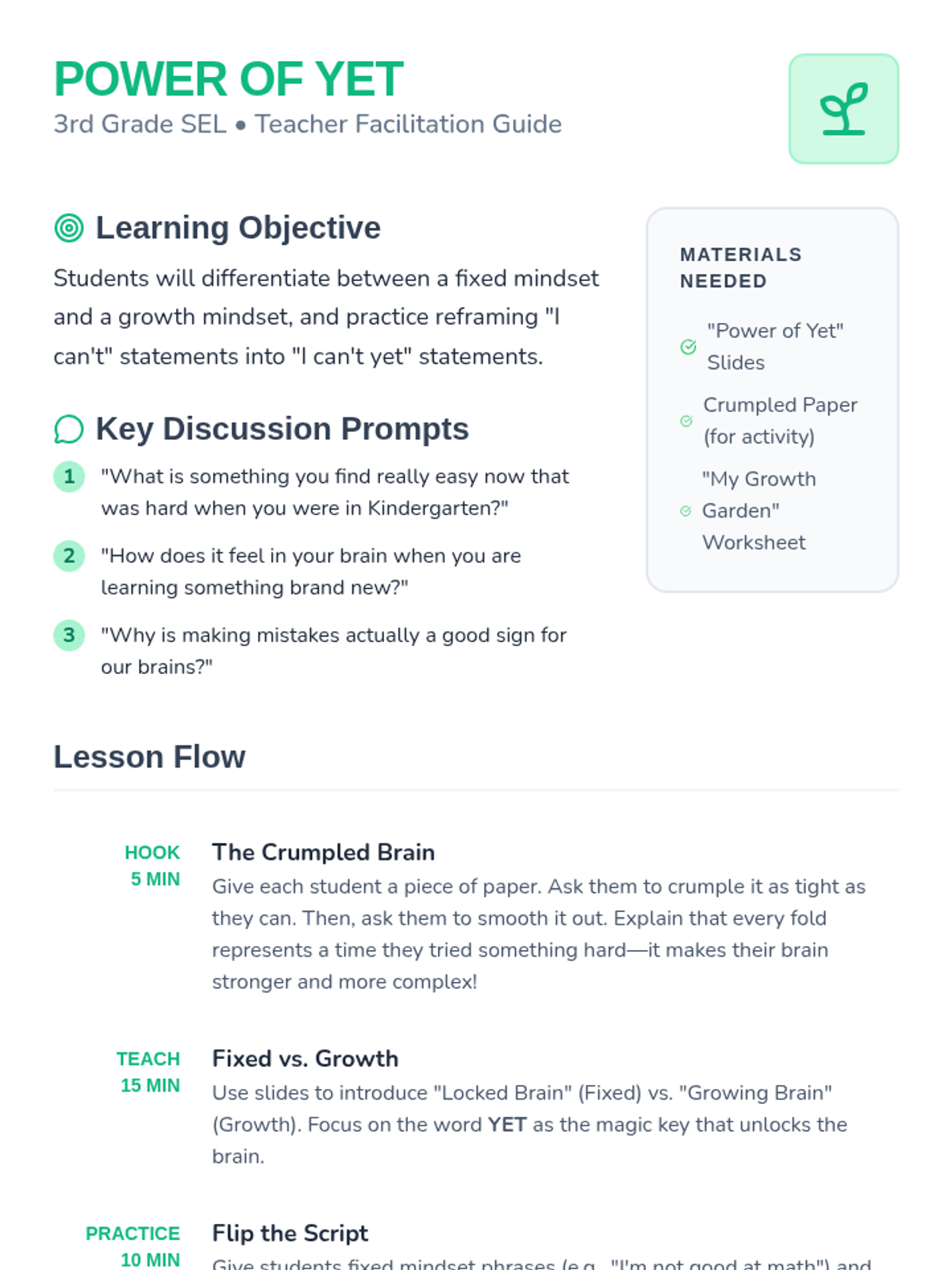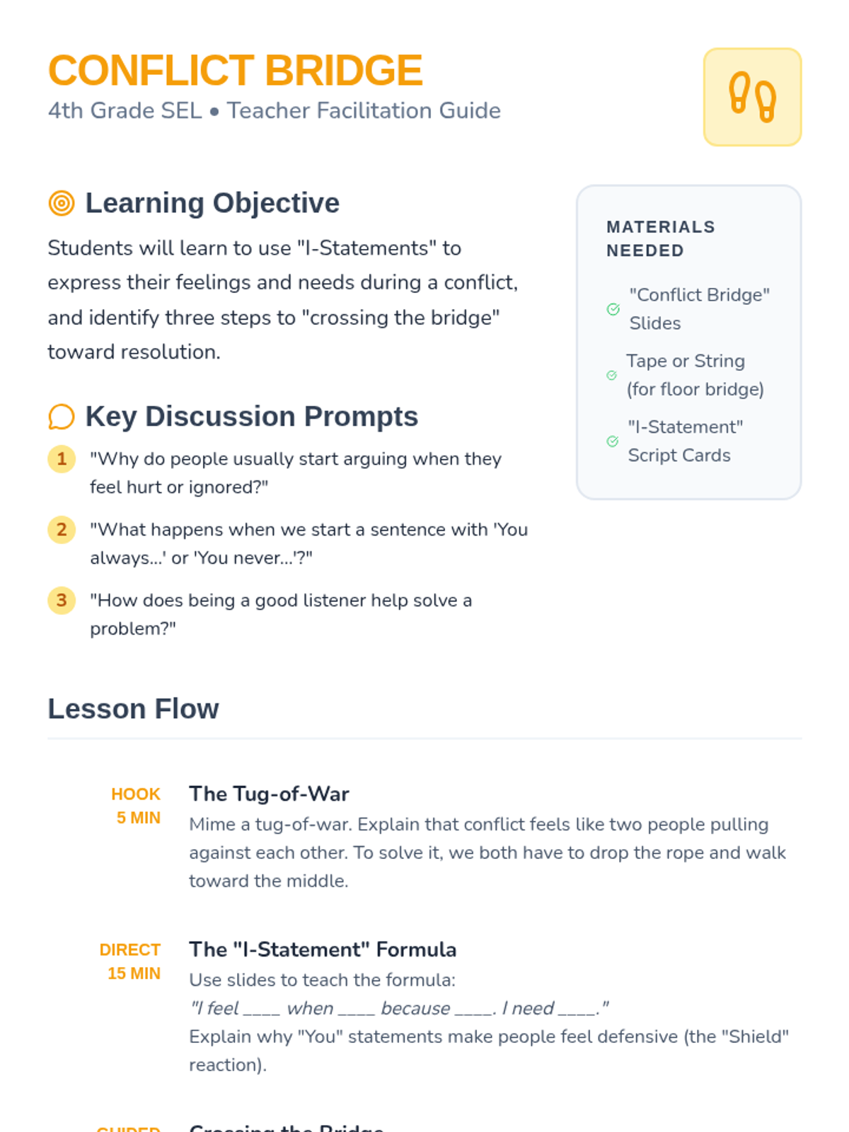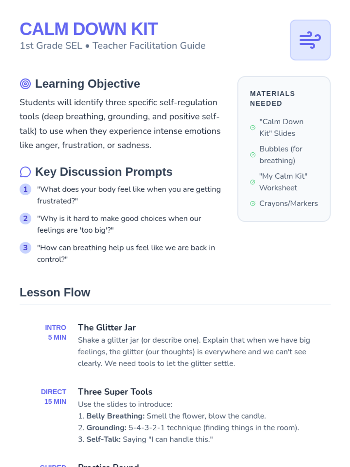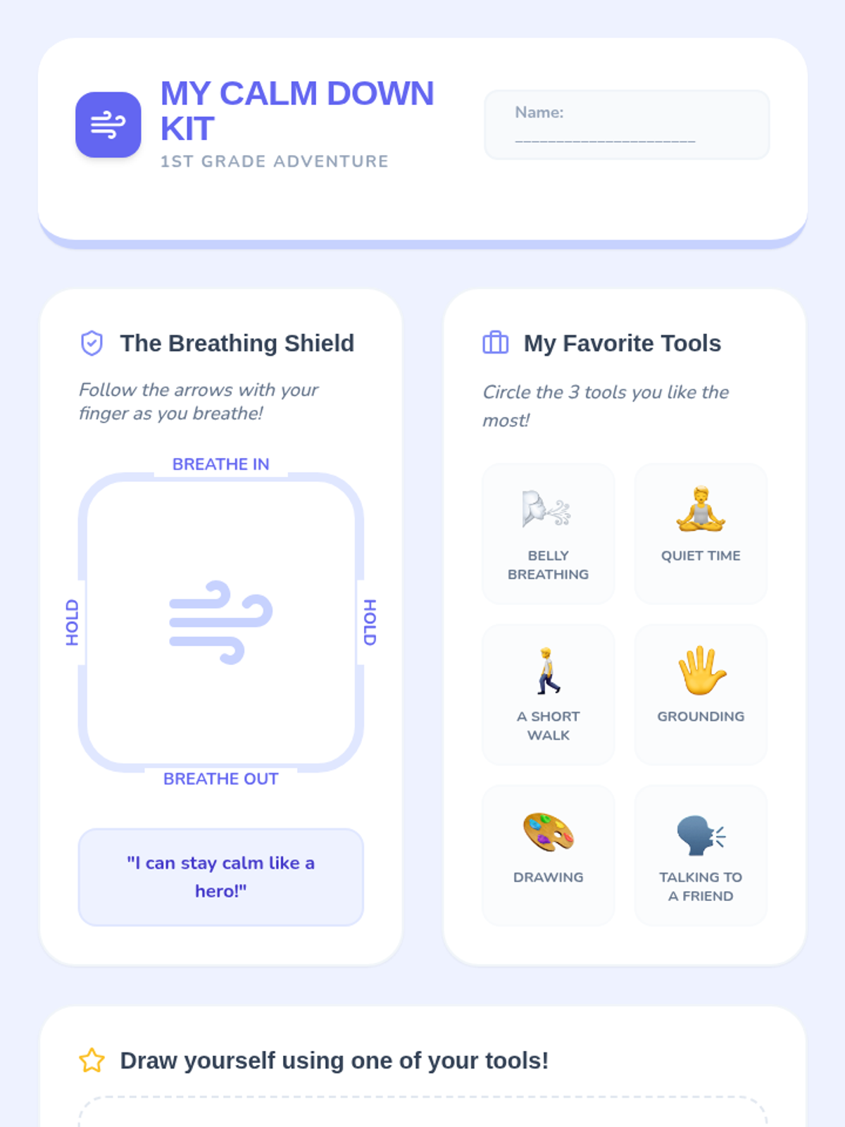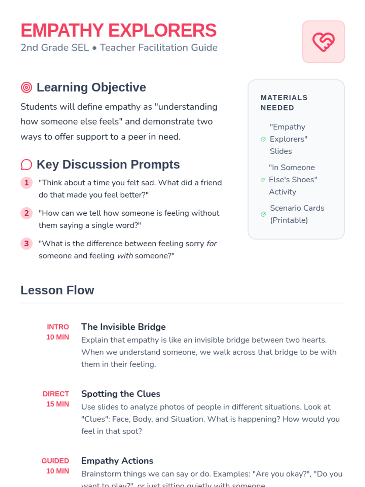 A comprehensive K-5 Social Emotional Learning progression designed to build core competencies from basic emotion recognition to complex decision-making and empathy. Each grade level focuses on a key pillar of SEL through engaging visuals and practical activities.