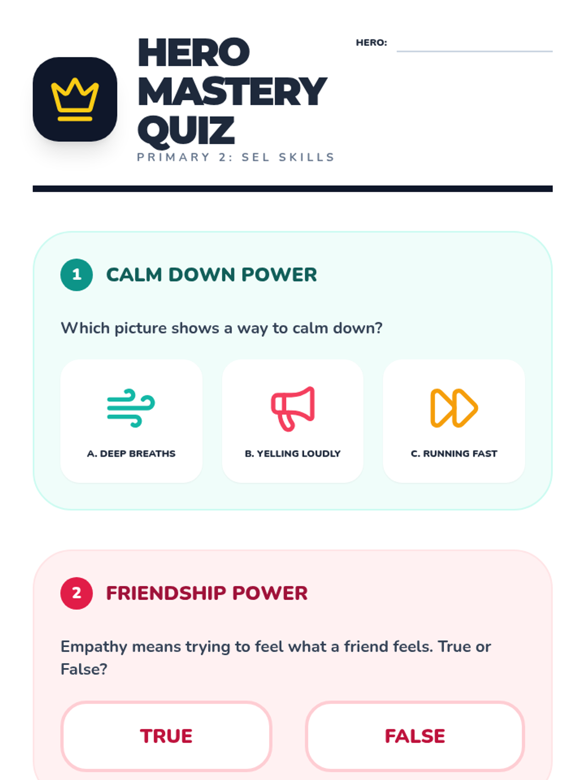 A comprehensive SEL program for Primary 2 students focused on building empathy, emotional regulation, and personal growth through a 'Superhero' theme. The unit culminates in a 'Heart Hero' final assessment to gauge student understanding of core concepts.
