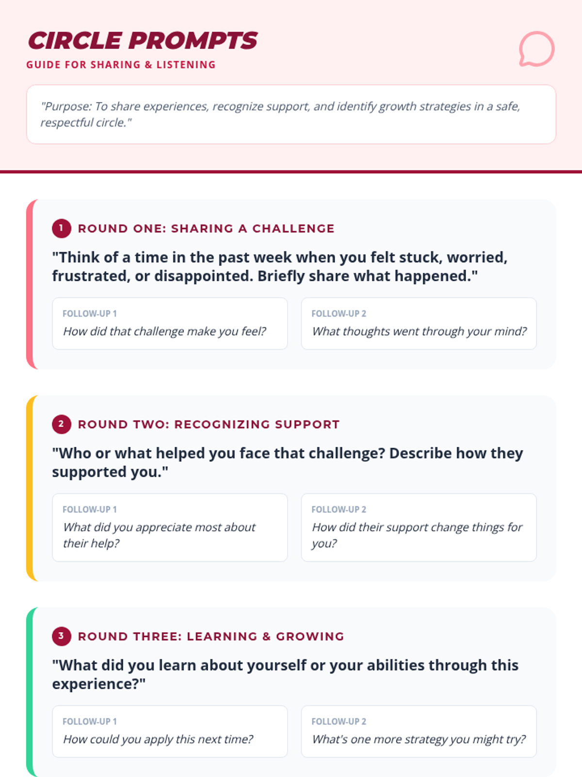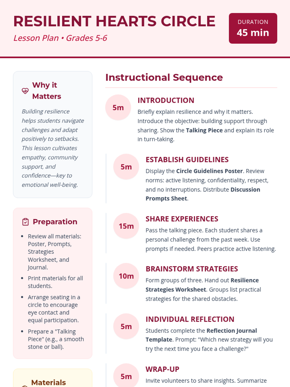A comprehensive two-part sequence for Grades 3-6 focused on developing core social-emotional skills: active listening and building resilience through community support. Students transition from mastering individual communication habits to fostering collective empathy and problem-solving.