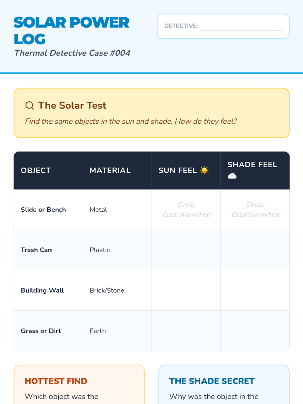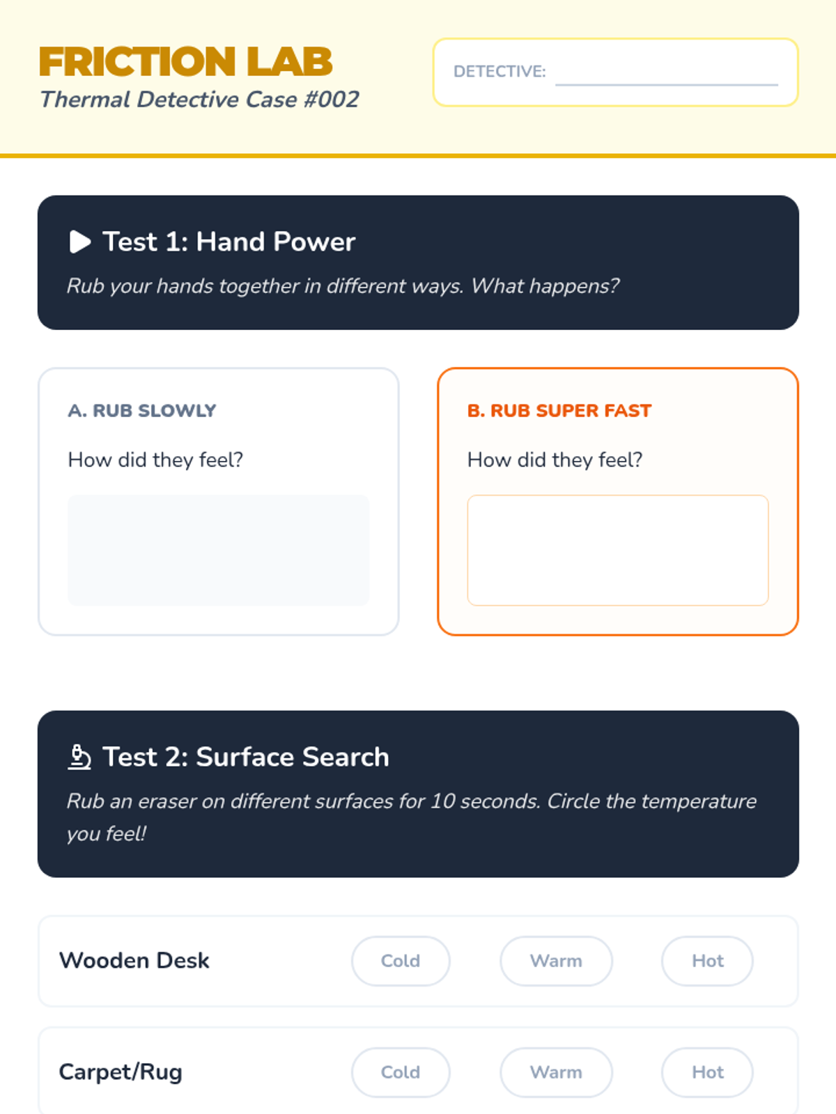 A 2nd-grade physics unit exploring sources of heat, friction, solar energy, and the difference between reversible and irreversible changes through heating. Students act as 'Thermal Detectives' to investigate how heat behaves in their world.