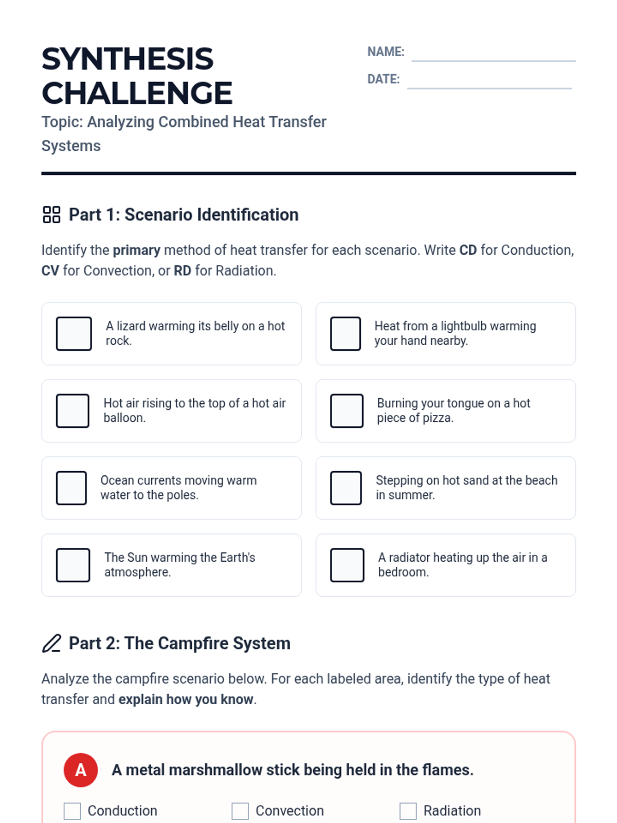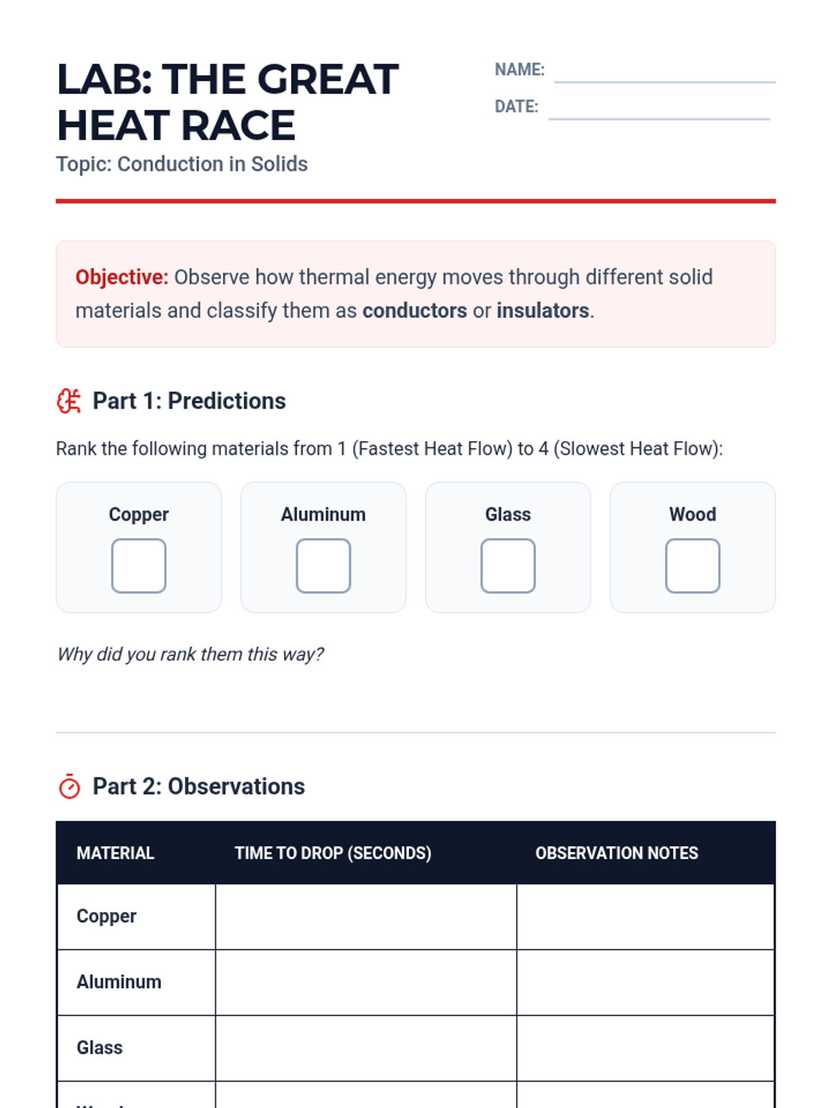 A comprehensive 5-lesson sequence on thermodynamics for 6th grade, focusing on conduction, convection, and radiation. Students explore the direction of heat flow, material properties, and real-world applications through hands-on inquiry and synthesis activities.