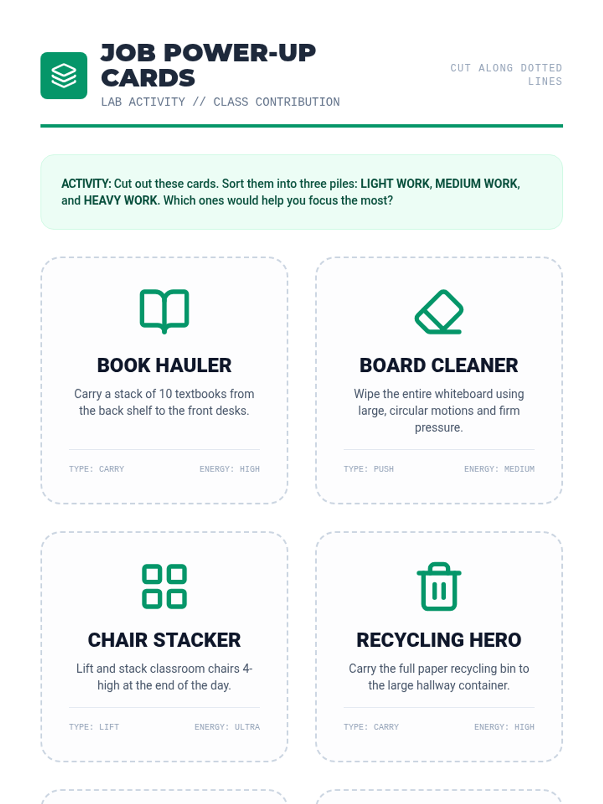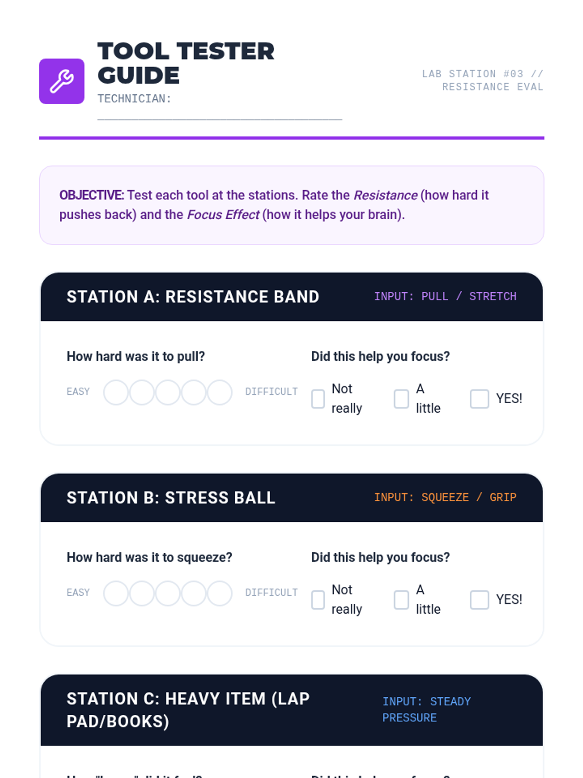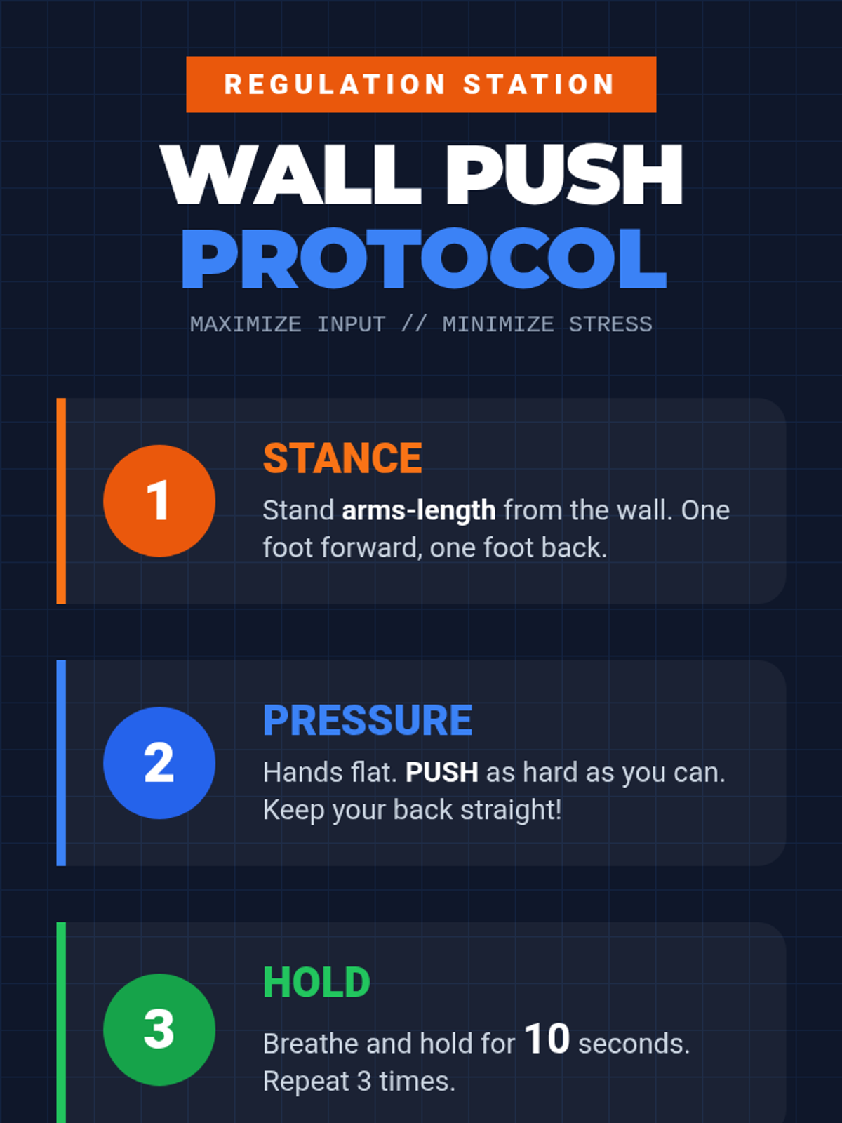 A 5-lesson sequence for 4th-grade students exploring proprioceptive input (heavy work). Students learn the science of muscle-brain connection, practice isometric exercises, use sensory tools, and design their own regulation routines.
