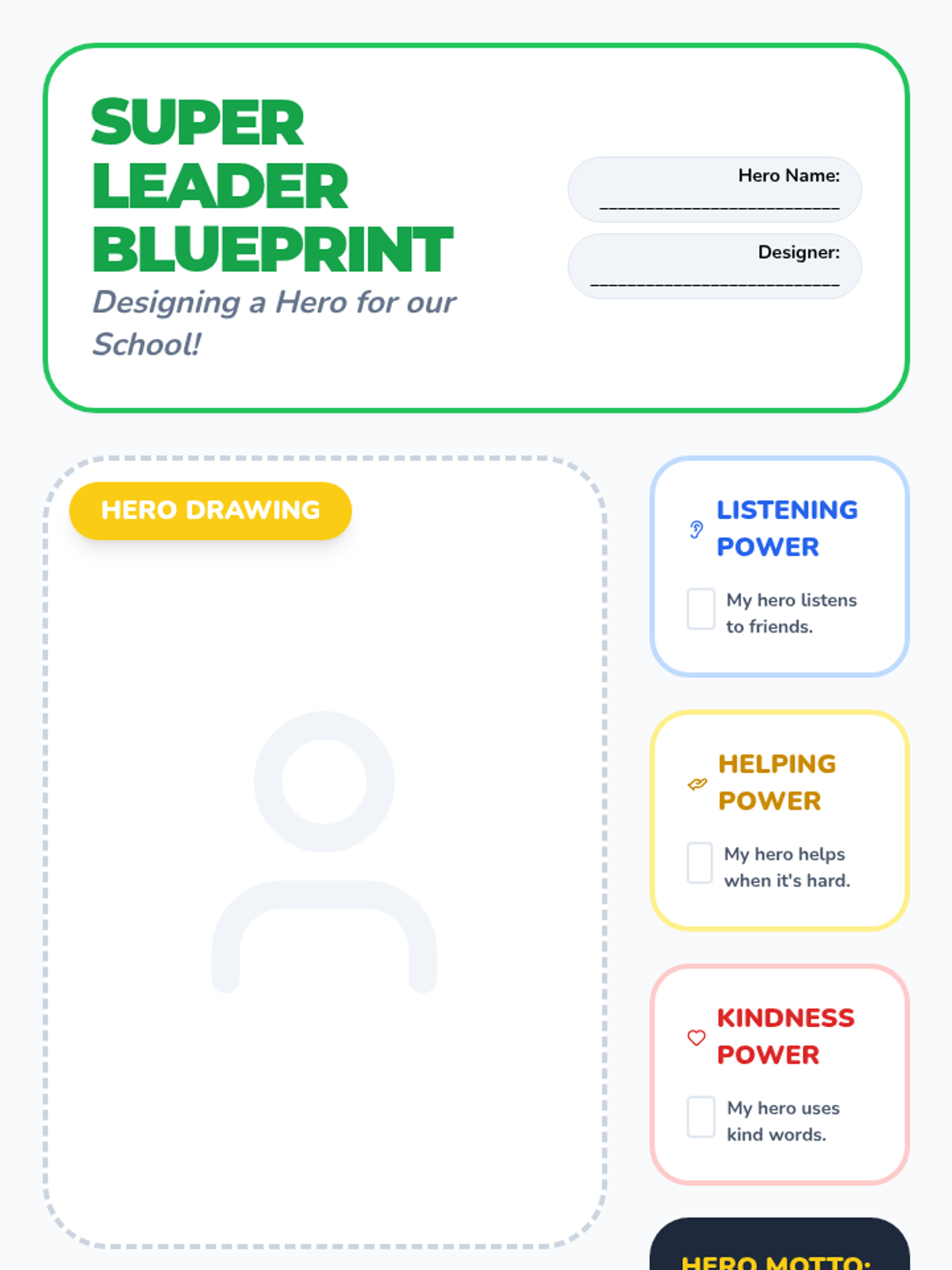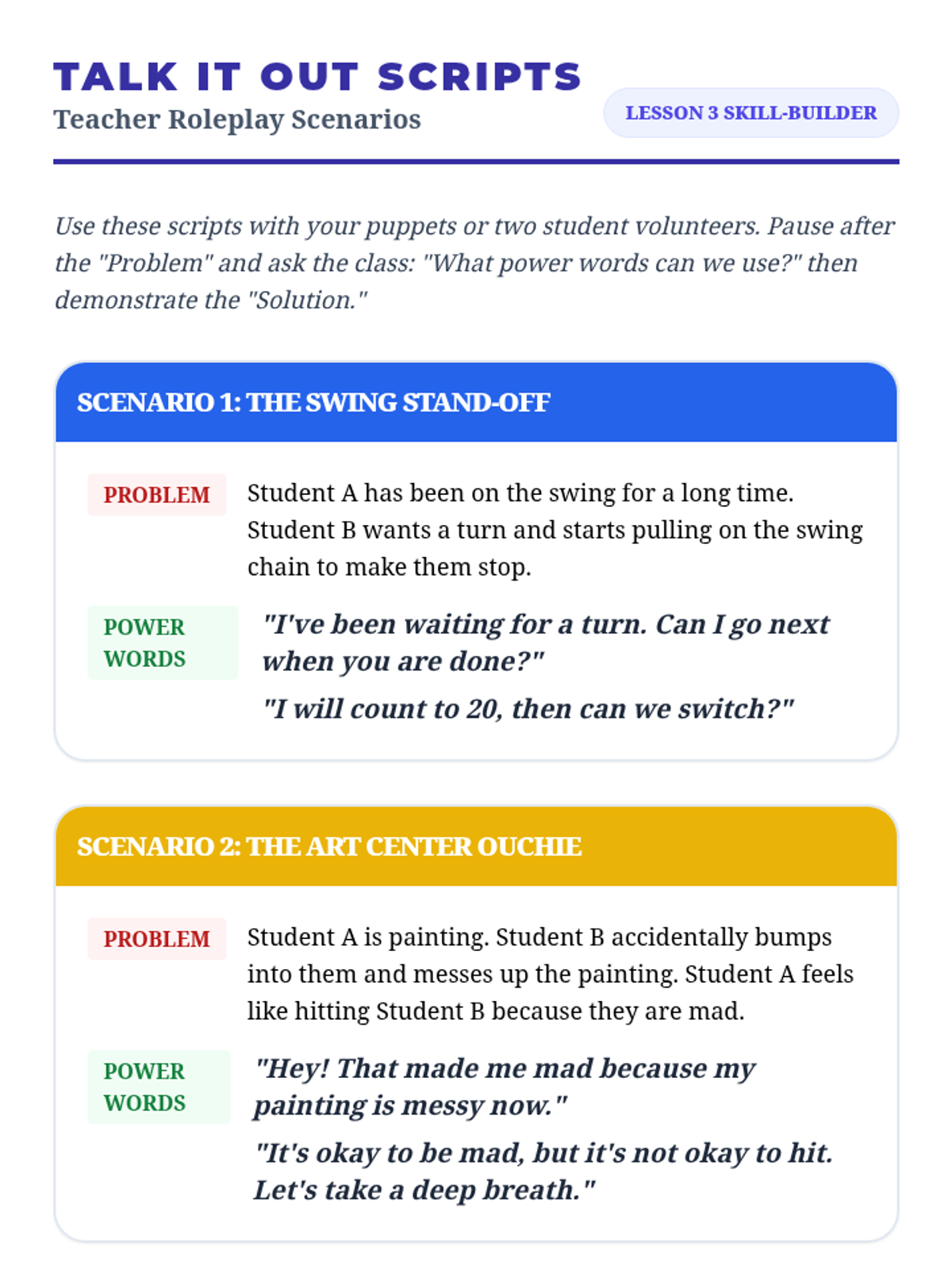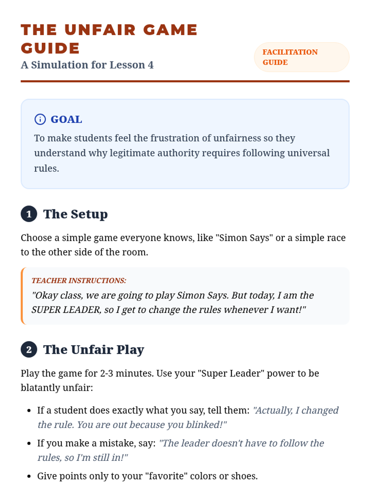 A kindergarten sequence exploring the difference between bossy behavior and responsible leadership. Students learn that true power comes from helping others, using words instead of force, and following fair rules that apply to everyone.
