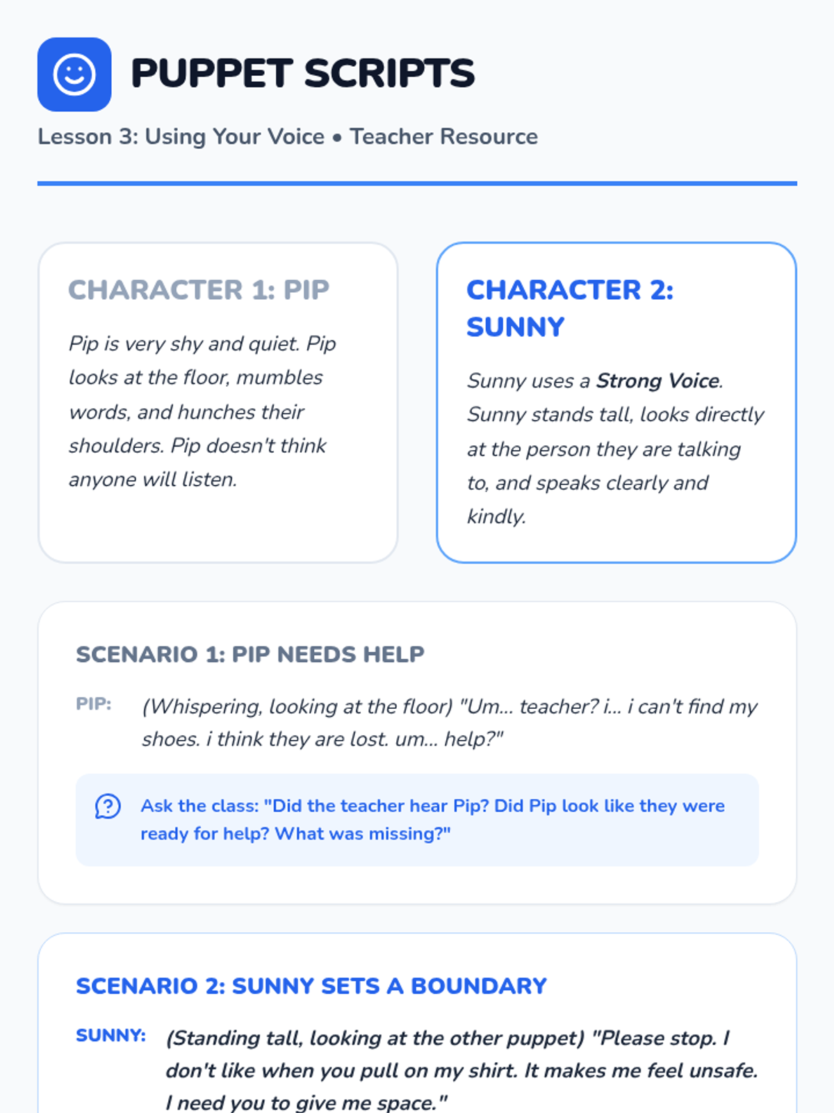 A sequence focused on teaching students about personal boundaries, body safety, and respectful physical interactions in a school environment.