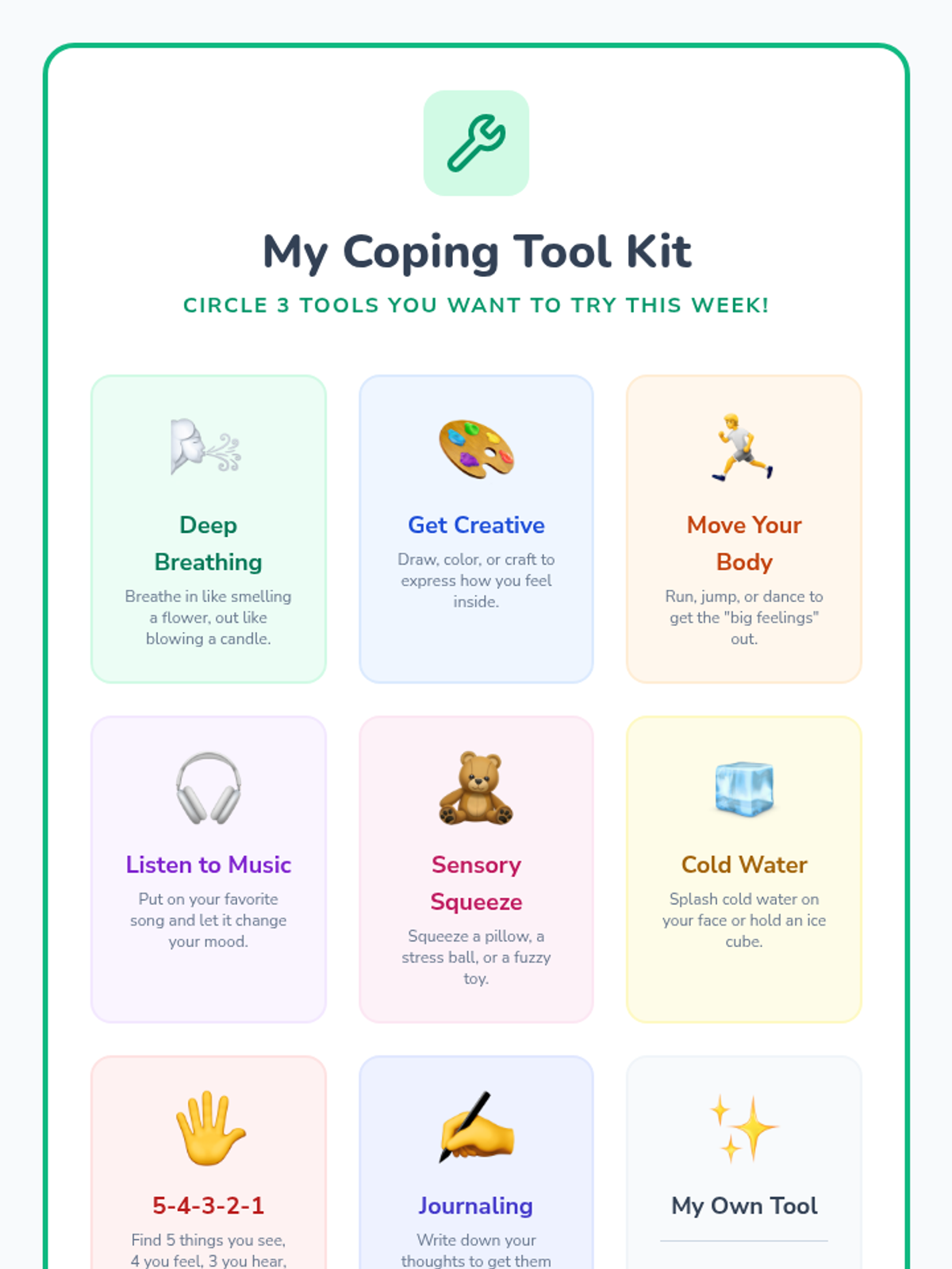 A 6-session counseling group designed to help students identify triggers, understand physical symptoms of anxiety, and build a personalized toolkit of coping strategies through a 'Calm Explorer' theme.