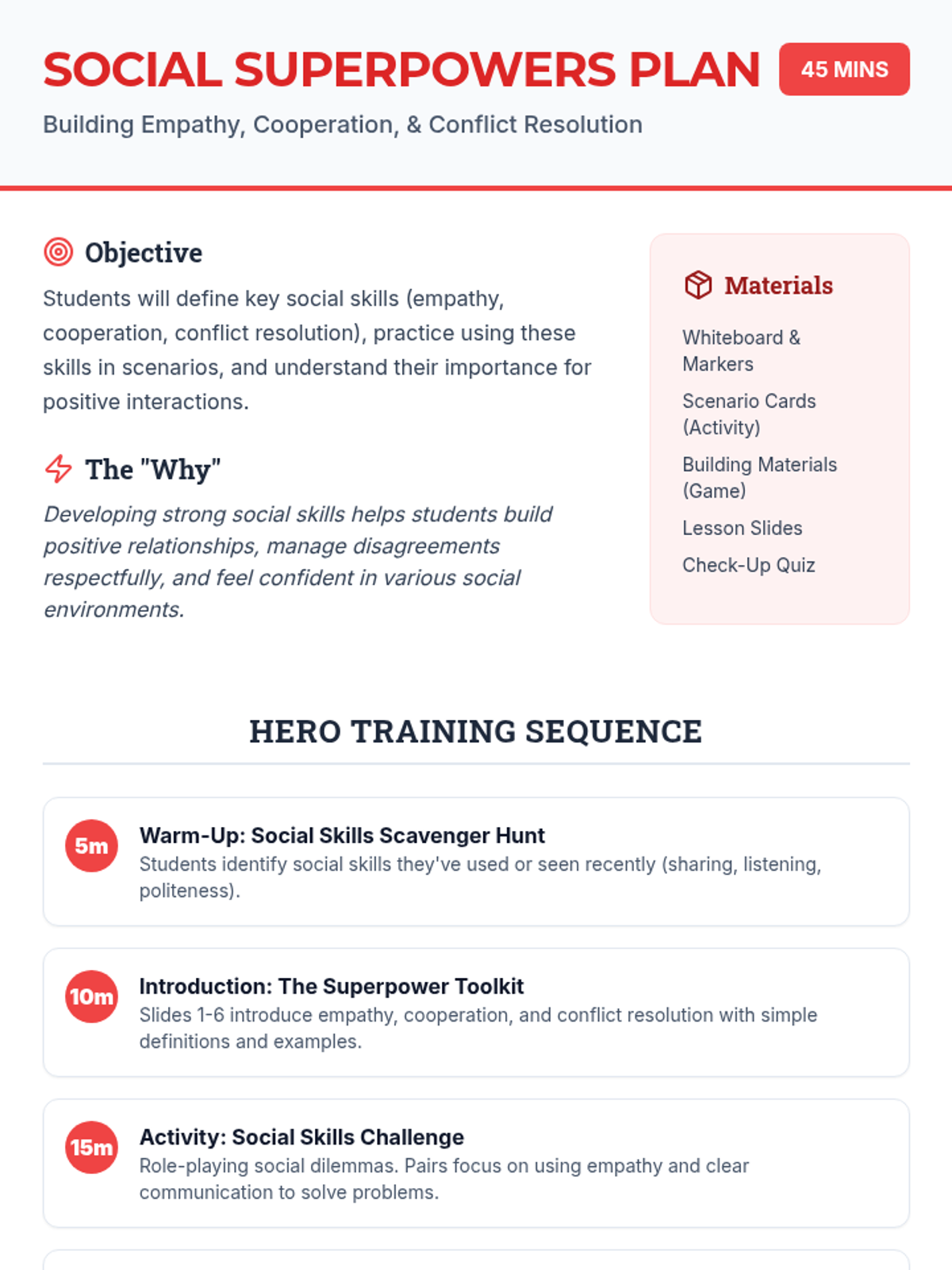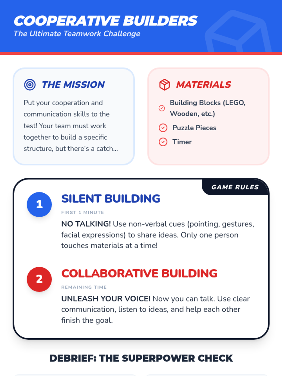 A series of short, high-energy team-building activities designed to help 4th and 5th graders develop essential social-emotional skills through active play and reflection.