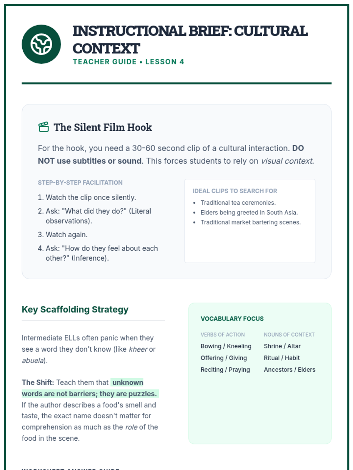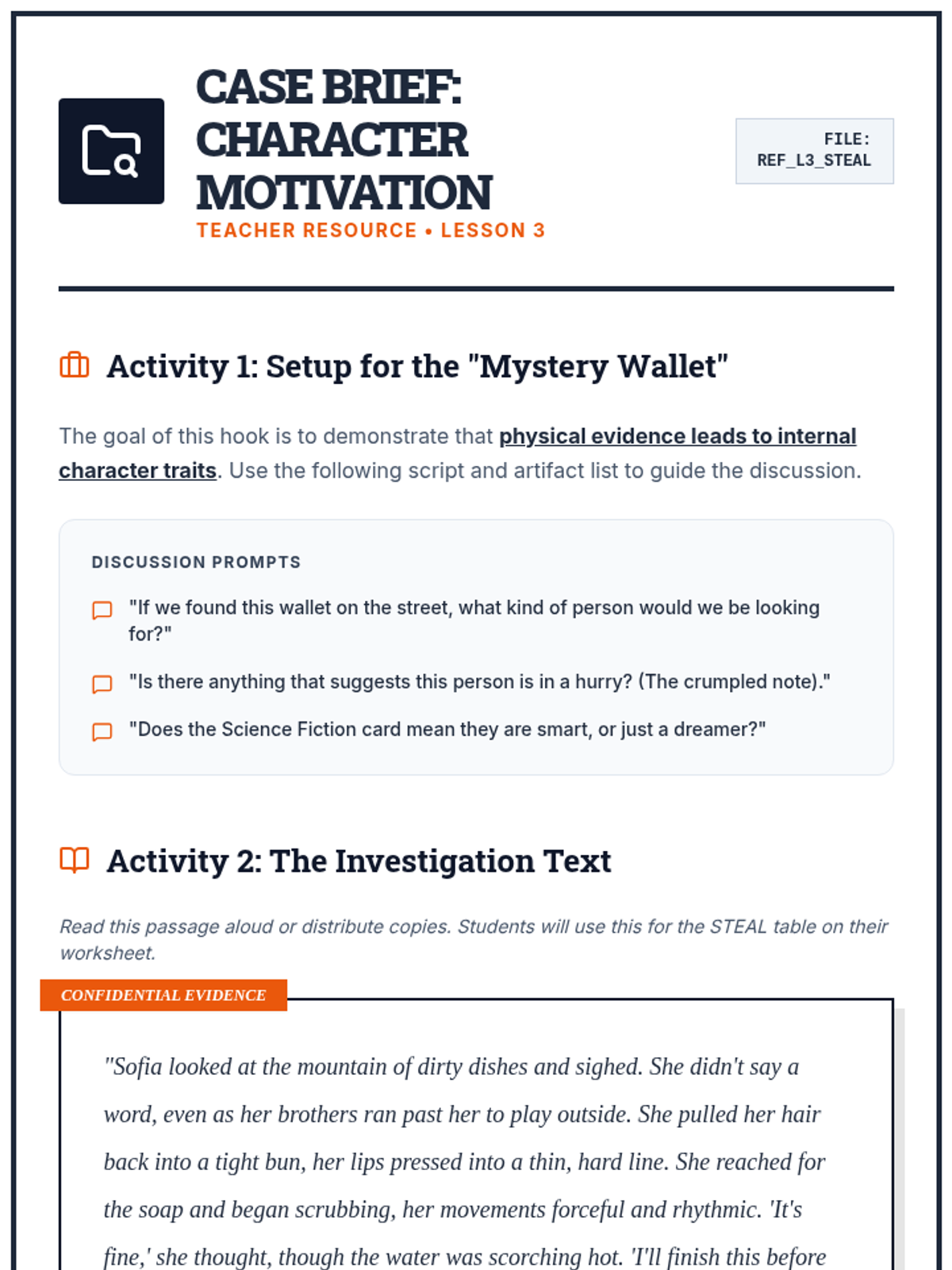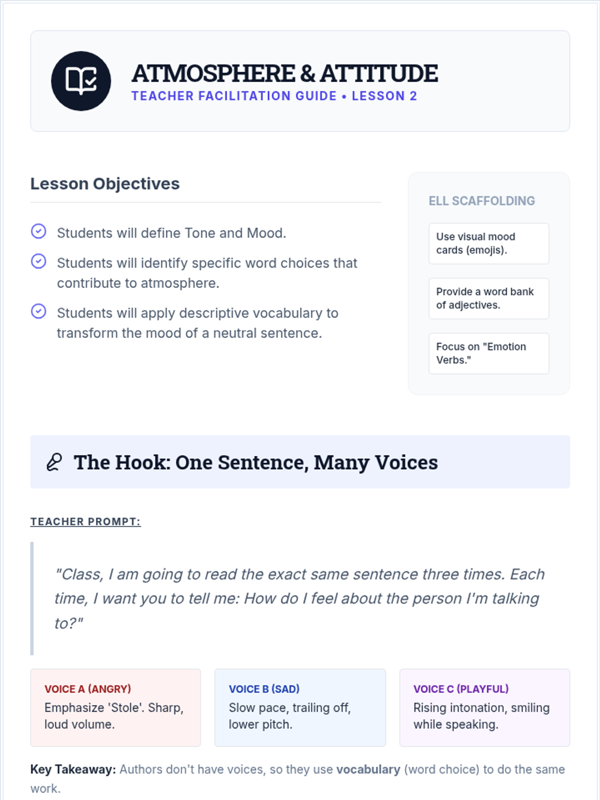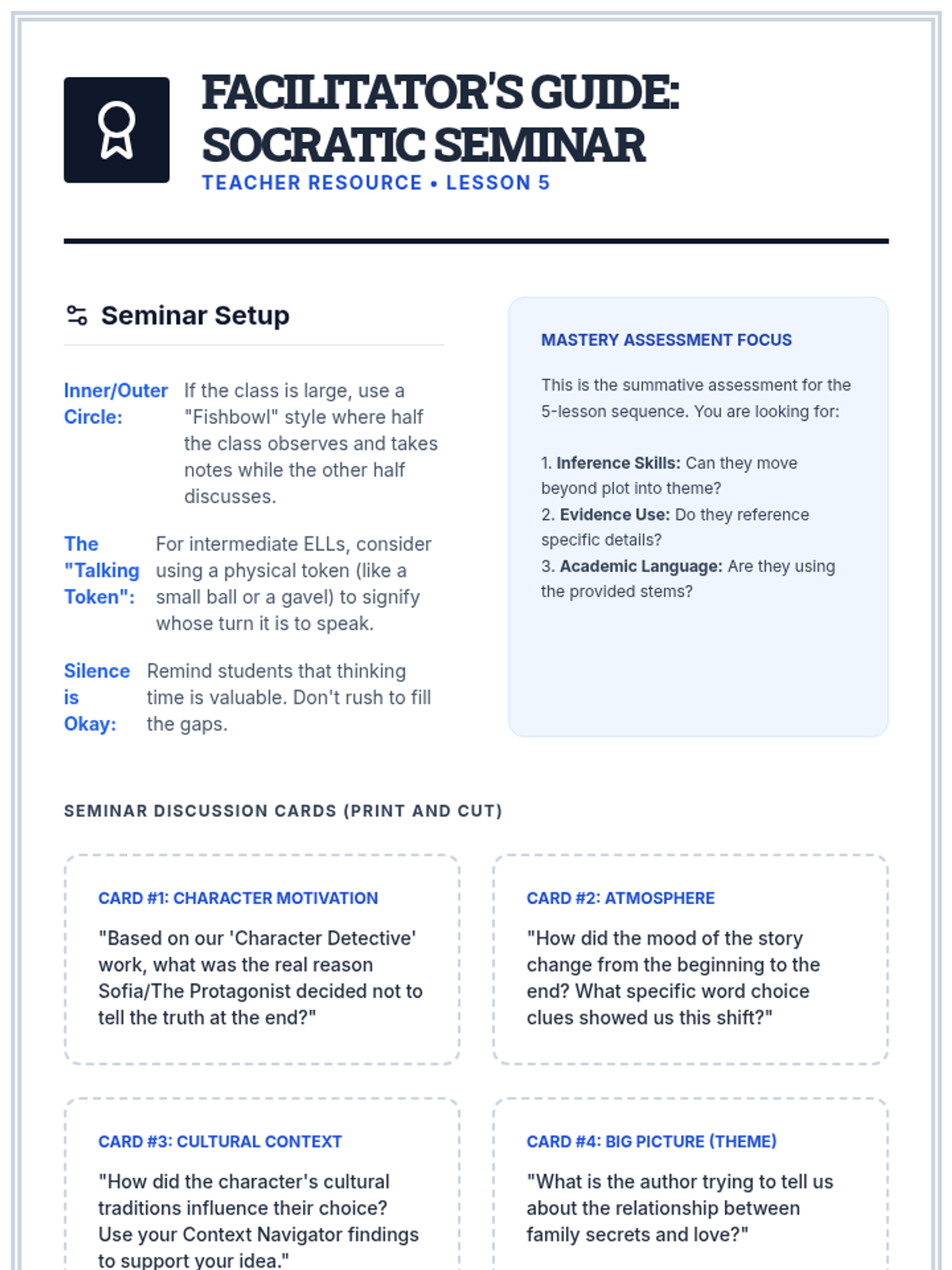 This sequence guides Intermediate ELL students through narrative fiction analysis, focusing on the shift from literal comprehension to deep inference and tone evaluation. Through a 'Literary Sleuth' theme, students develop strategies to decode hidden meanings, analyze character motivations, and engage in academic discussions using textual evidence.
