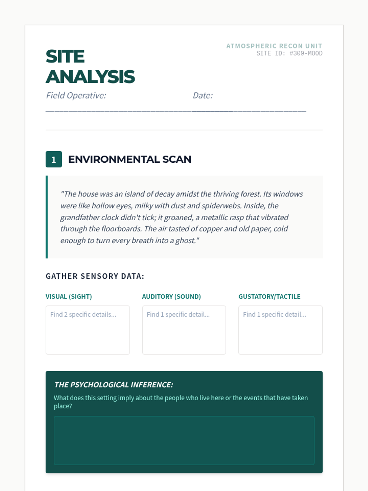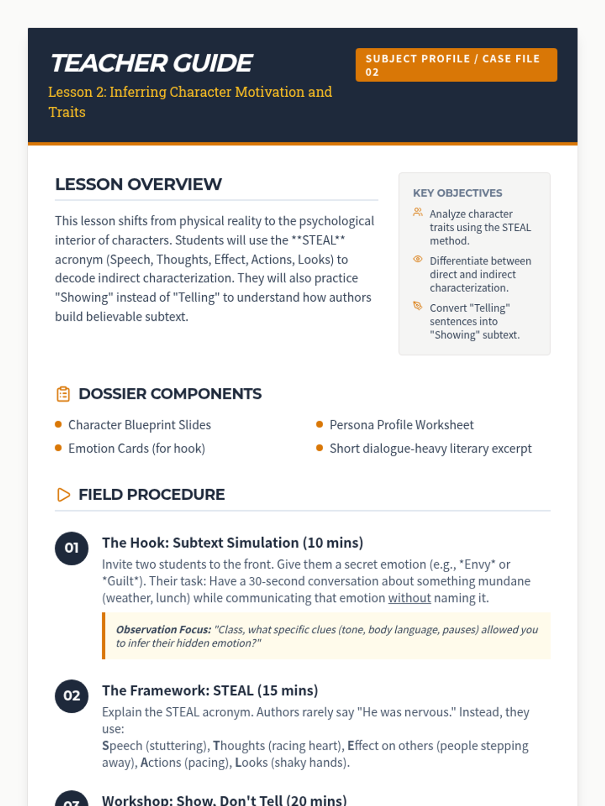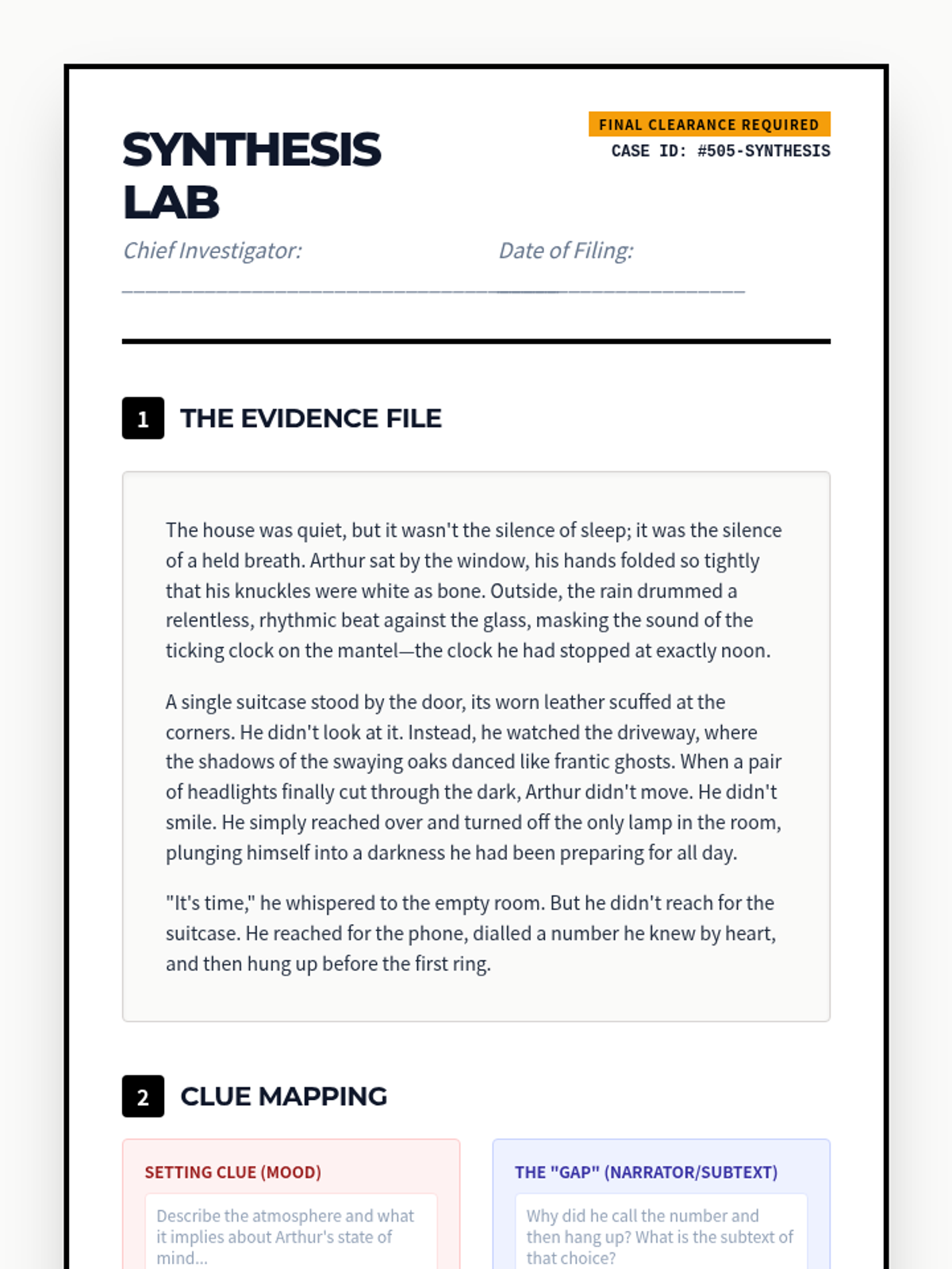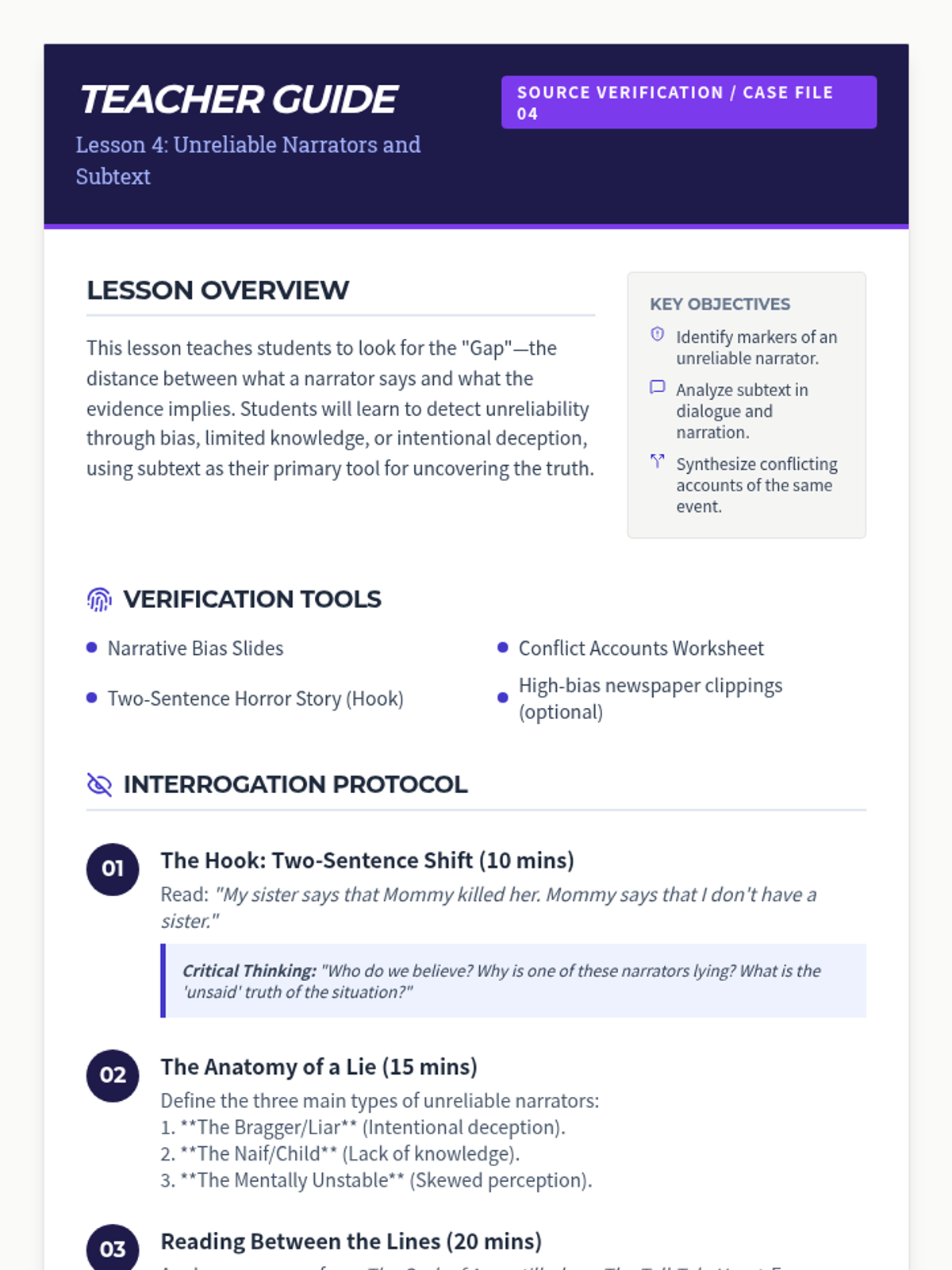 A foundational workshop for 9th-grade students to master the mechanics of inference. Students move from simple visual analysis to complex literary interpretation, using the formula 'Text Clues + Background Knowledge = Inference' to decode character motivations, setting atmosphere, and unreliable narrators.