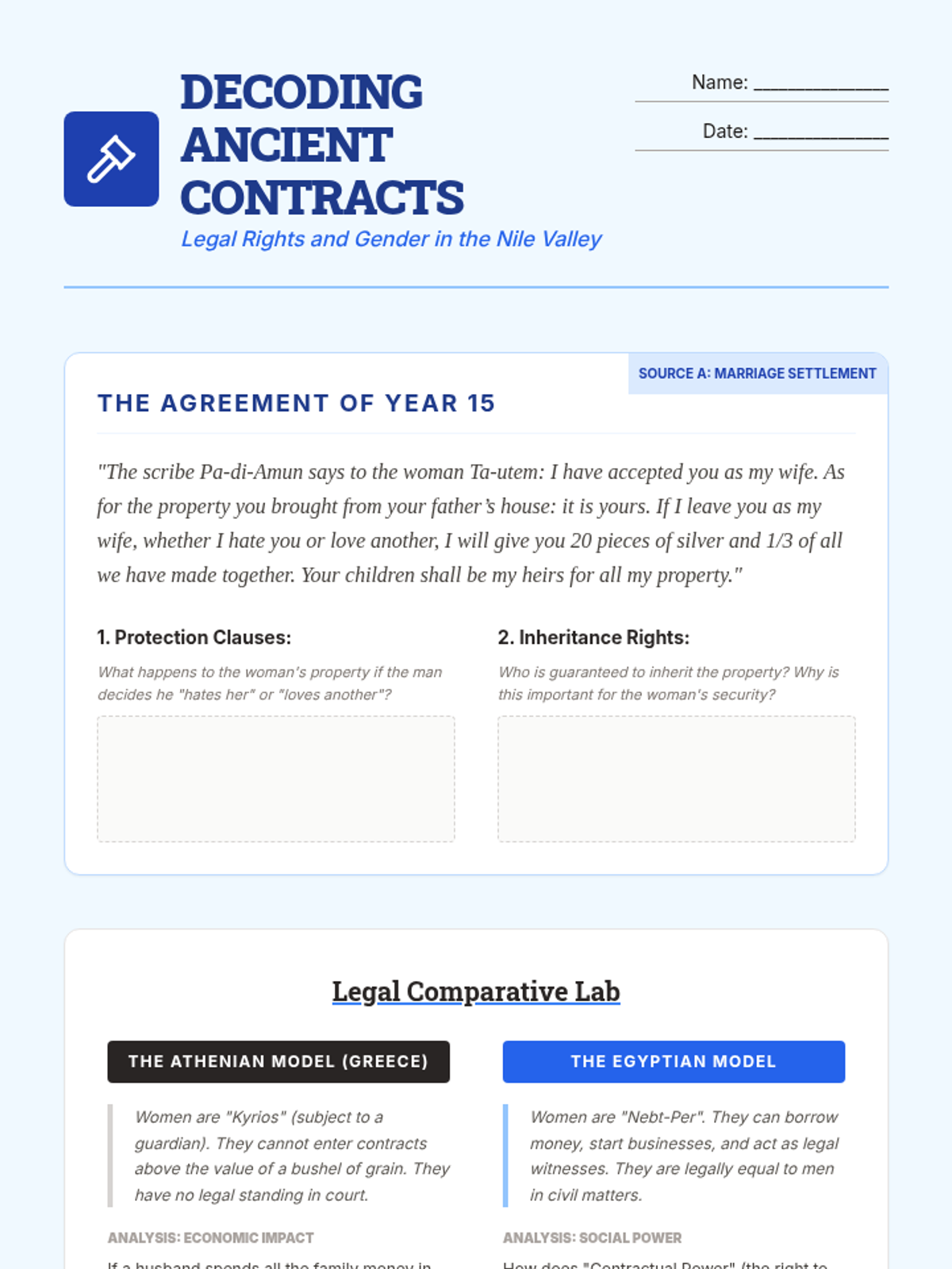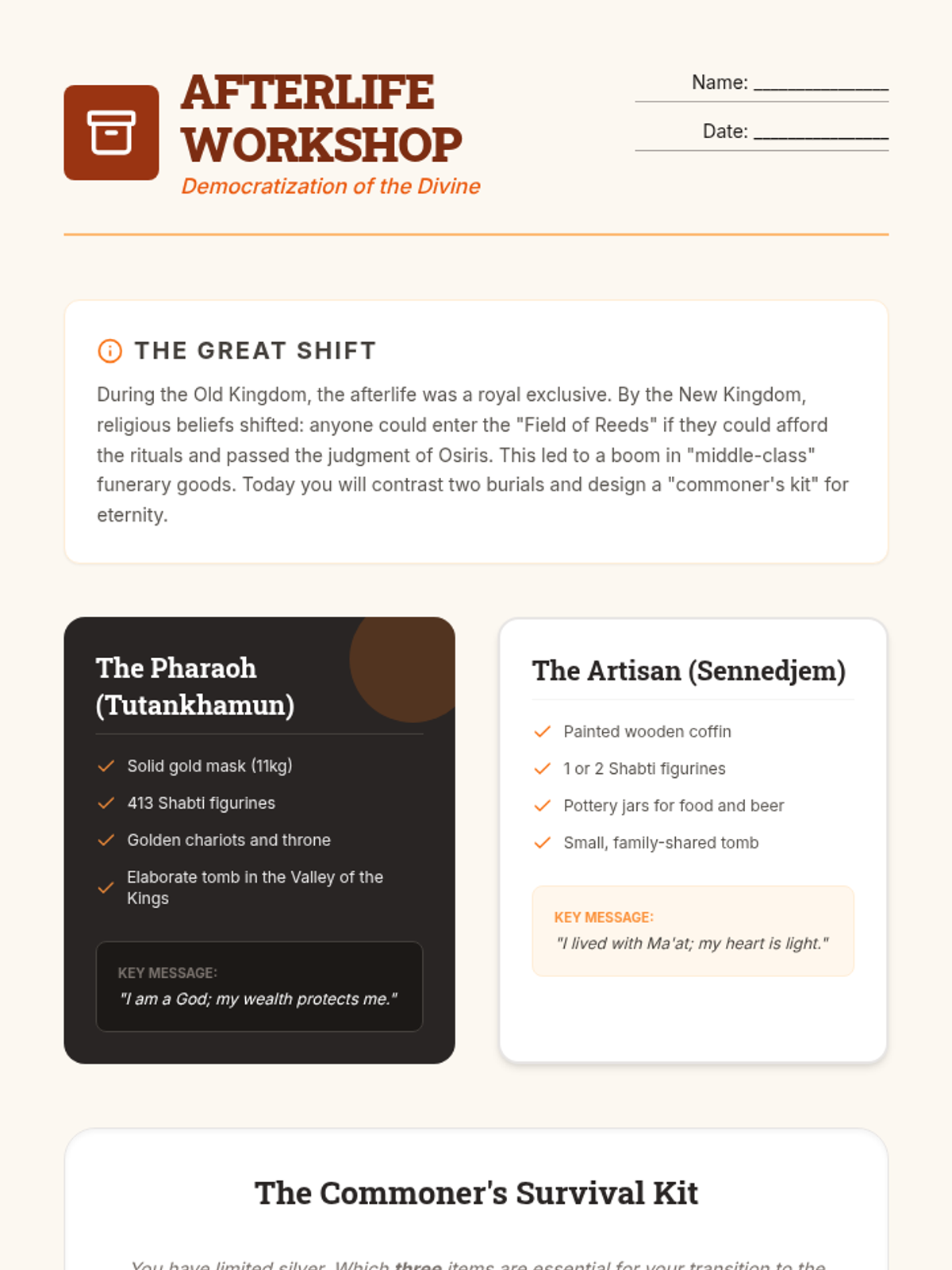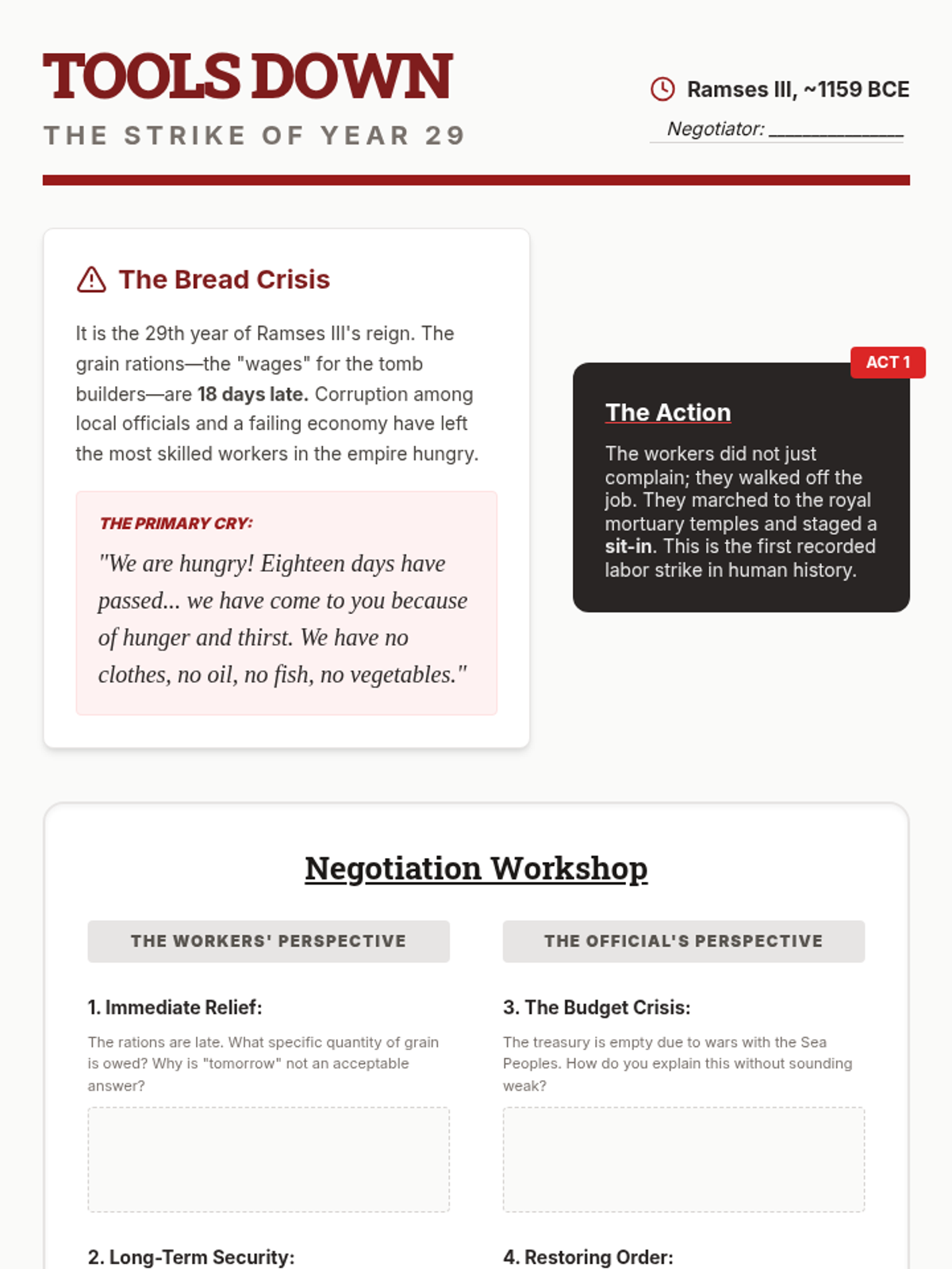 A social history sequence for 10th grade students that examines Ancient Egypt and Kush through the lens of labor systems, social stratification, and the daily lives of non-elites, centered on evidence from Deir el-Medina.