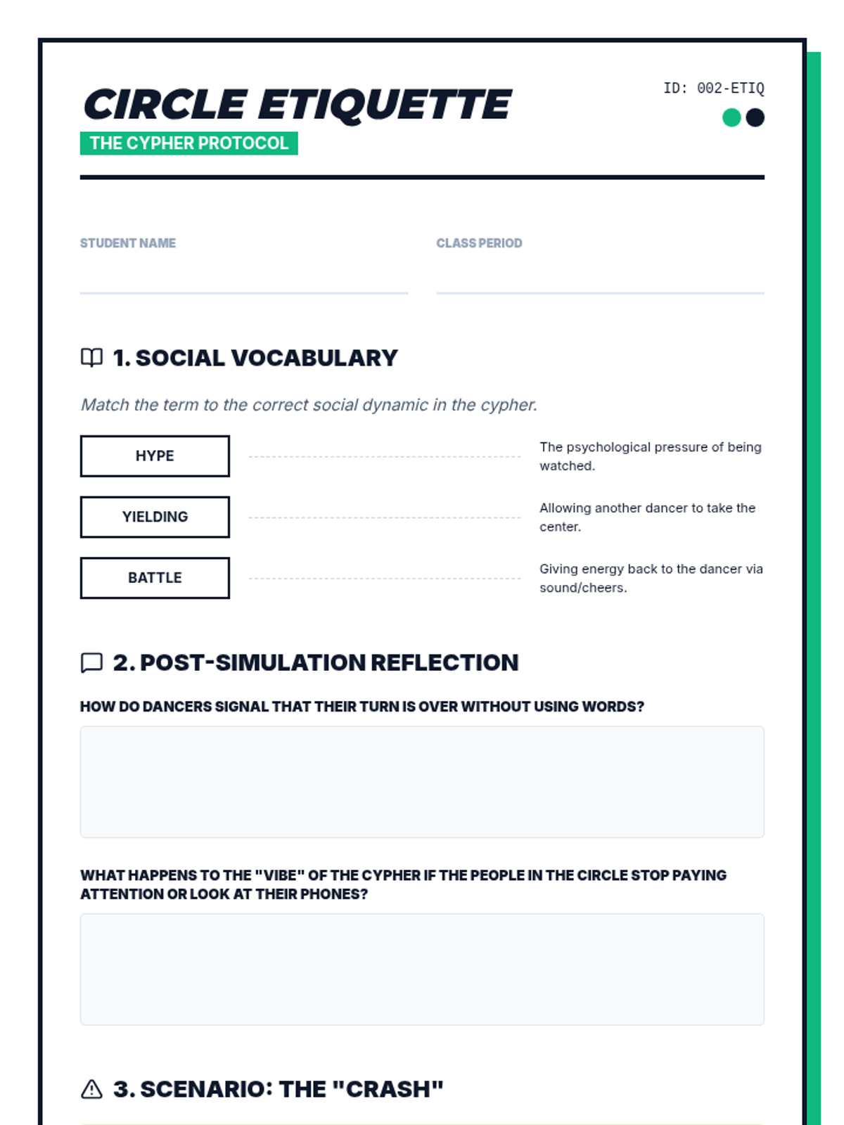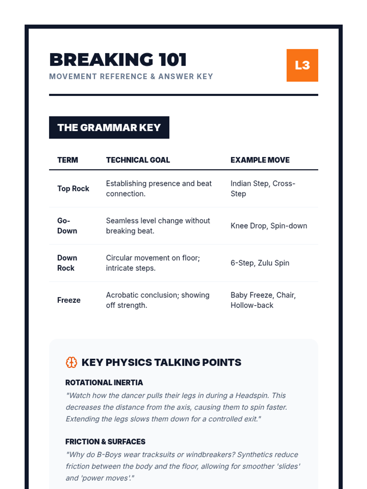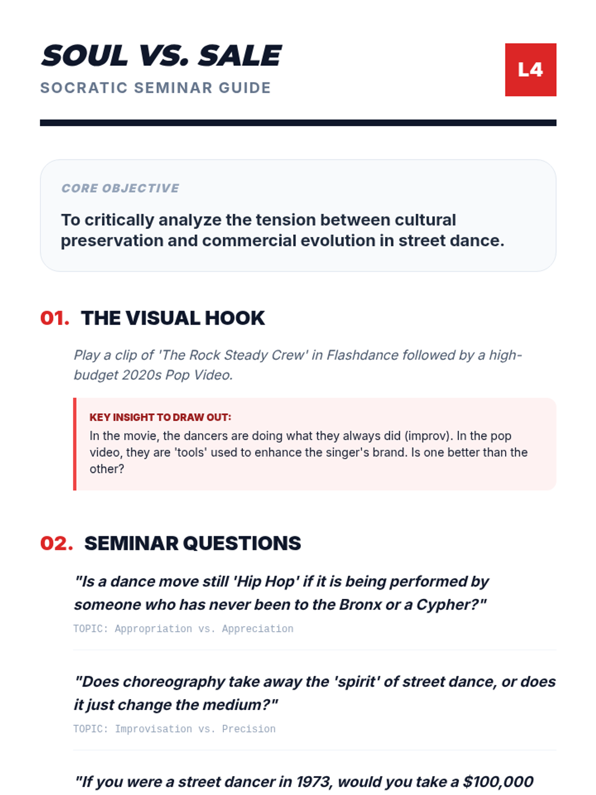 A high-energy exploration of Hip Hop culture's origins in the South Bronx and its evolution into a global phenomenon. Students analyze the socio-economic roots, the social dynamics of the cypher, the physical 'grammar' of breaking, the impact of commercialization, and the cross-cultural fusion seen in modern K-Pop.