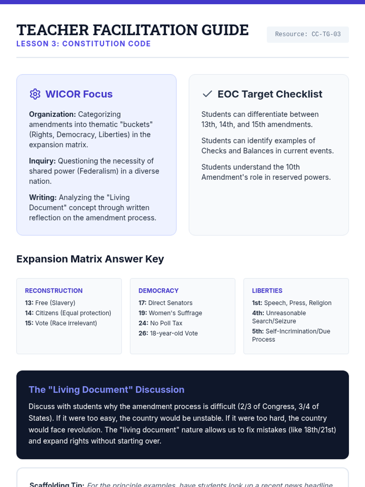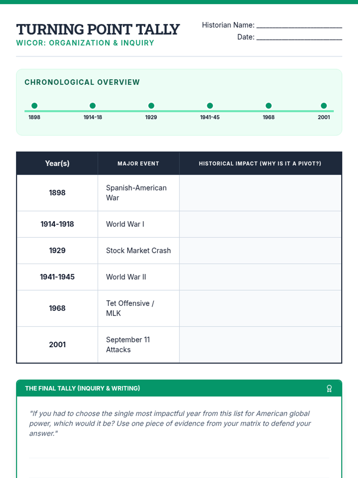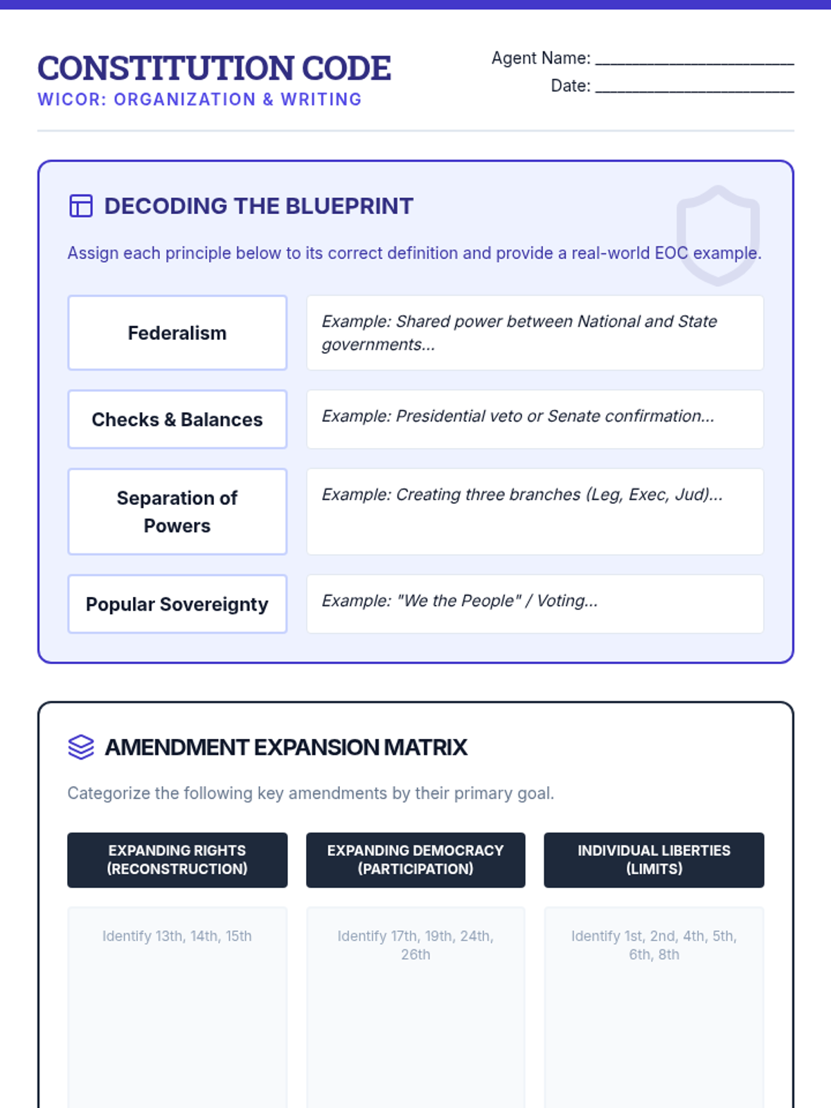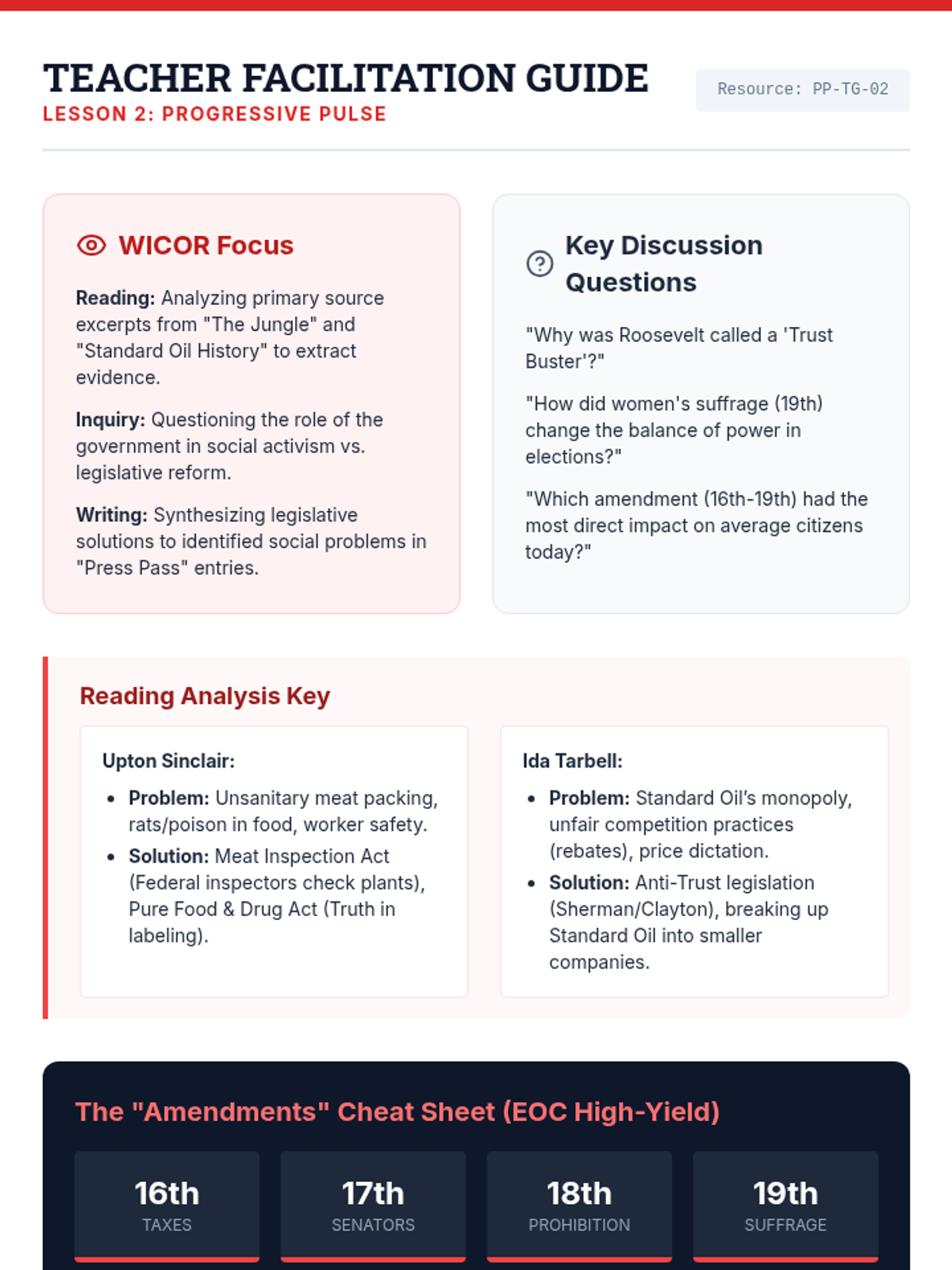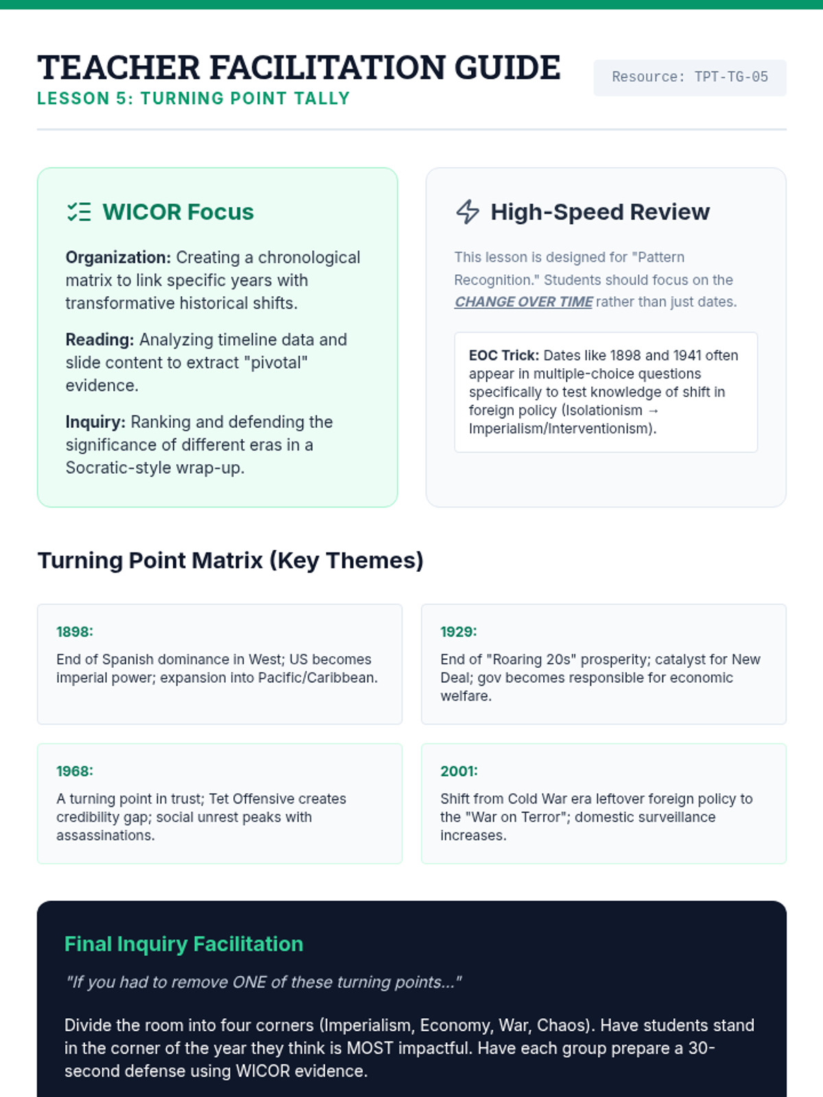 A comprehensive US History EOC review sequence designed for AVID classrooms, utilizing WICOR strategies to master key eras from the Gilded Age through modern turning points.