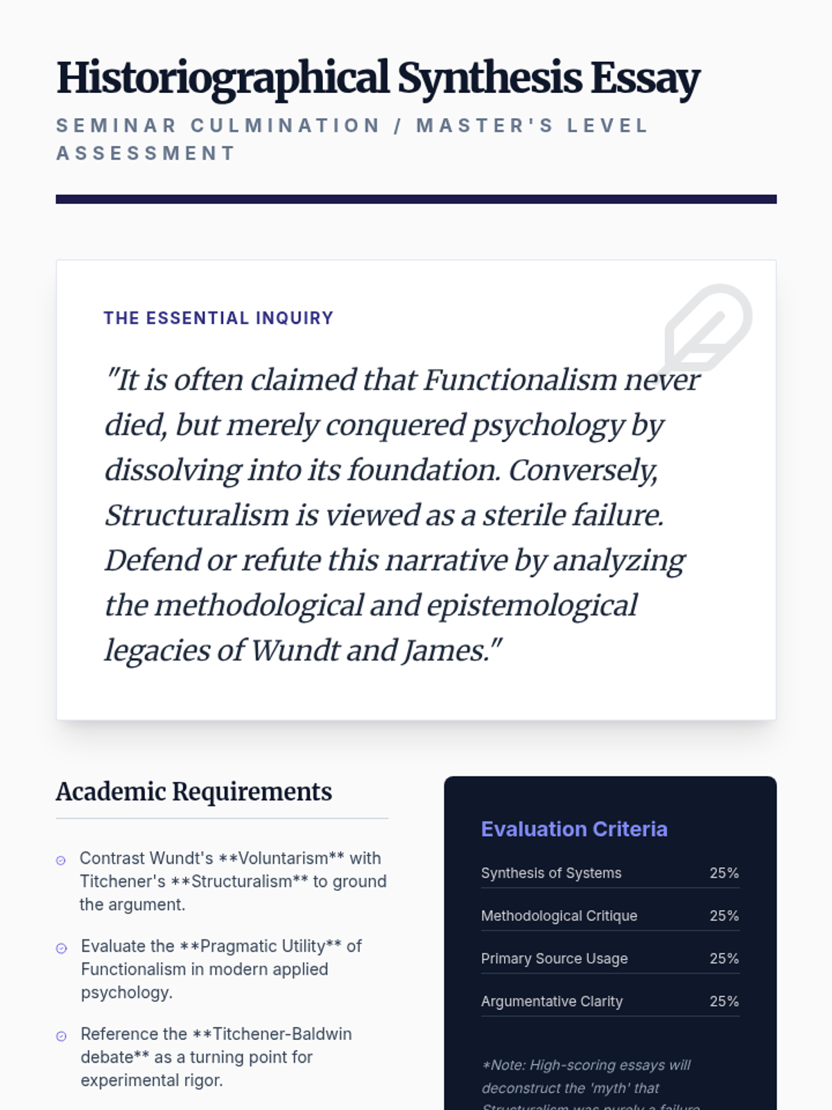 An advanced graduate seminar sequence exploring the transition of psychology from philosophy to an experimental science, focusing on the epistemological tensions between Structuralism and Functionalism.