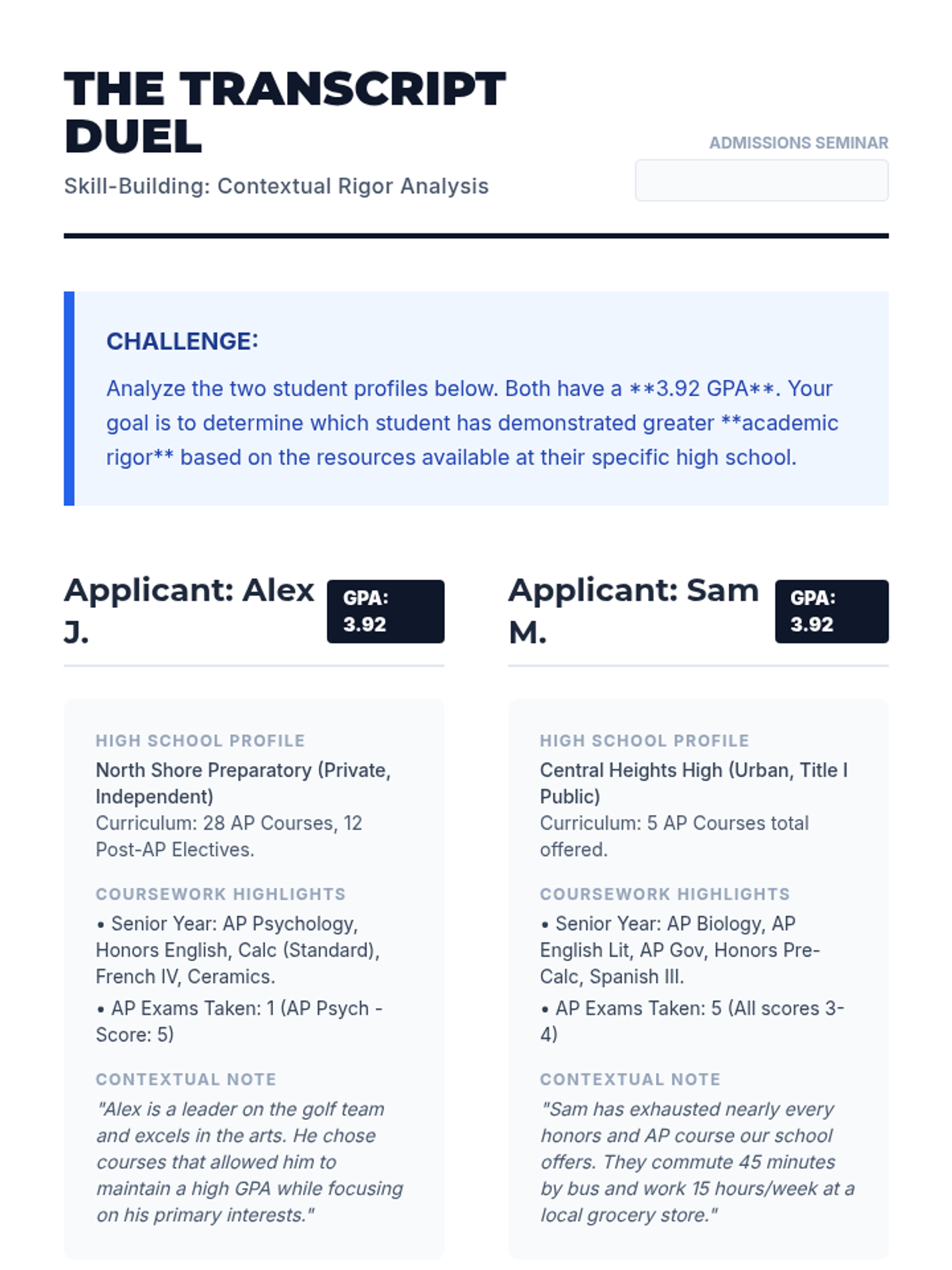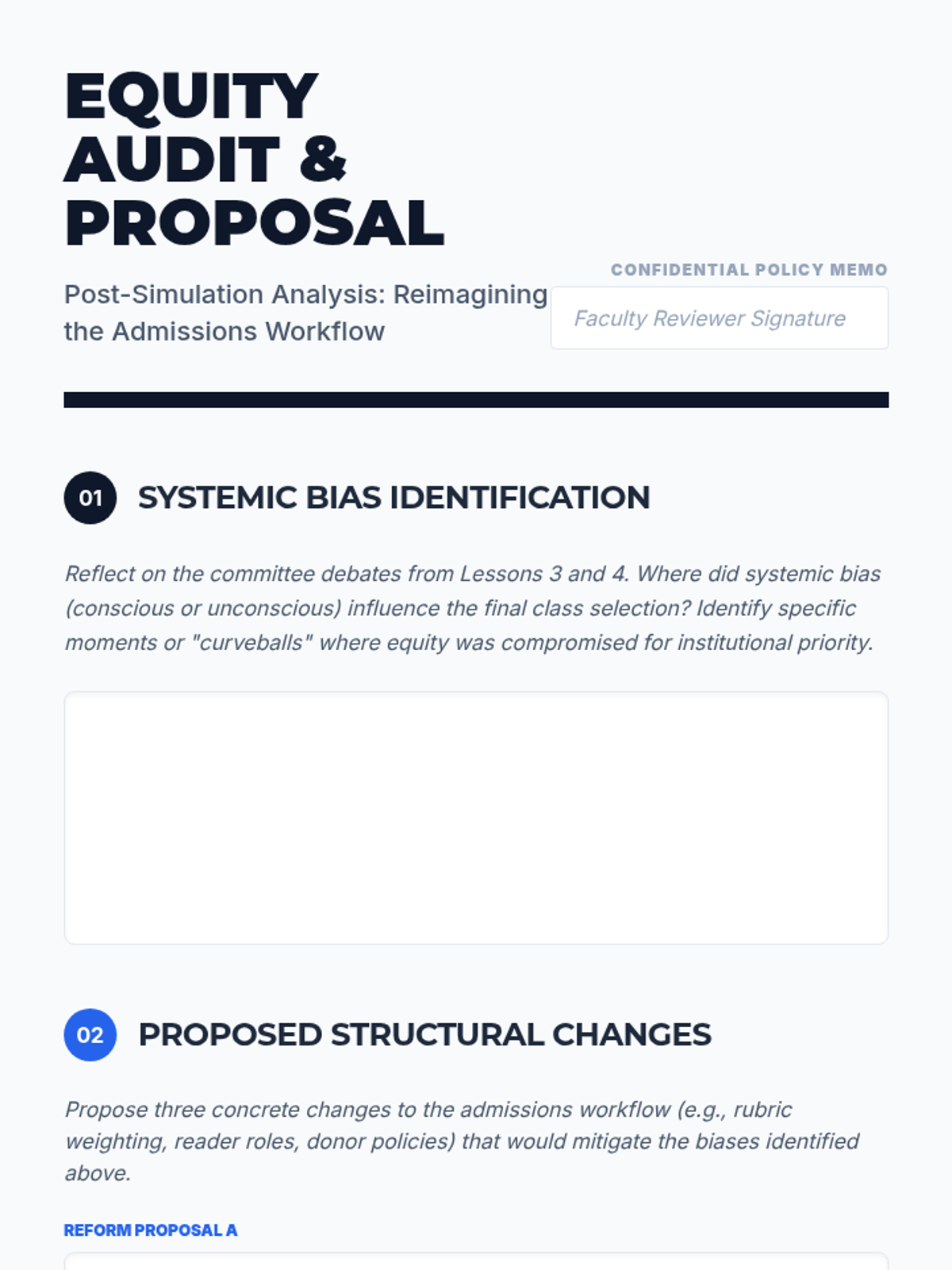 A graduate-level exploration of the admissions 'black box,' where students act as admissions officers to navigate the complexities of holistic review, institutional priorities, and systemic bias in post-secondary gatekeeping.