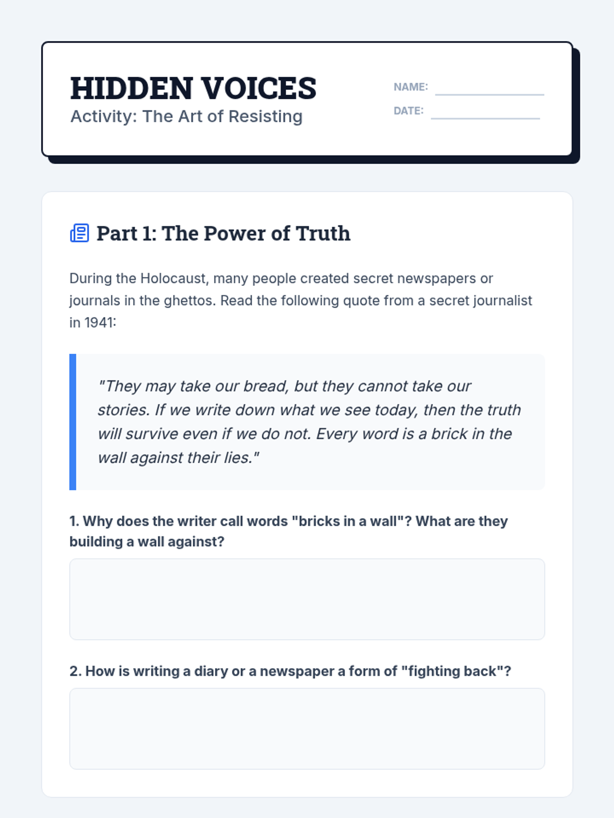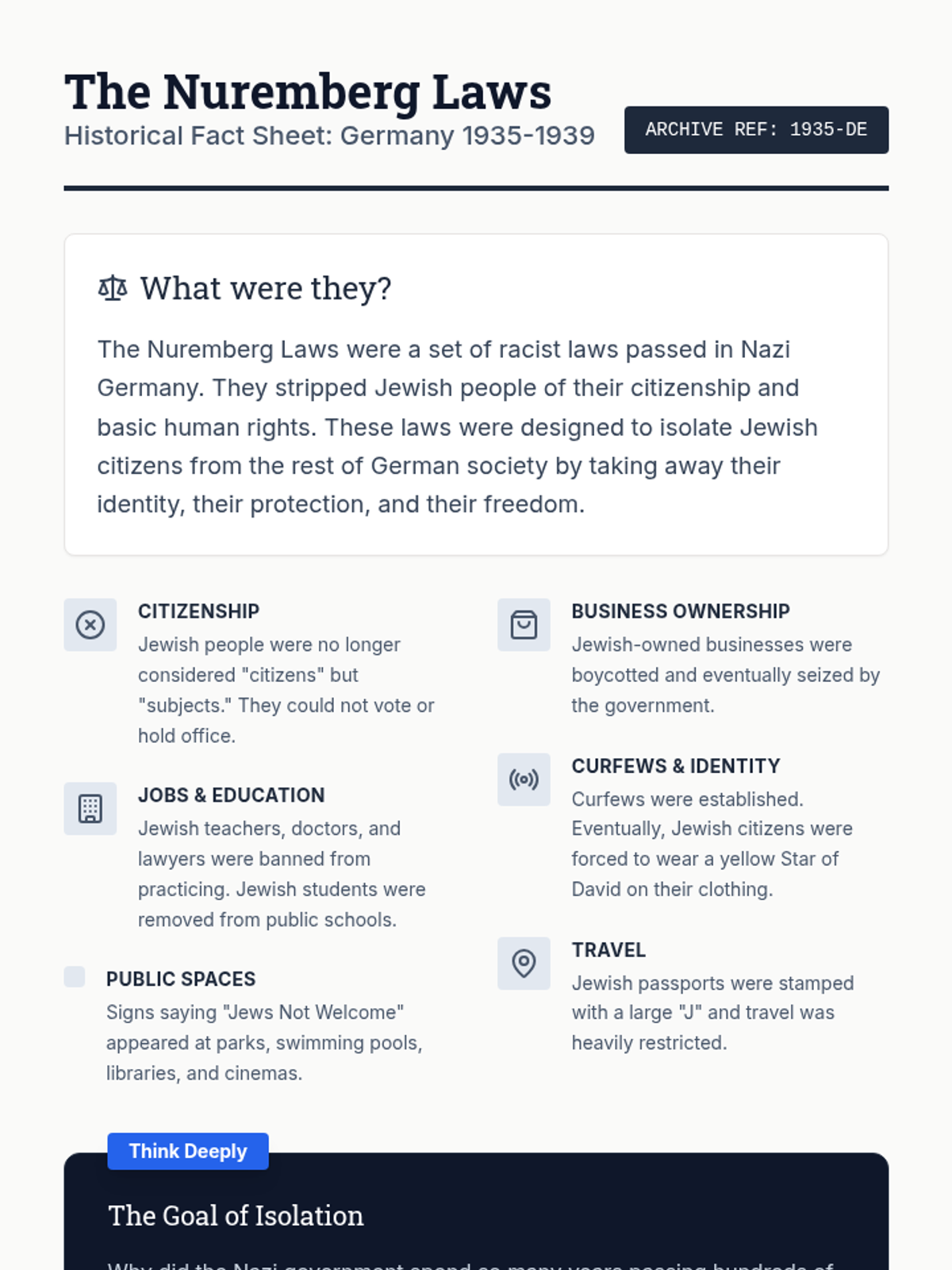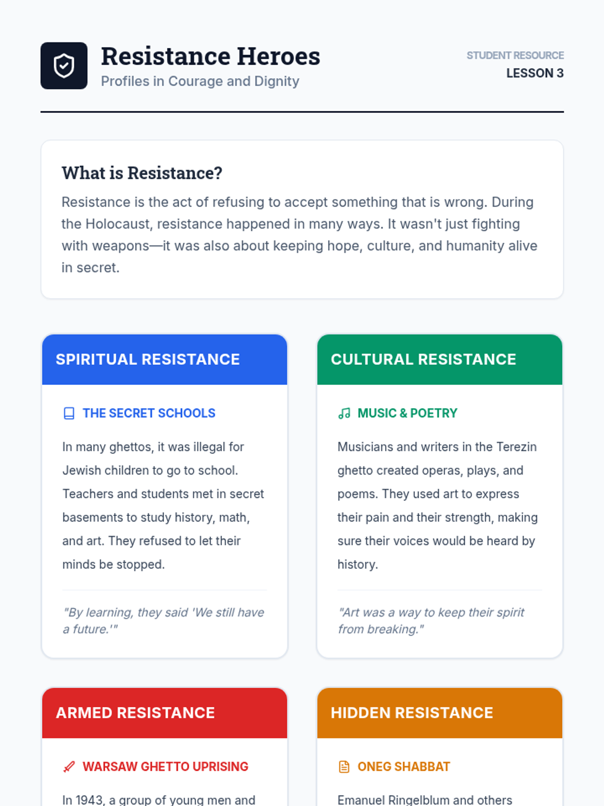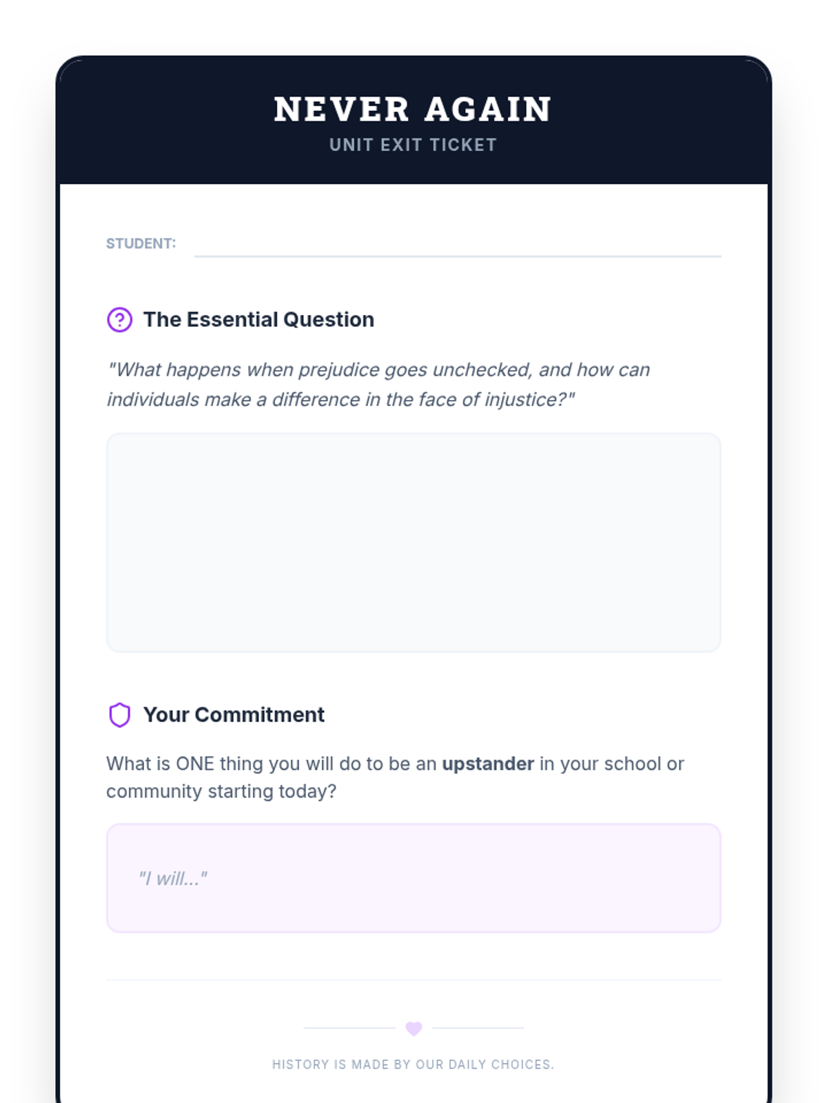 A sensitive and age-appropriate exploration of the Holocaust for 5th graders, focusing on human rights, the escalation of prejudice, stories of resistance, and the moral courage of upstanders. The sequence emphasizes empathy and individual agency in the face of injustice.