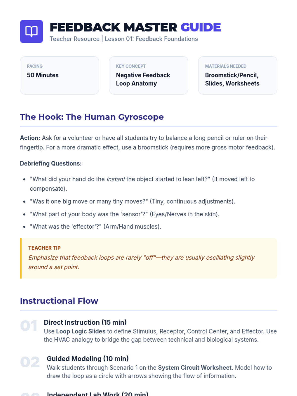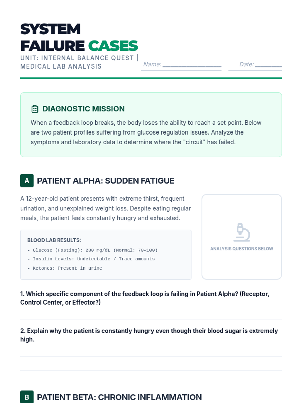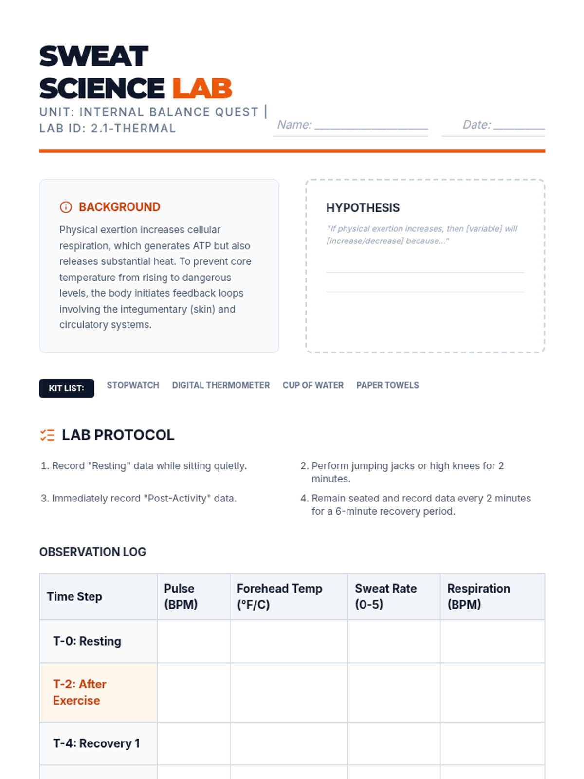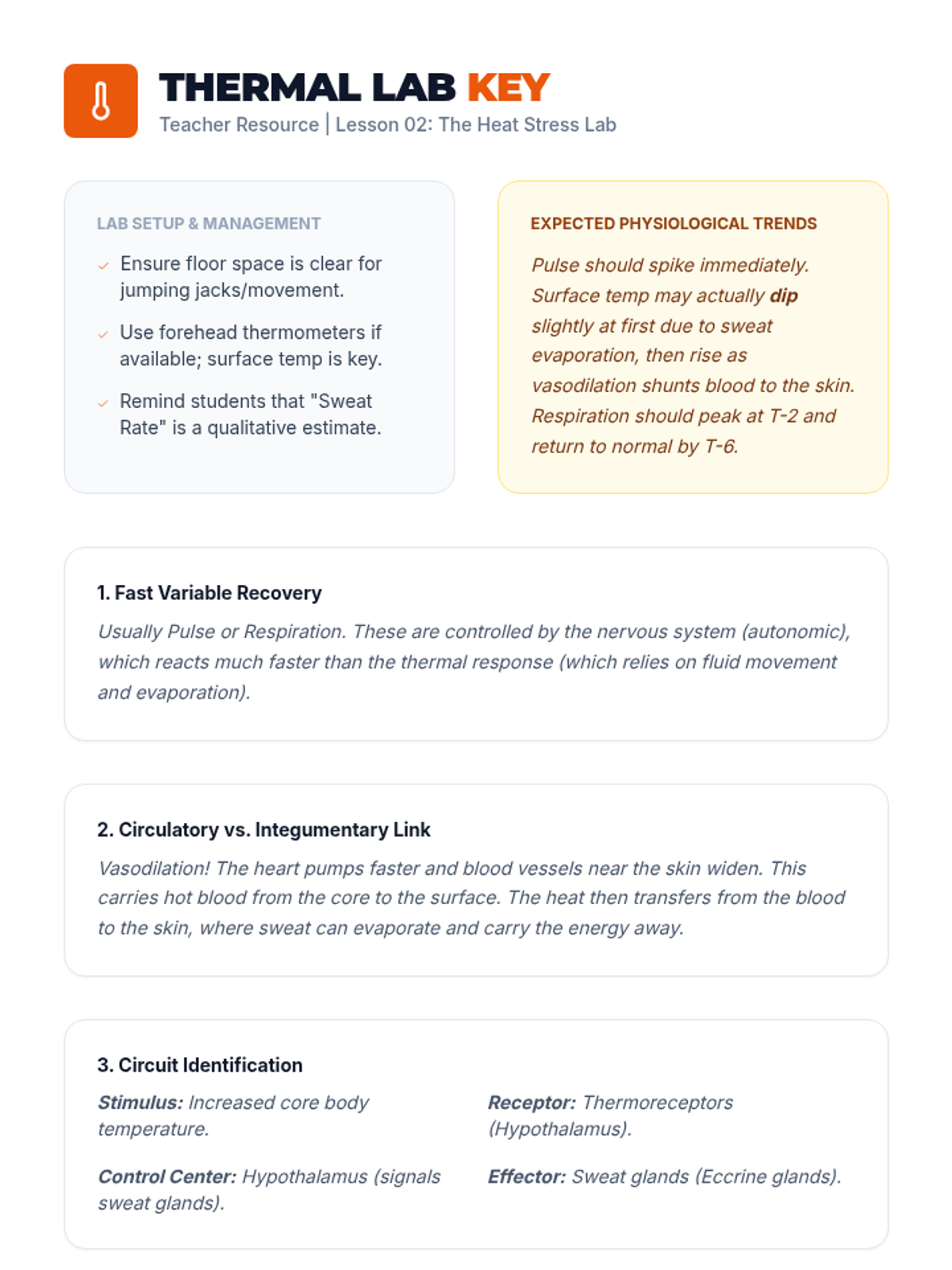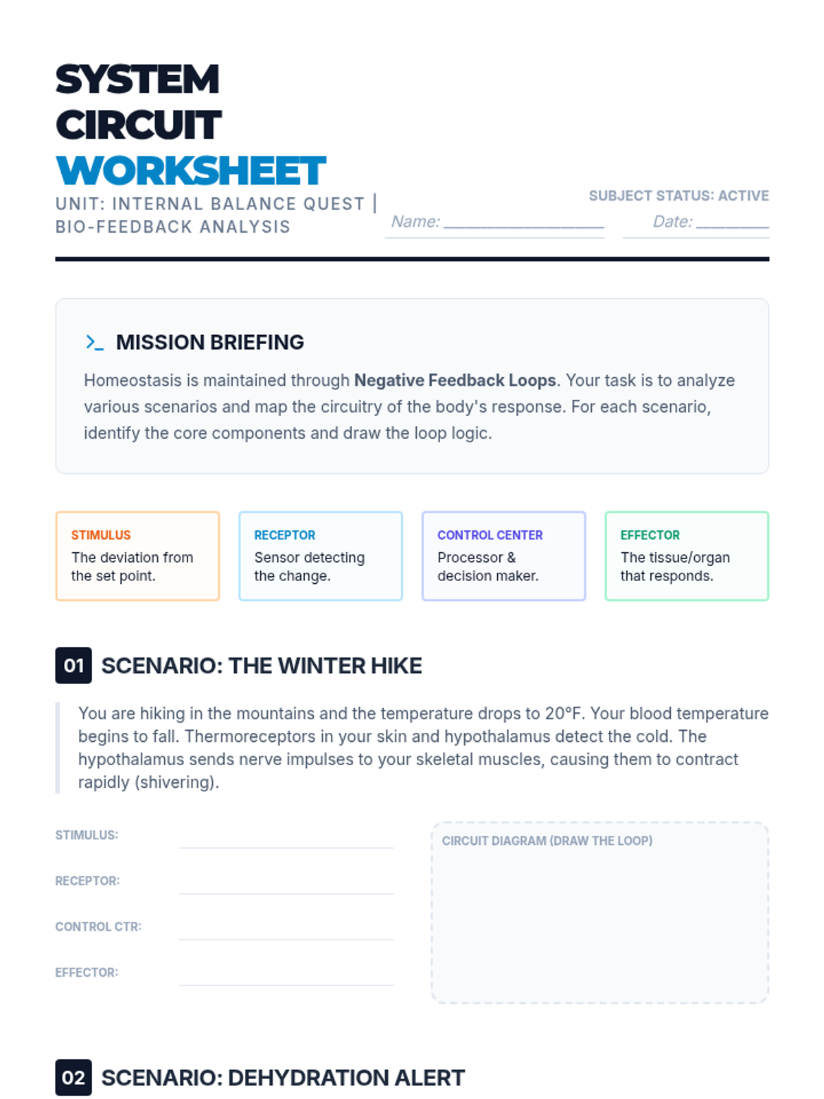 A 10th-grade biology sequence exploring how the human body maintains internal stability through negative feedback loops. Students investigate thermoregulation, glucose control, and gas exchange, culminating in a survival analysis project.