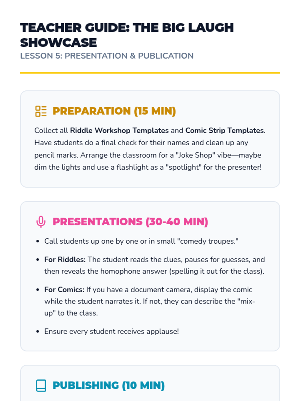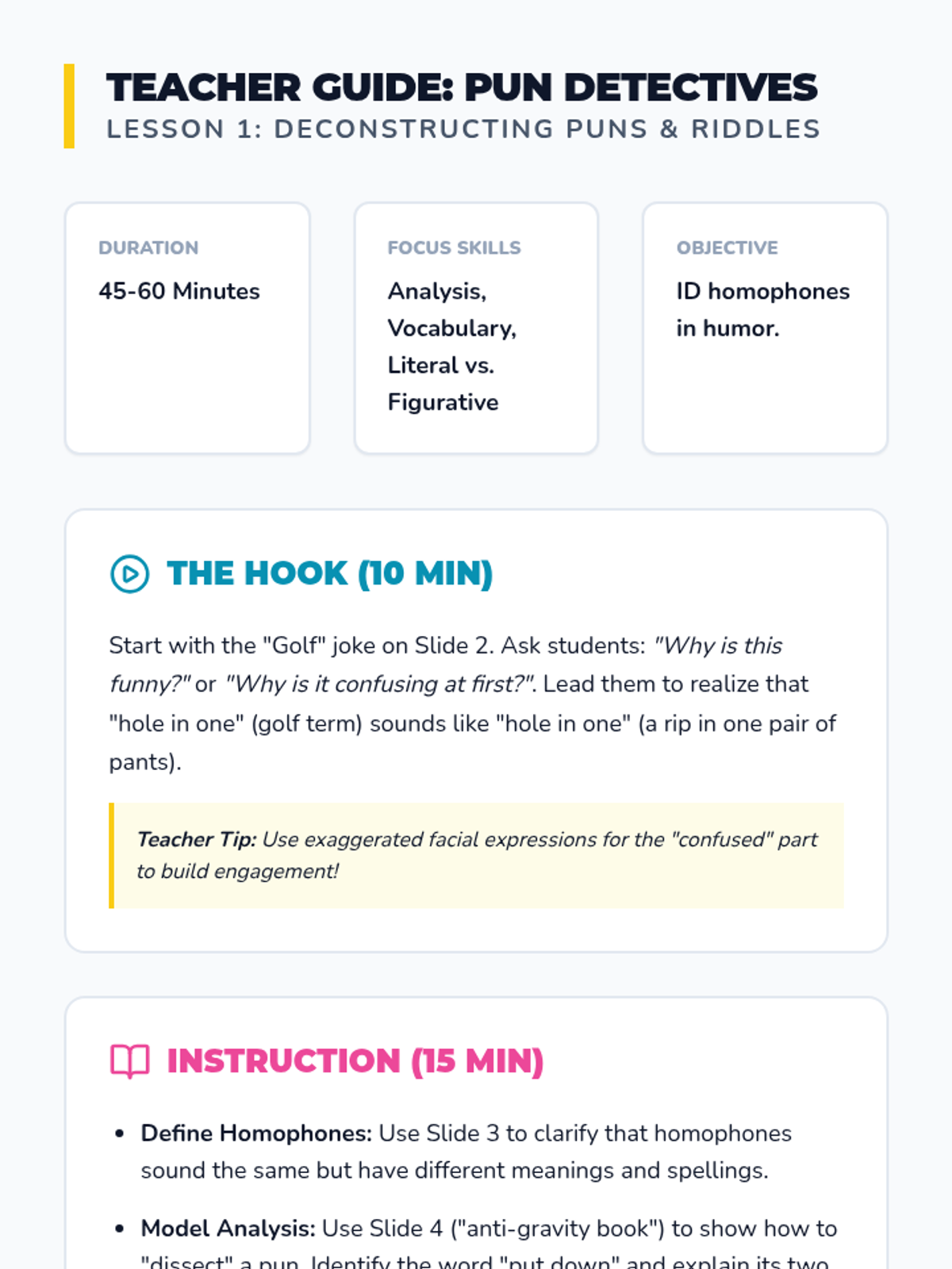 A creative vocabulary sequence for 3rd graders focusing on homophones through the lens of humor, puns, and riddles. Students move from analyzing jokes to creating their own original comic strips and riddles, culminating in a class joke book.