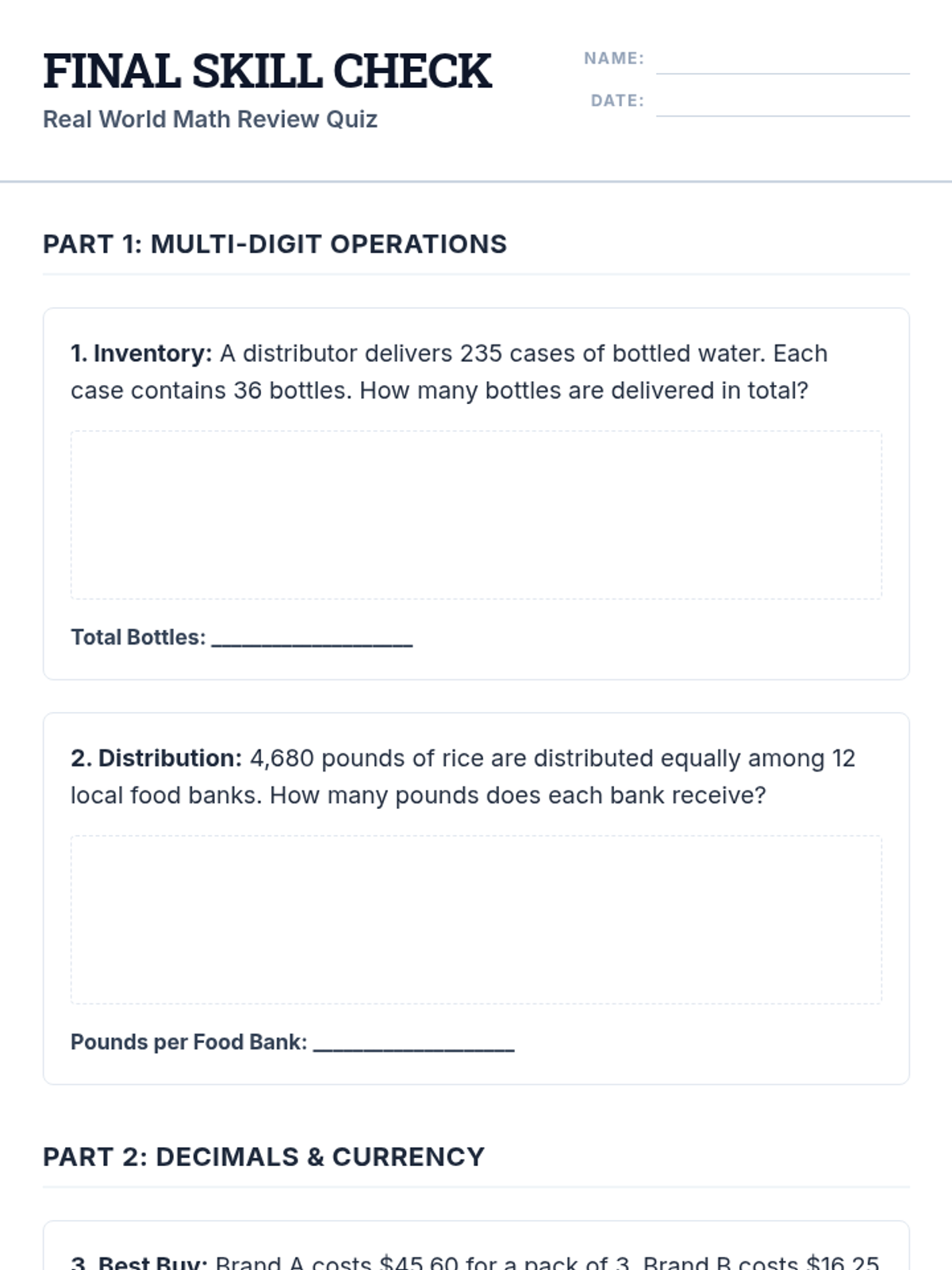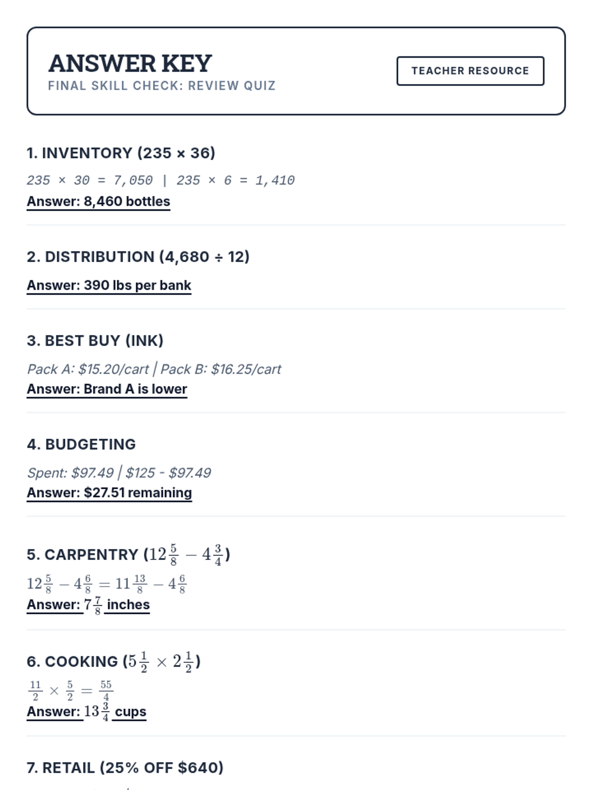 A comprehensive math series designed to prepare students for HSED exams by focusing on essential arithmetic skills applied to real-world workplace and adult life scenarios. Topics include multi-digit operations, decimals, fractions, and percentages.