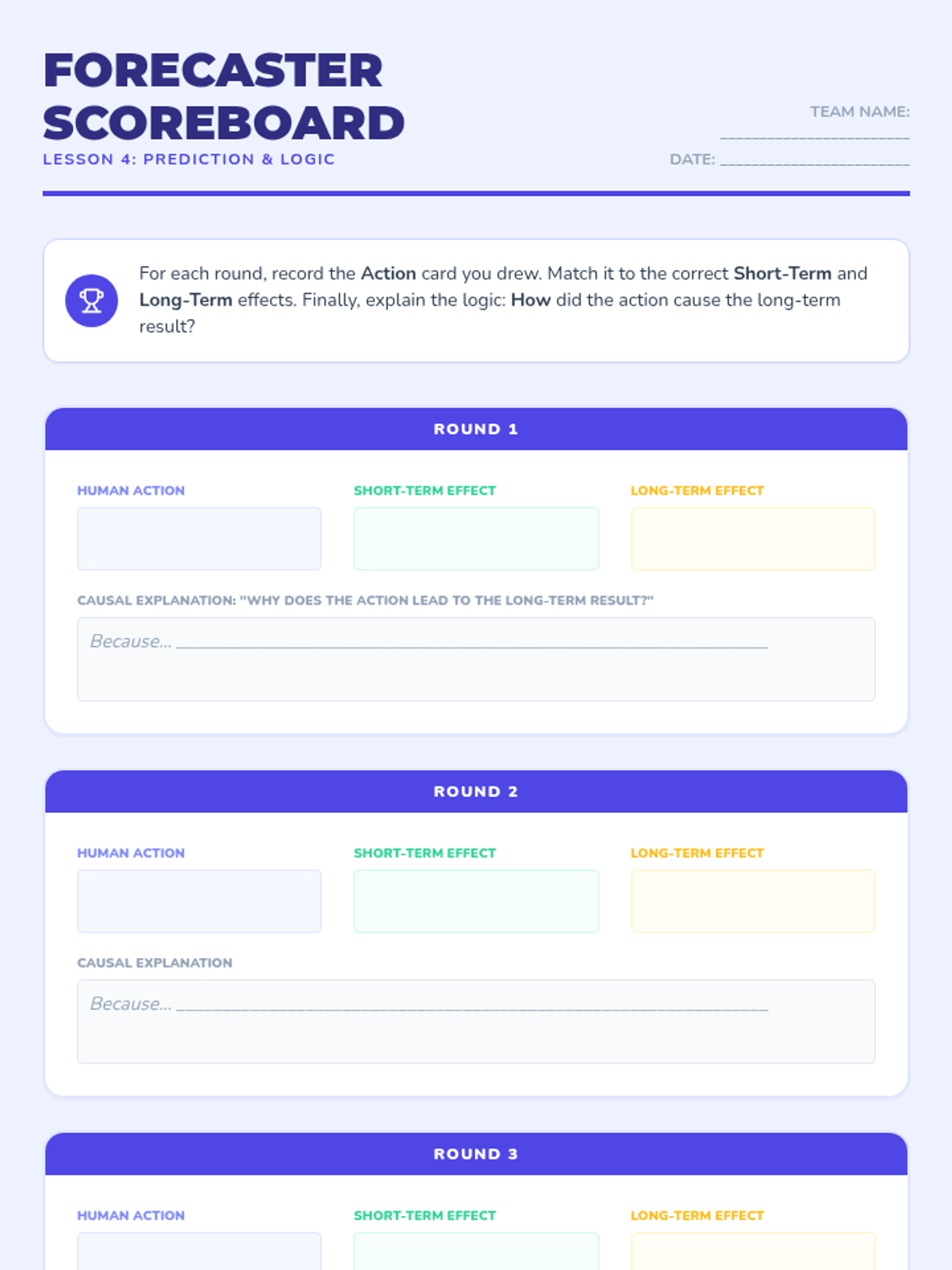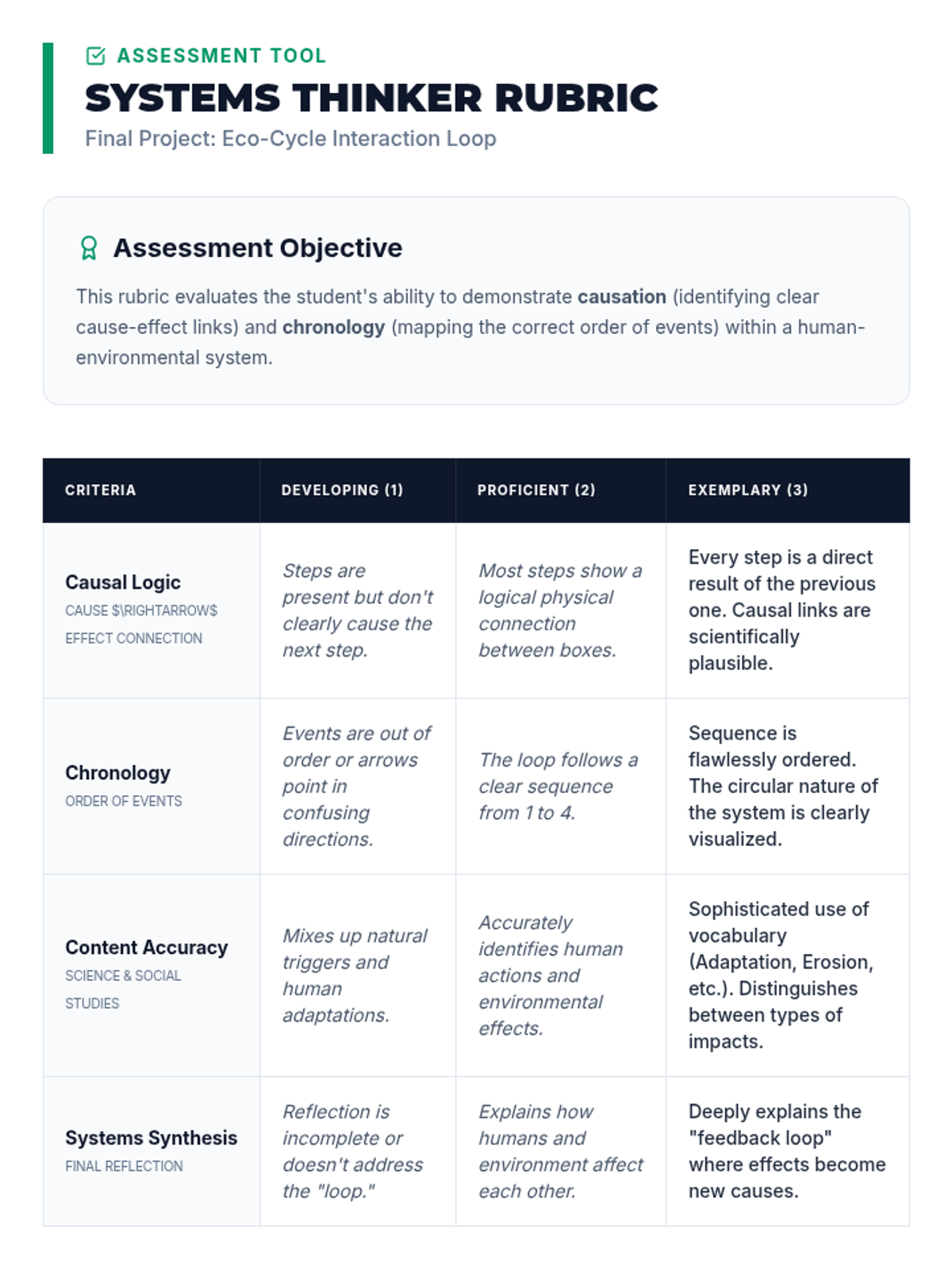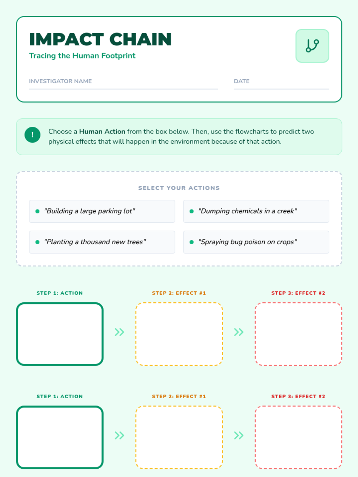 This 3rd-grade sequence explores the concepts of chronology and causation through the lens of human-environmental interactions. Students investigate how natural events trigger human responses and how human actions in turn impact the environment, culminating in an understanding of complex causal systems.