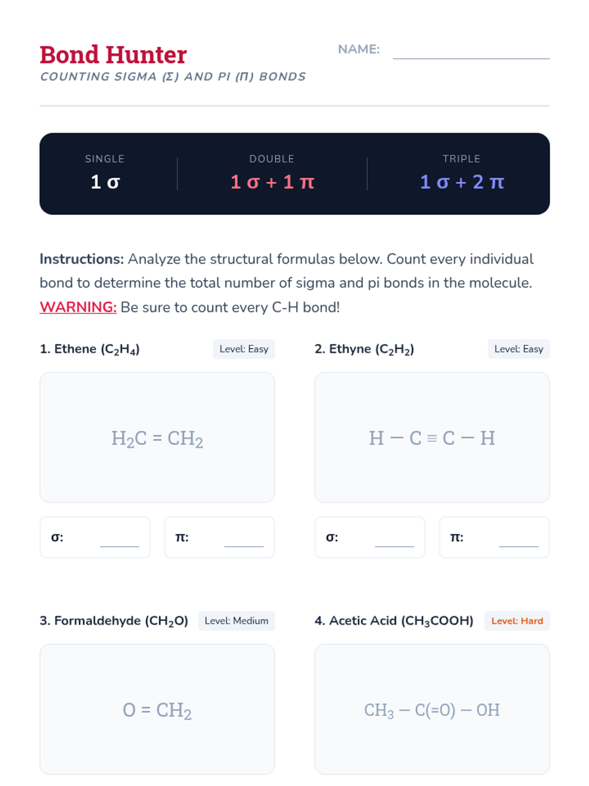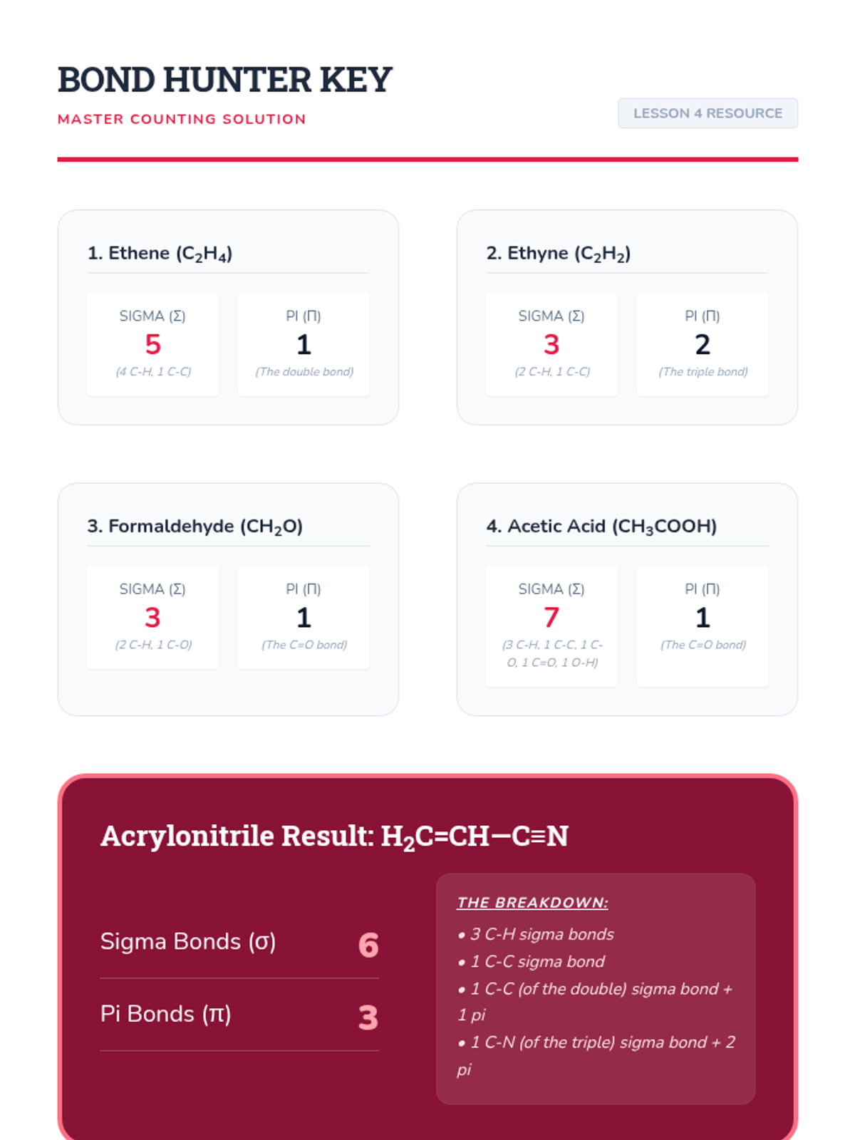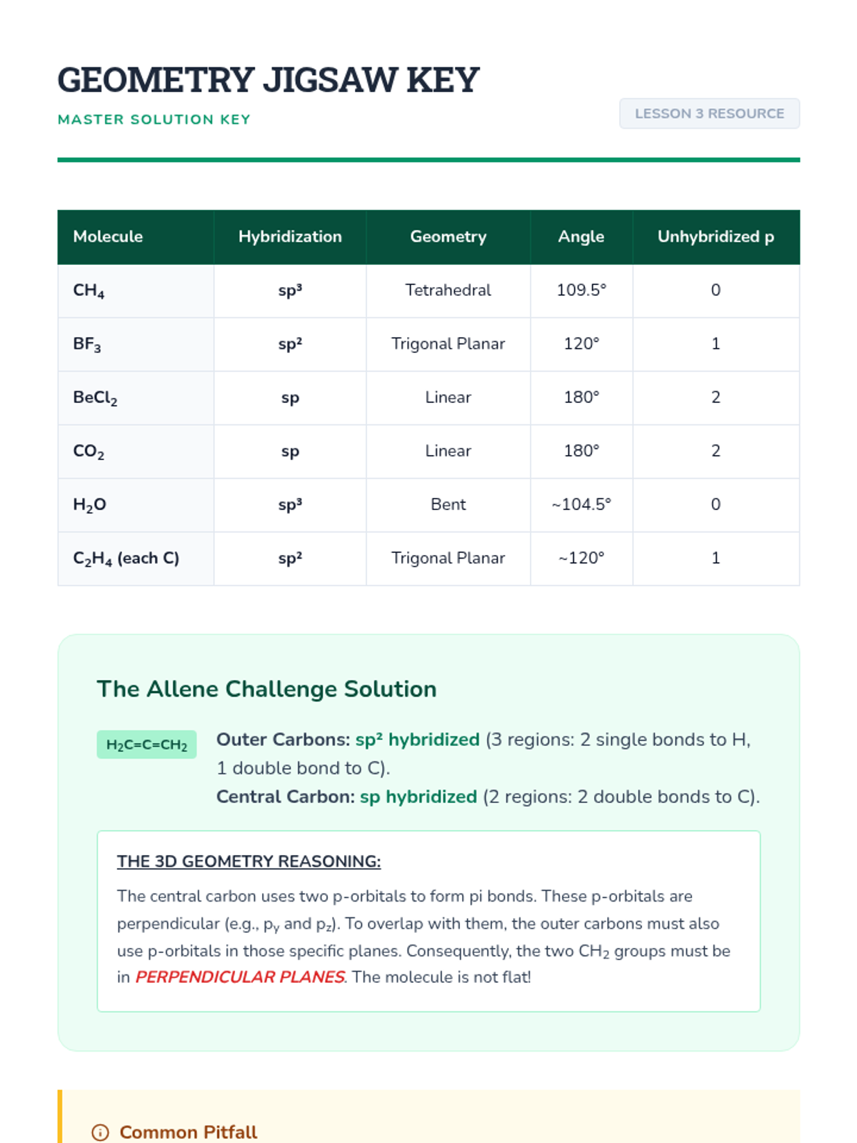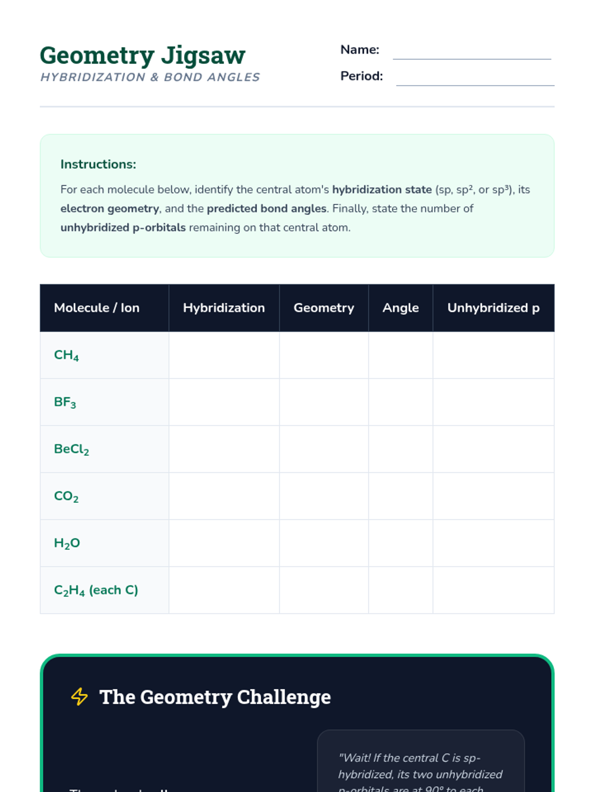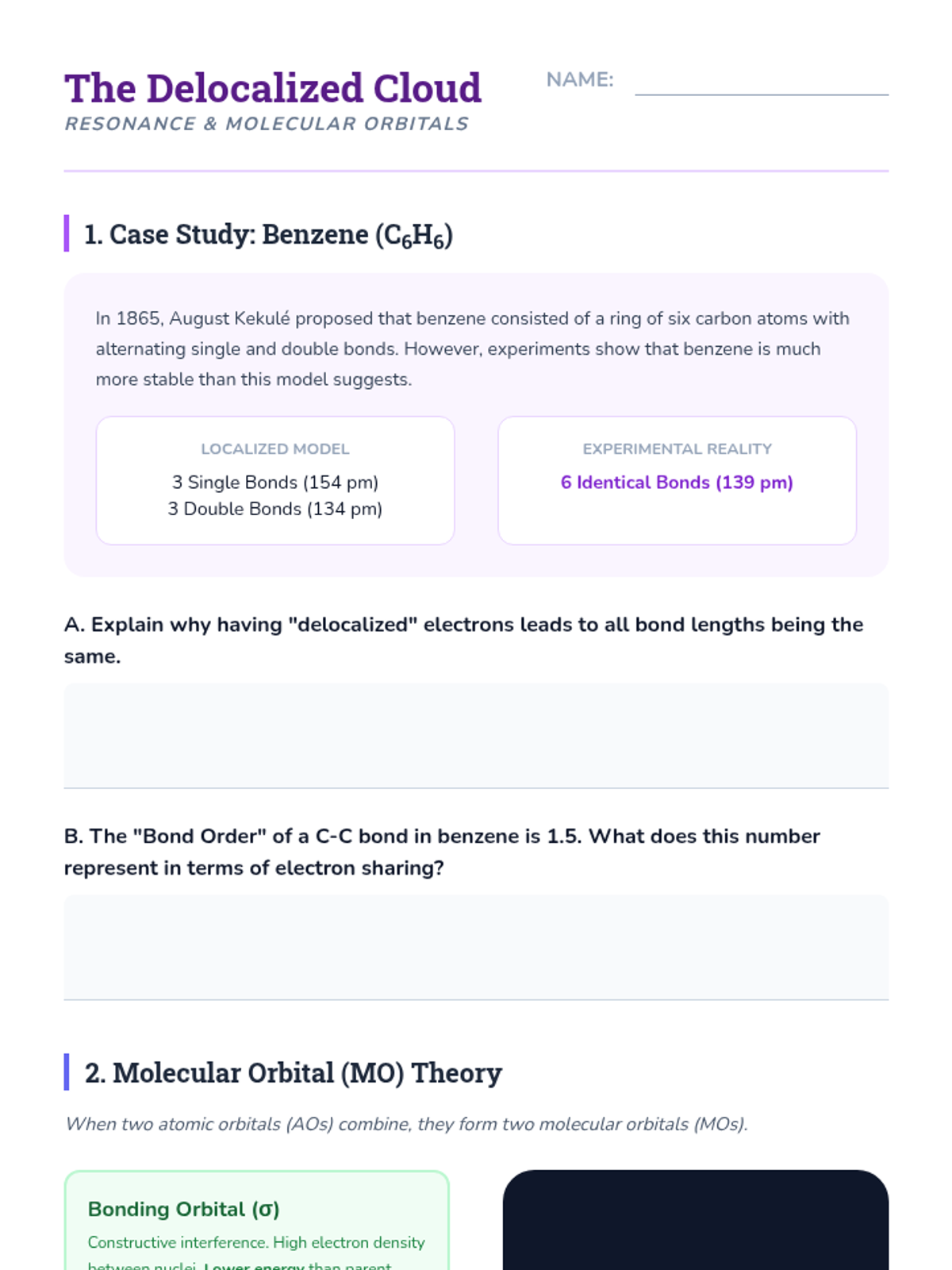 This sequence explores the quantum mechanical explanation of covalent bonding through Valence Bond Theory and hybridization. Students transition from simple Lewis structures to a 3D understanding of orbital overlap, hybrid orbital formation (sp, sp2, sp3), and the distinction between sigma and pi bonds, concluding with an introduction to electron delocalization.