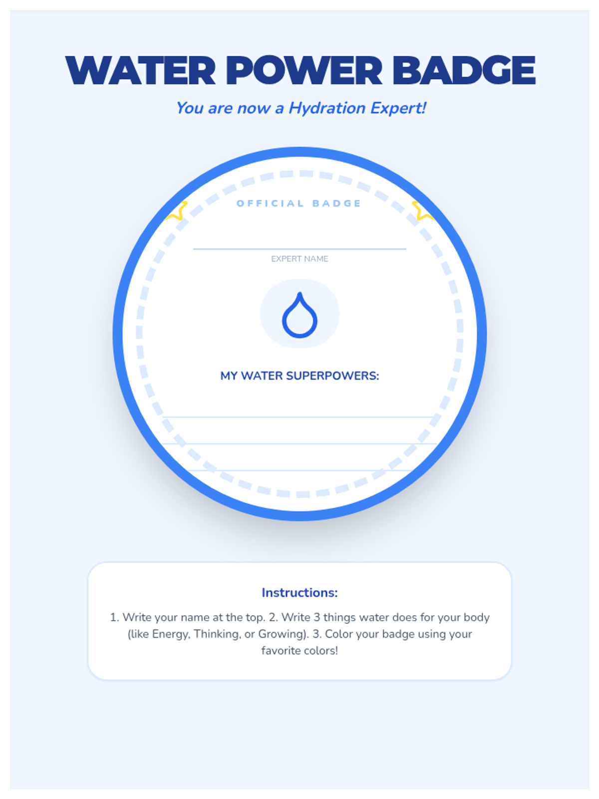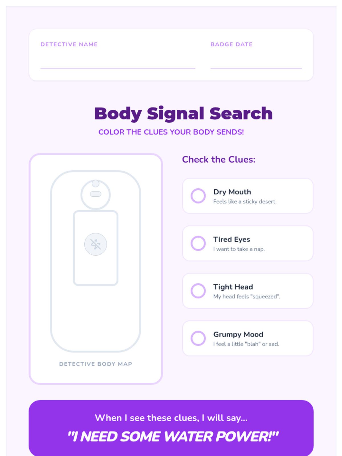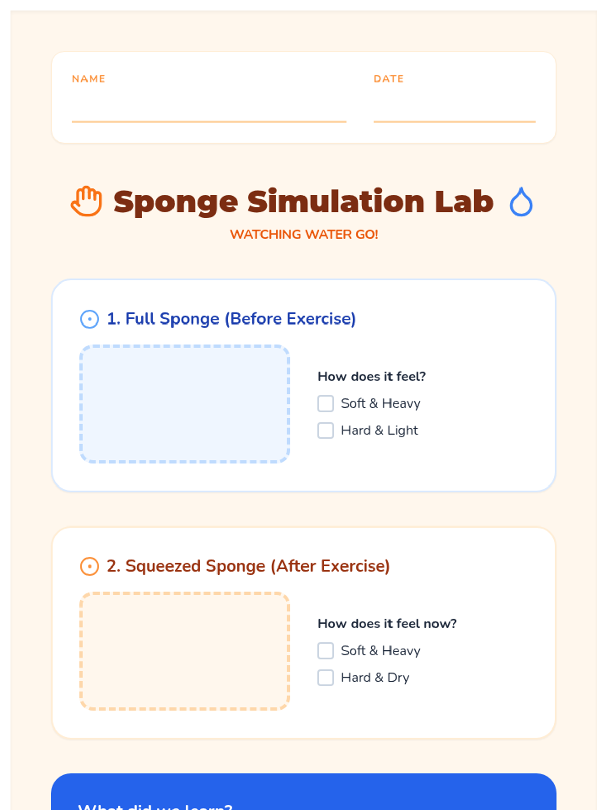 This inquiry-based sequence for first-grade students explores the biological necessity of water. Students learn to recognize physical signs of thirst, understand water loss through sweat, and monitor their hydration levels using urine color as a tool, ultimately connecting hydration to physical energy and mood.