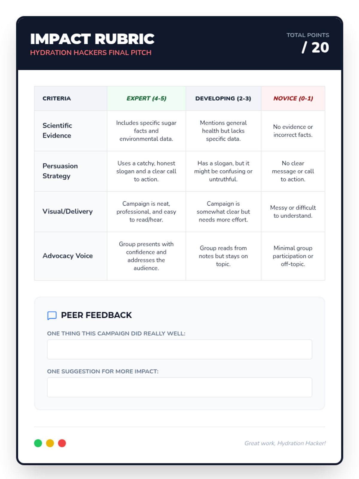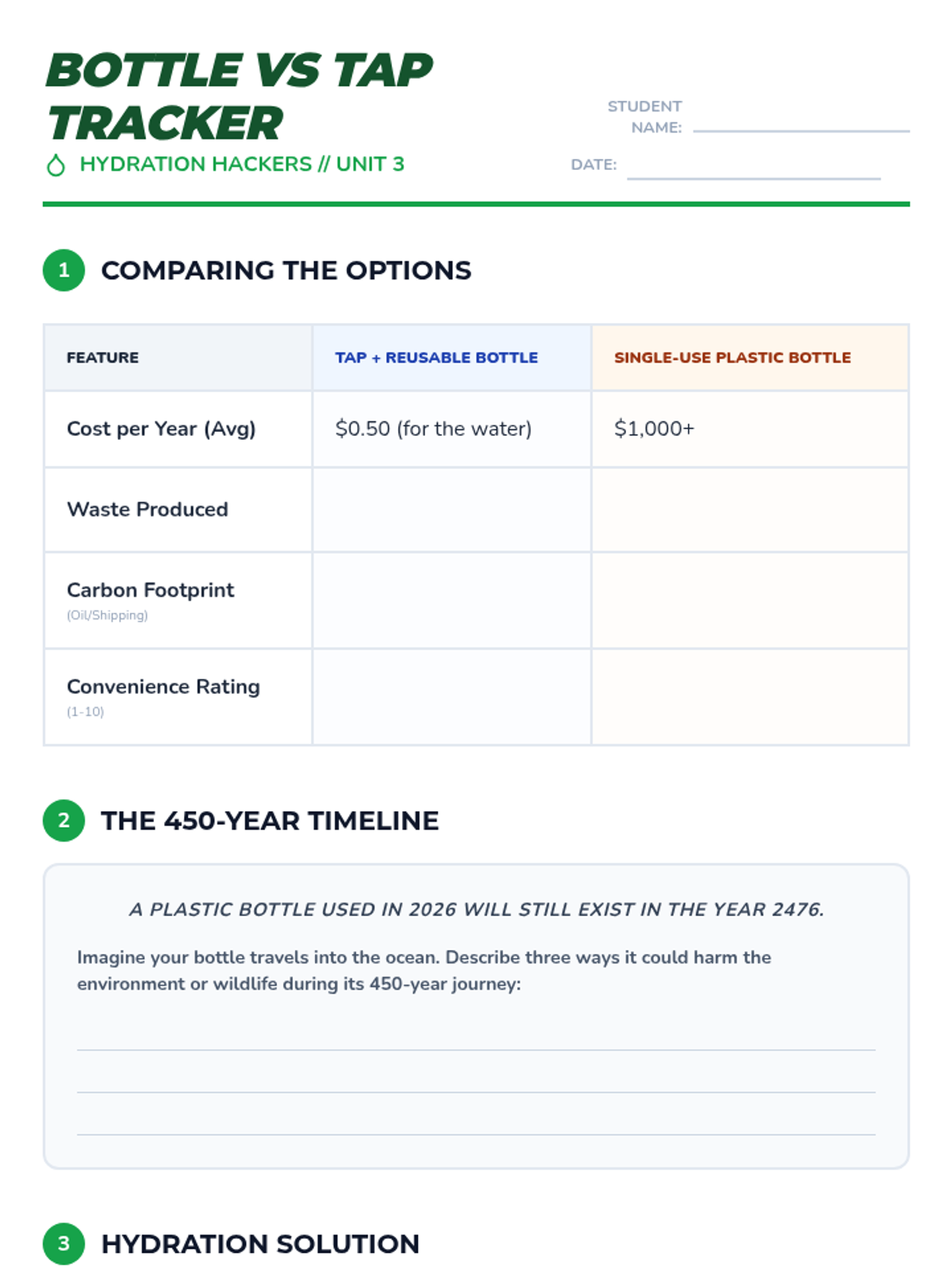 A project-based sequence for 5th graders examining hydration through consumer science, marketing analysis, and environmental impact. Students become critical consumers and health advocates within their school community.