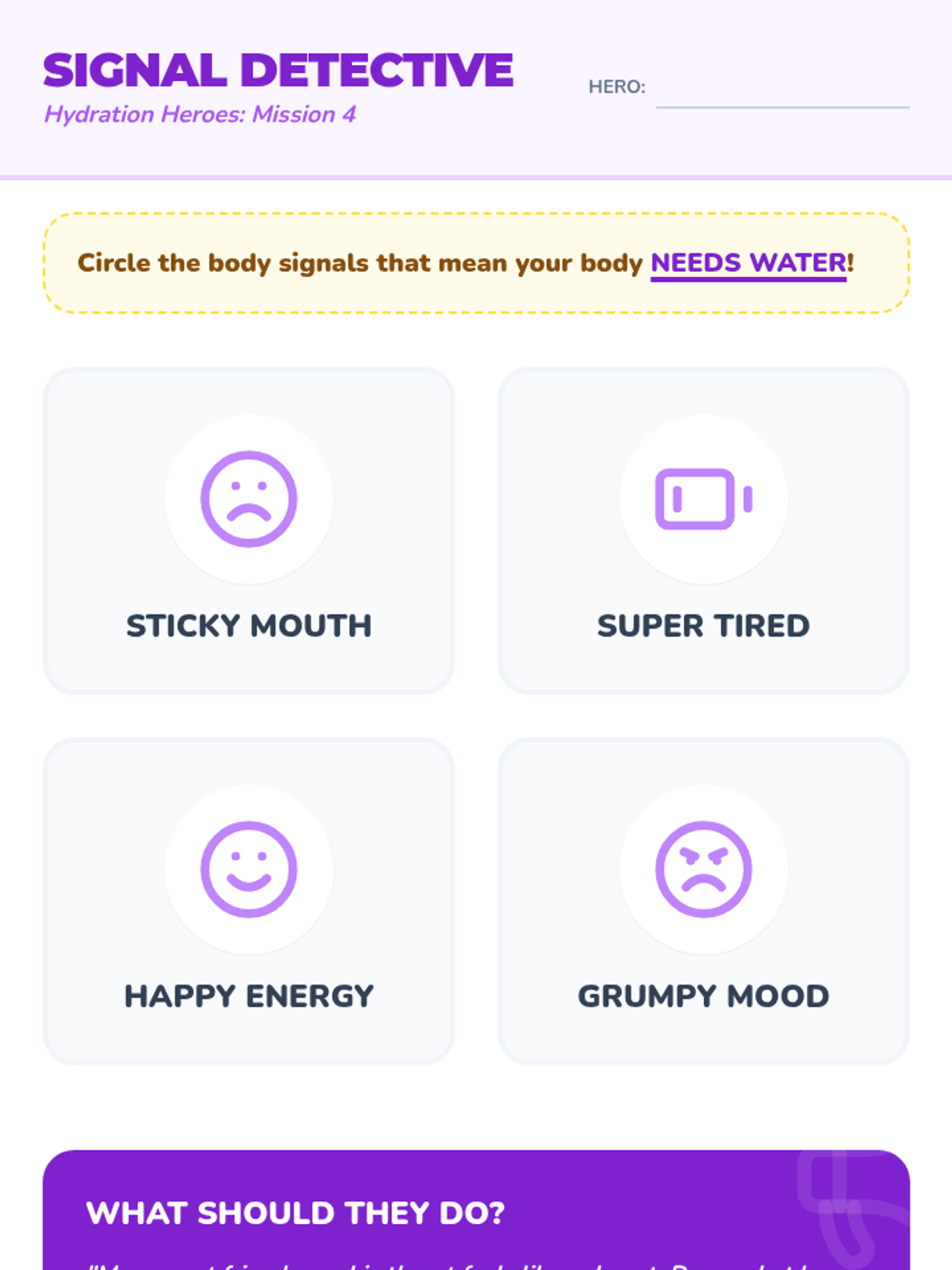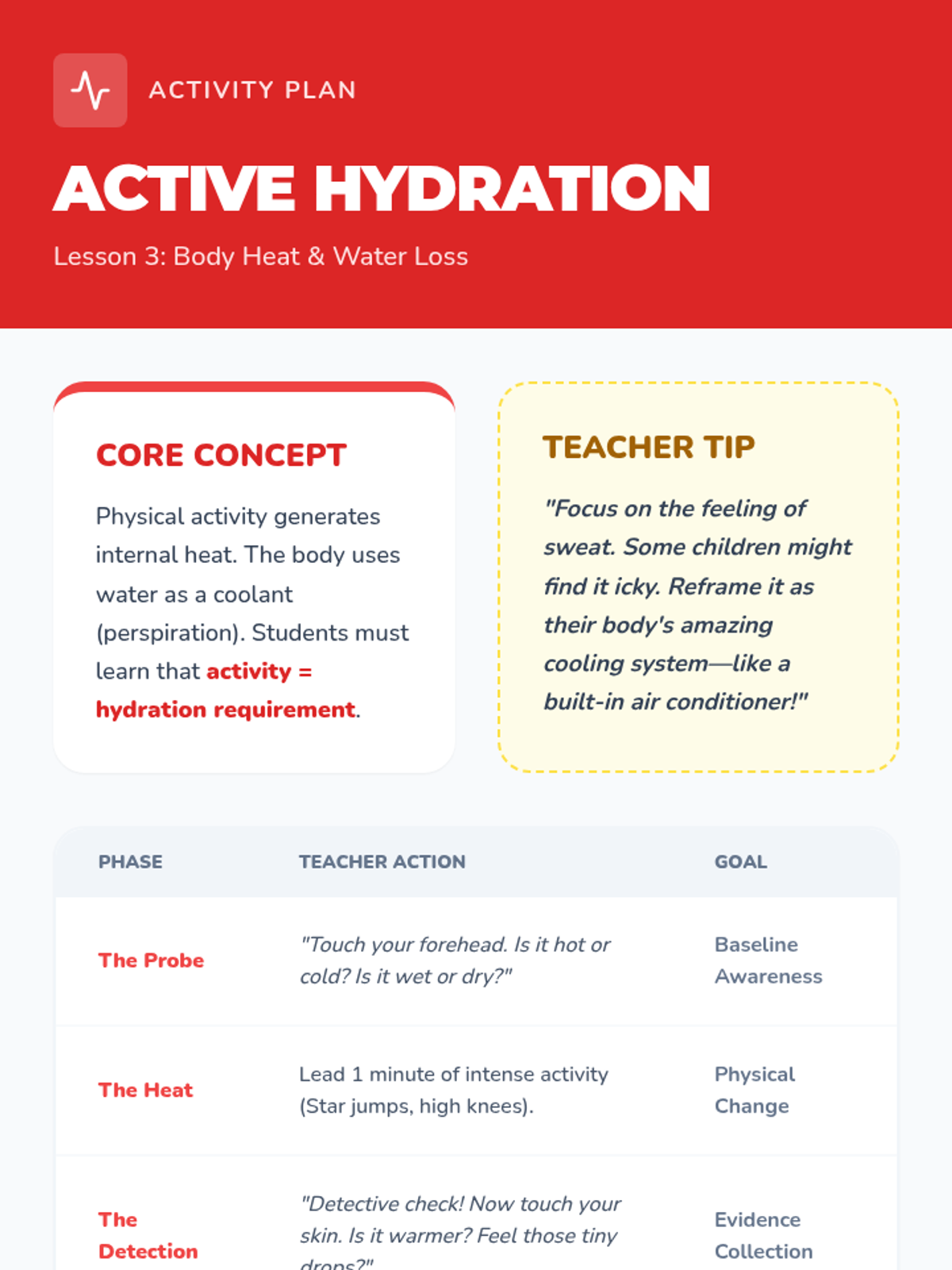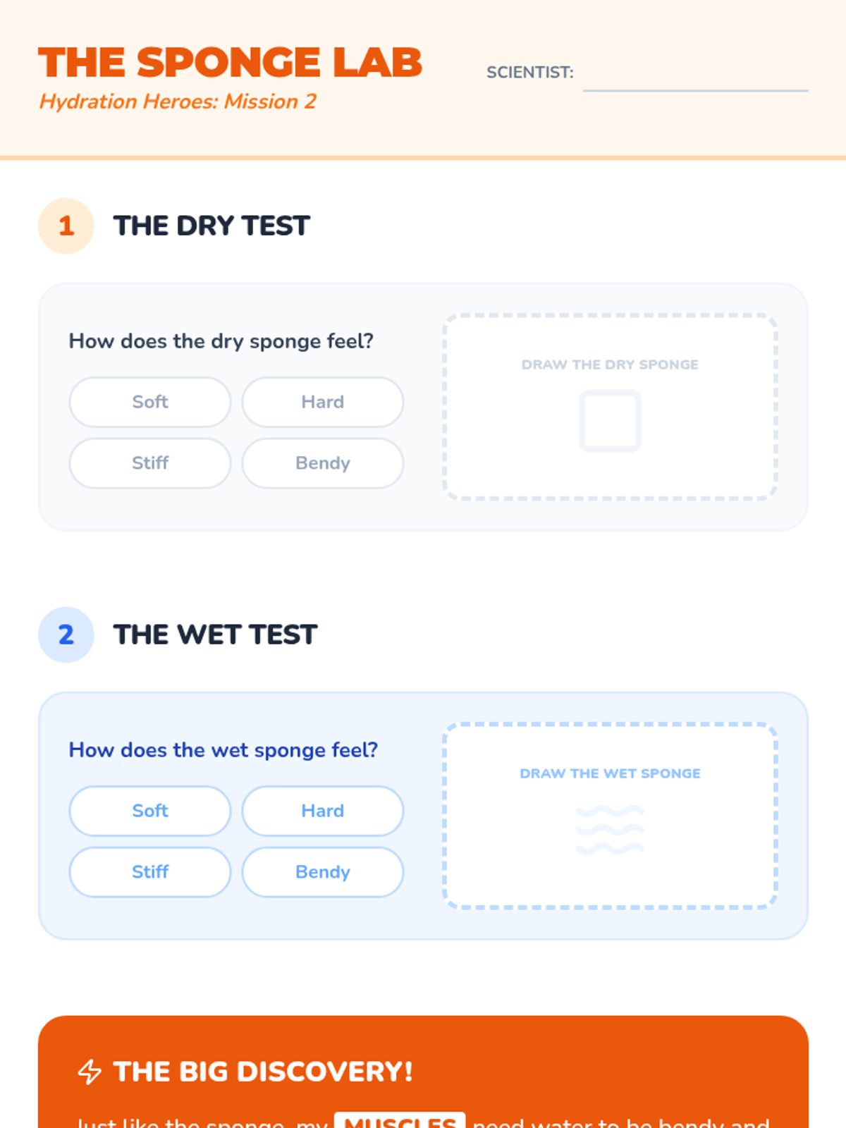 An inquiry-based exploration for Kindergarteners to understand why the body needs water. Through analogies, movement, and sensory experiences, students learn about biological needs, muscle flexibility, and body signals.