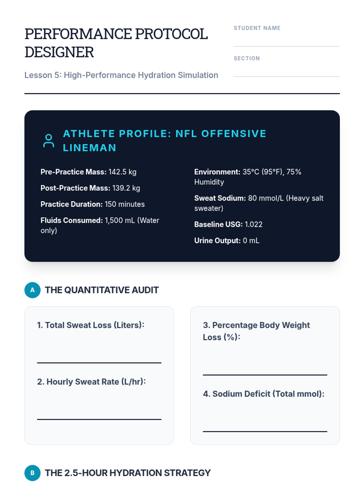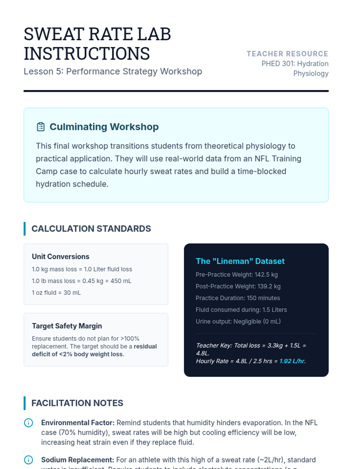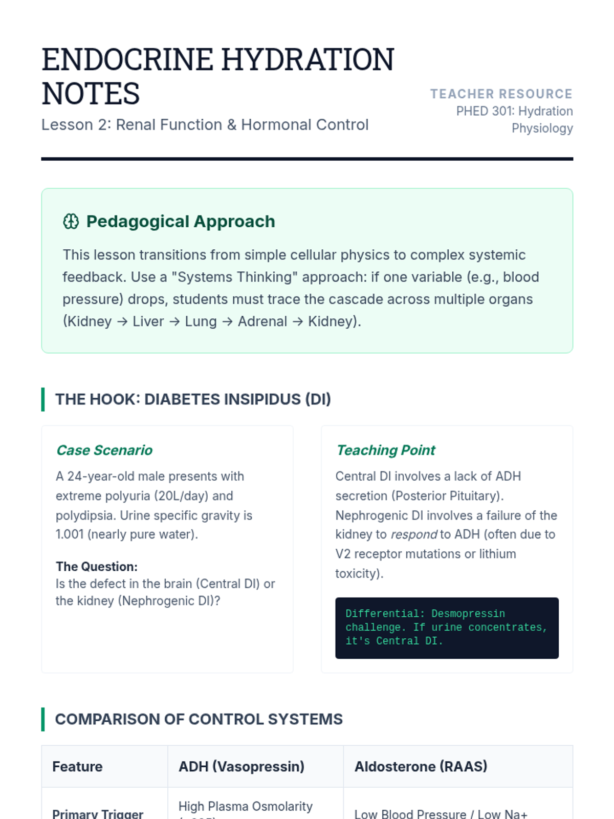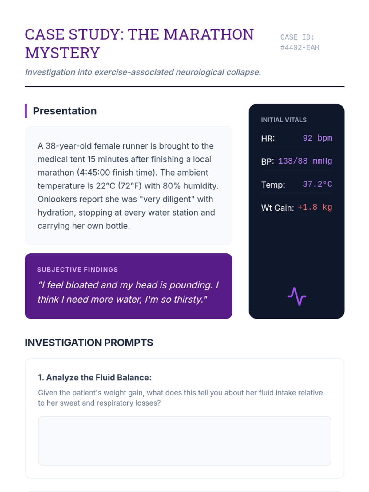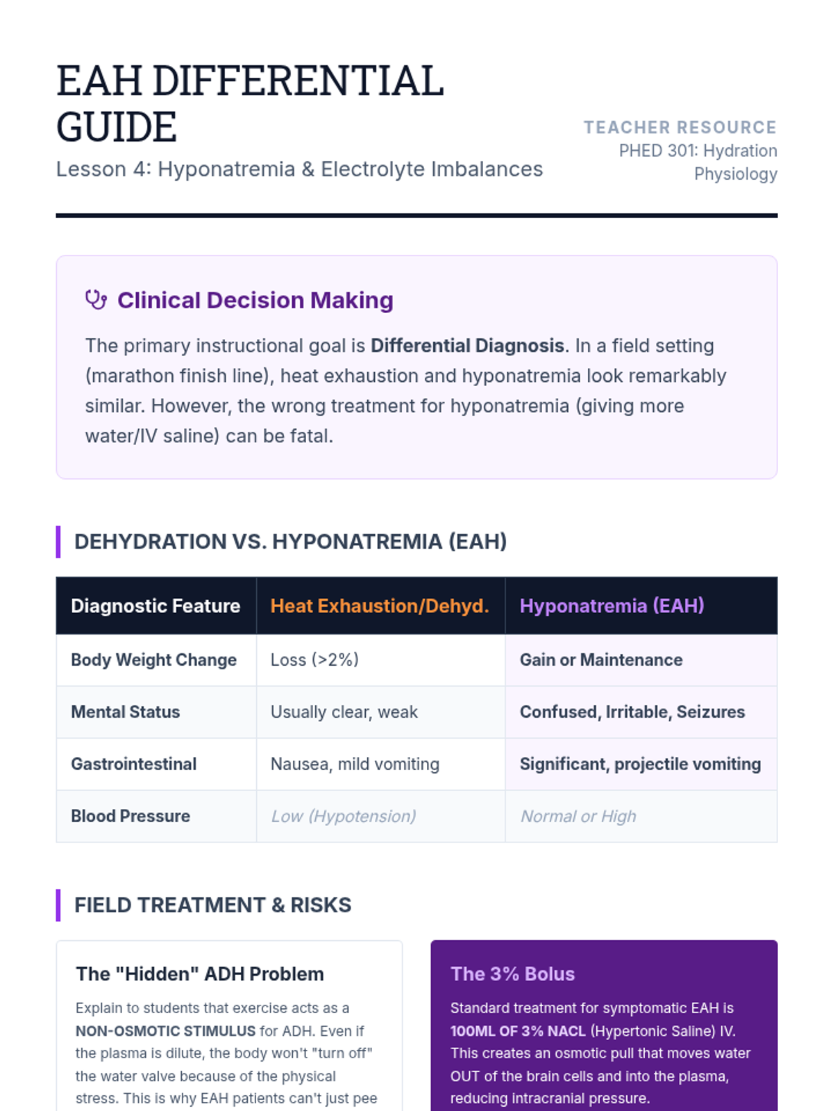 An advanced undergraduate-level exploration of the physiological and biochemical mechanisms governing human hydration, performance, and health. Students analyze fluid compartments, hormonal control, exercise physiology, and clinical risks like hyponatremia.