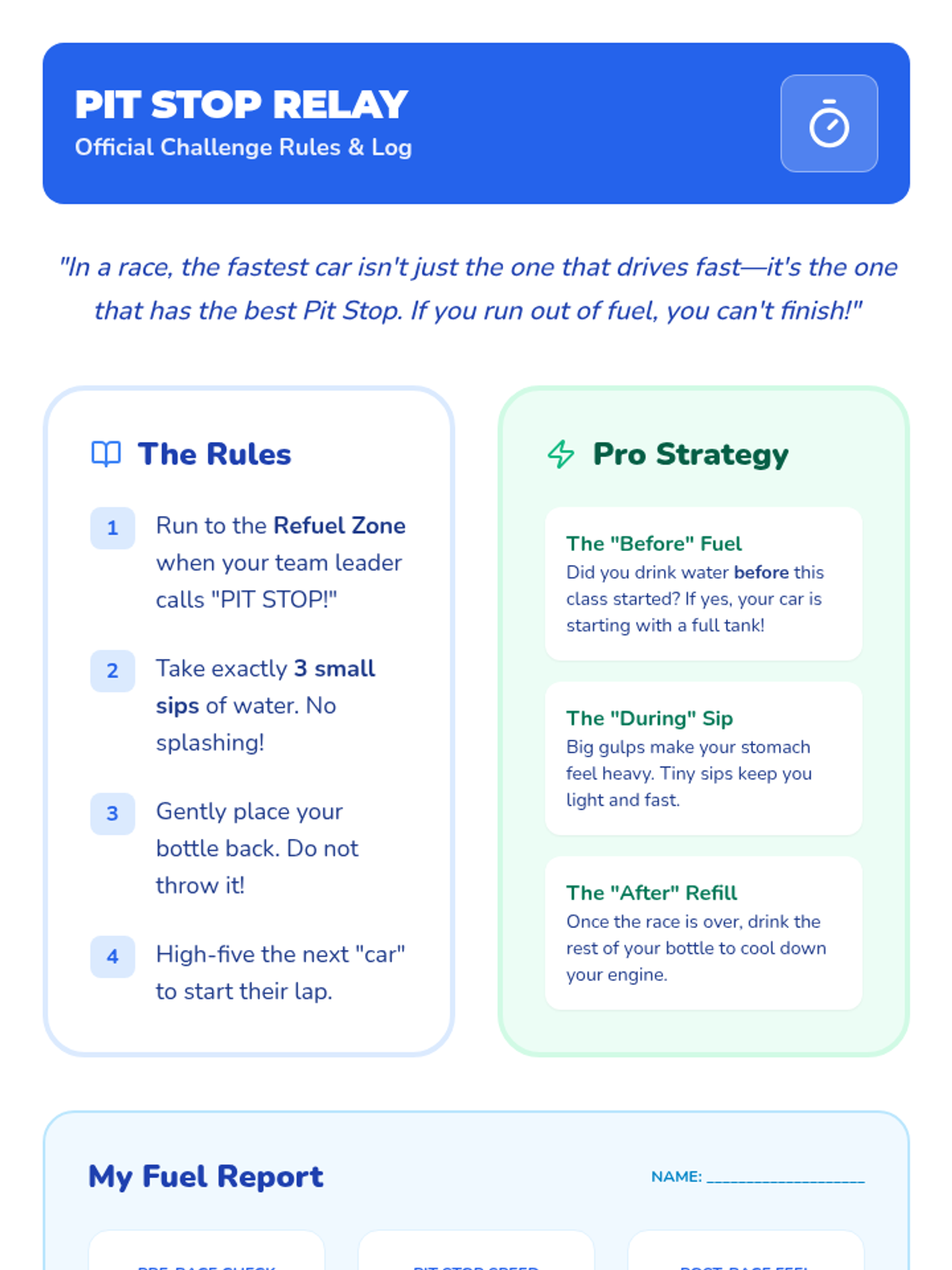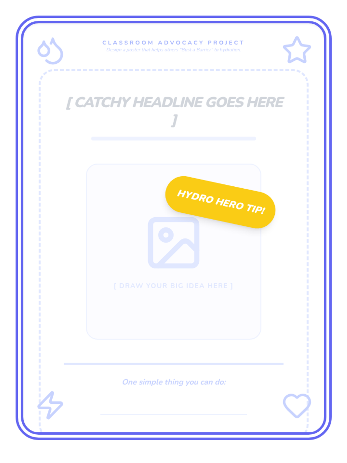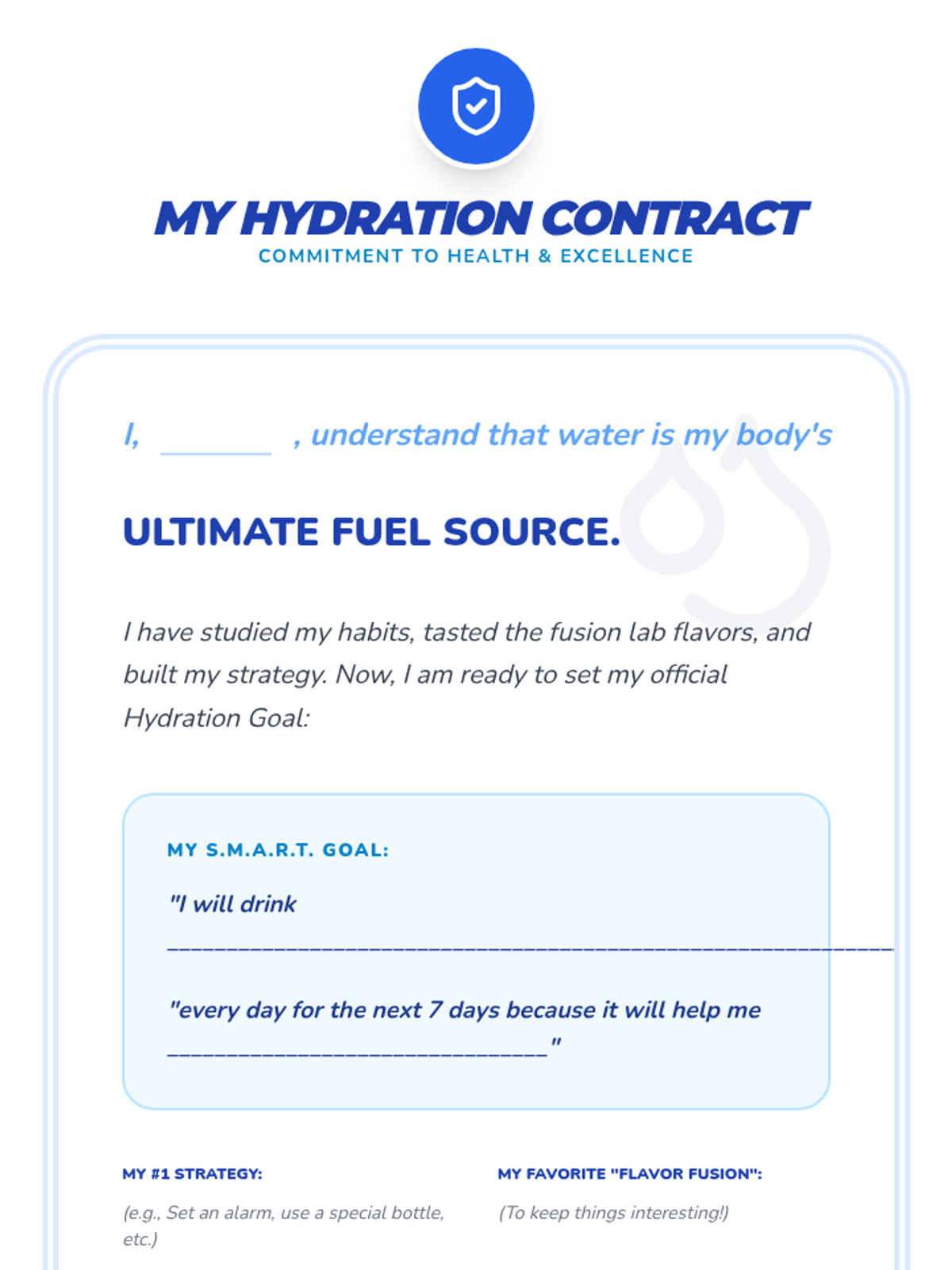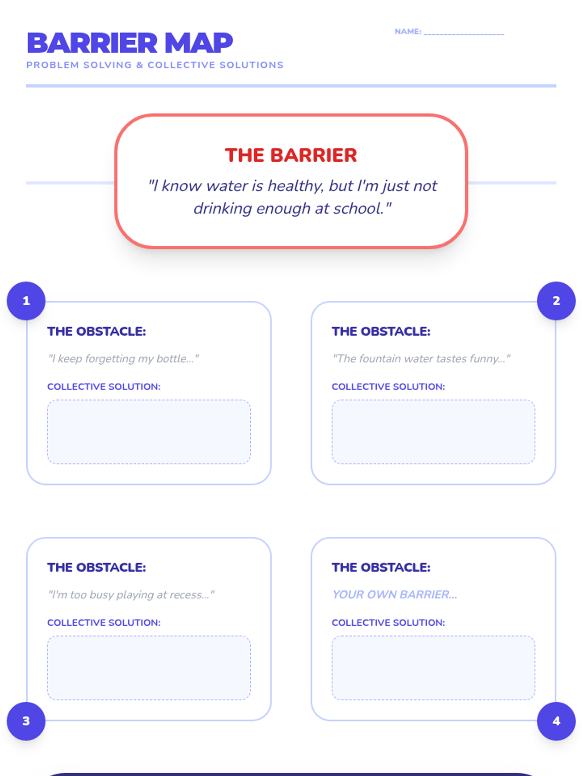 A 3rd-grade sequence focused on building sustainable hydration habits through data tracking, physical activity strategies, and creative flavor infusion. Students move from baseline assessment to personal goal setting and advocacy.
