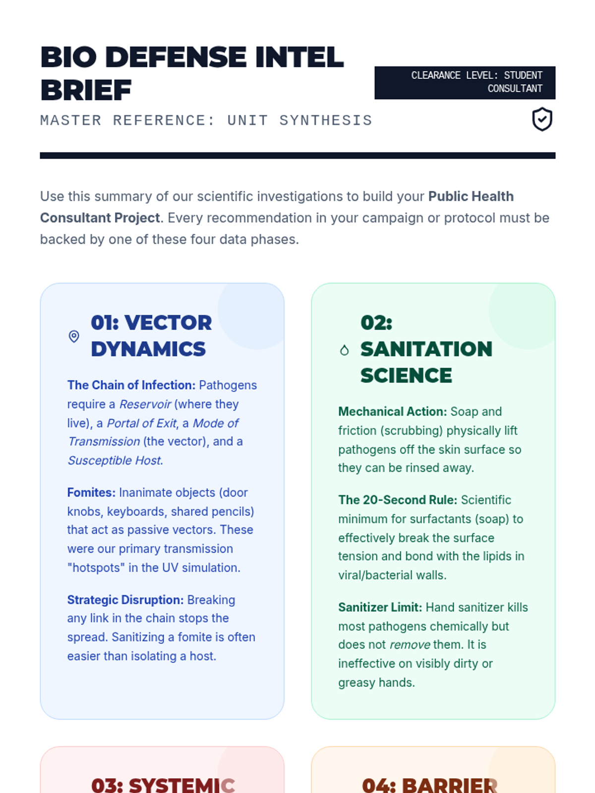 This 8th-grade health sequence explores the science of disease transmission and personal hygiene. Students use simulations and experiments to evaluate the efficacy of sanitation protocols, investigate the link between oral health and systemic disease, and develop evidence-based skin care routines tailored to adolescent physiology.