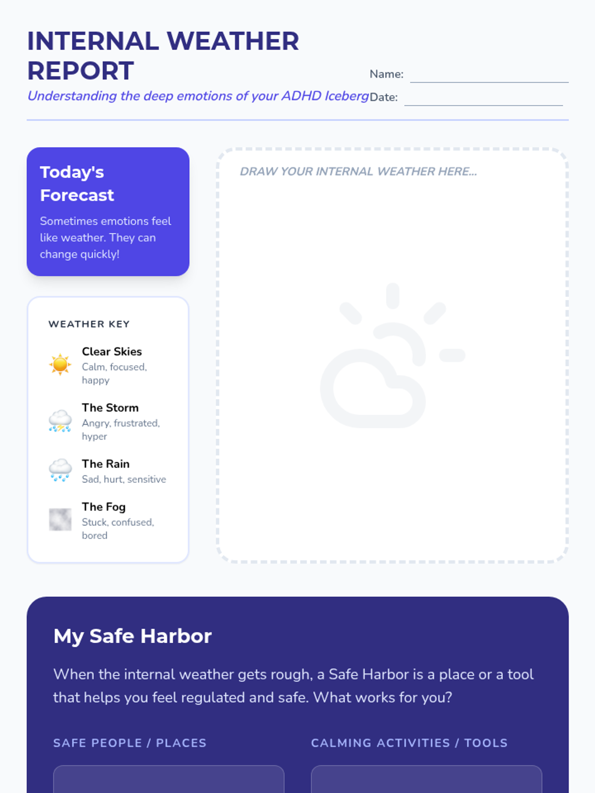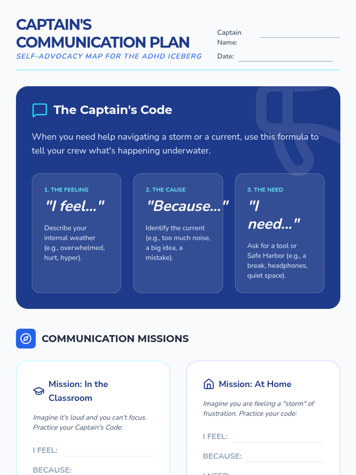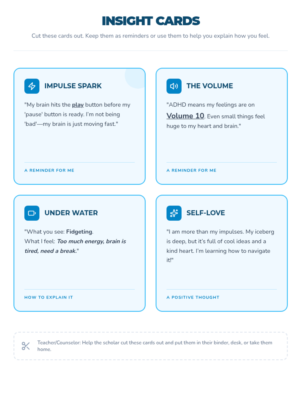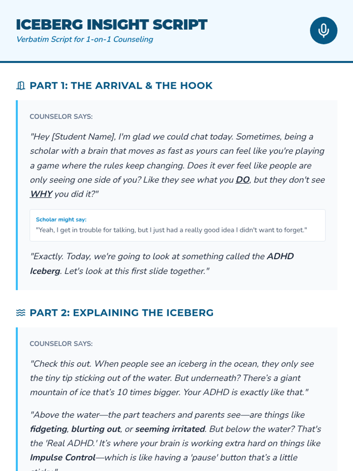 A counseling series using the iceberg analogy to help students with ADHD understand their neurodiversity, master emotional regulation, and develop self-advocacy skills. Each lesson dives deeper into specific 'underwater' challenges.