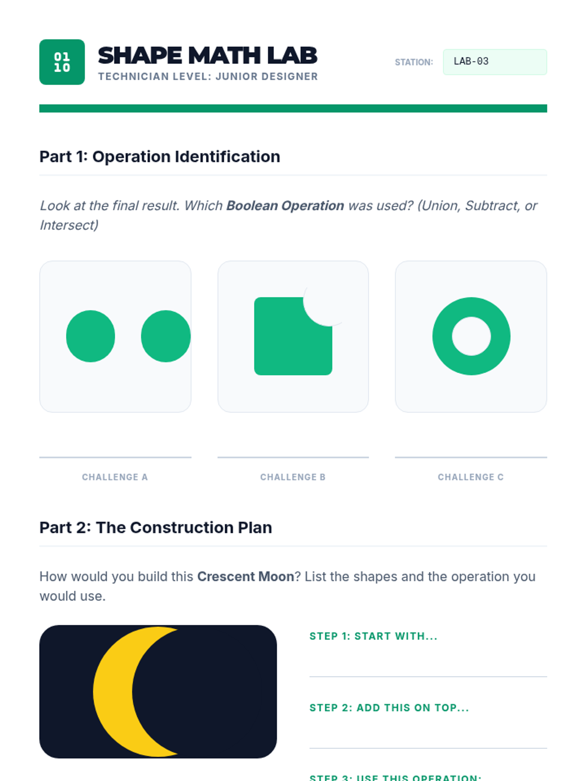 This project-based sequence introduces 5th-grade students to the fundamentals of vector illustration and brand identity. Students progress from understanding pixel vs. math-based images to creating a professional personal logo using Boolean operations and path manipulation.
