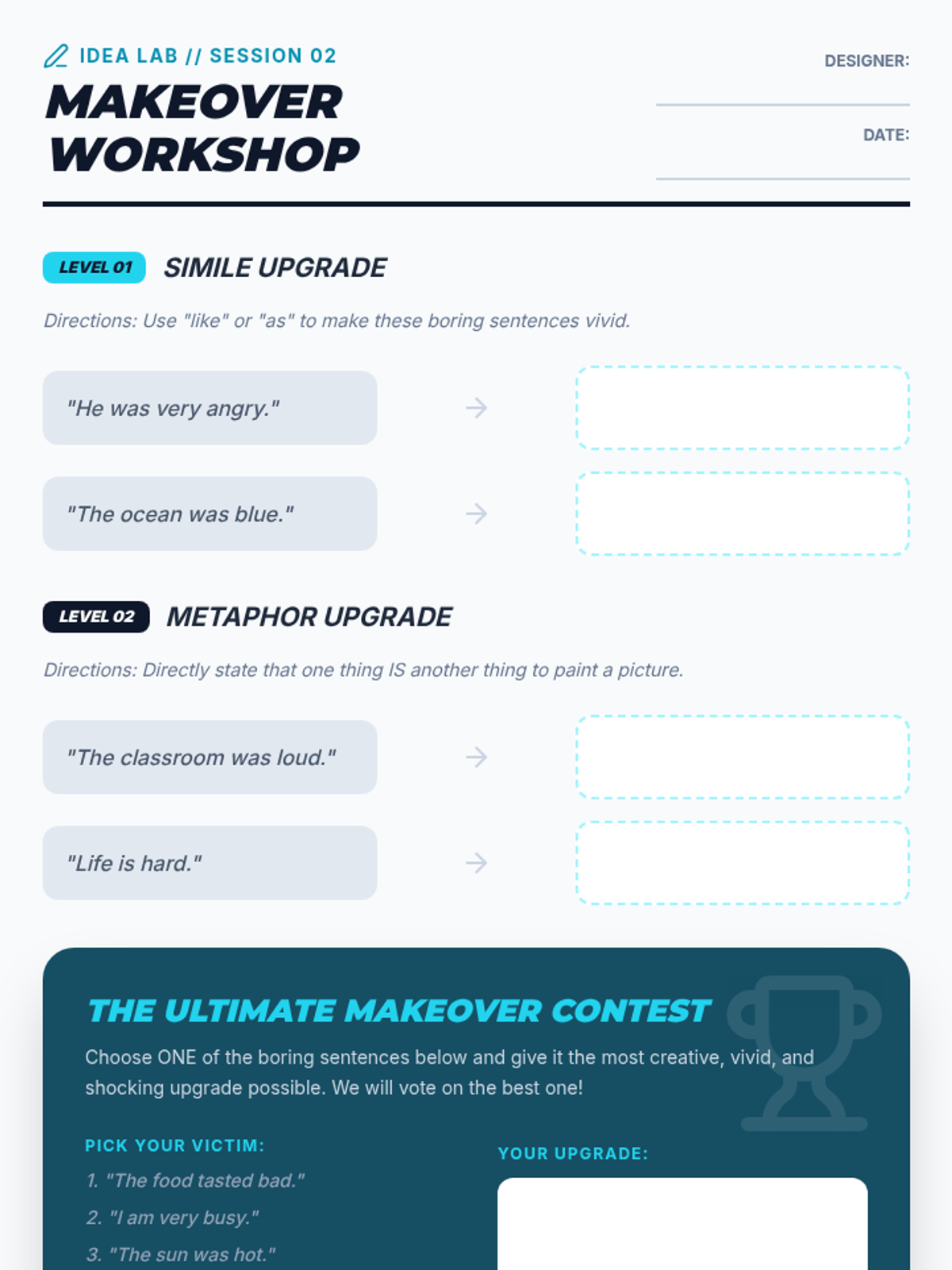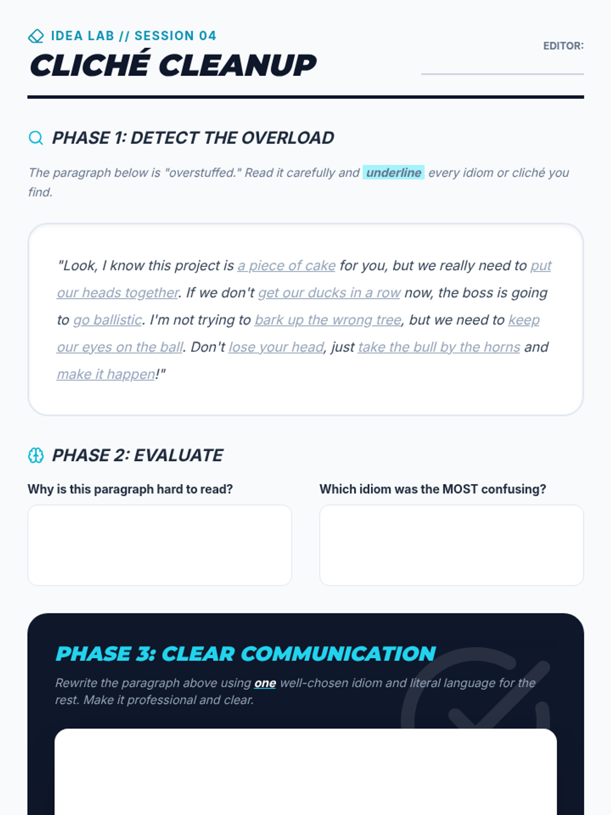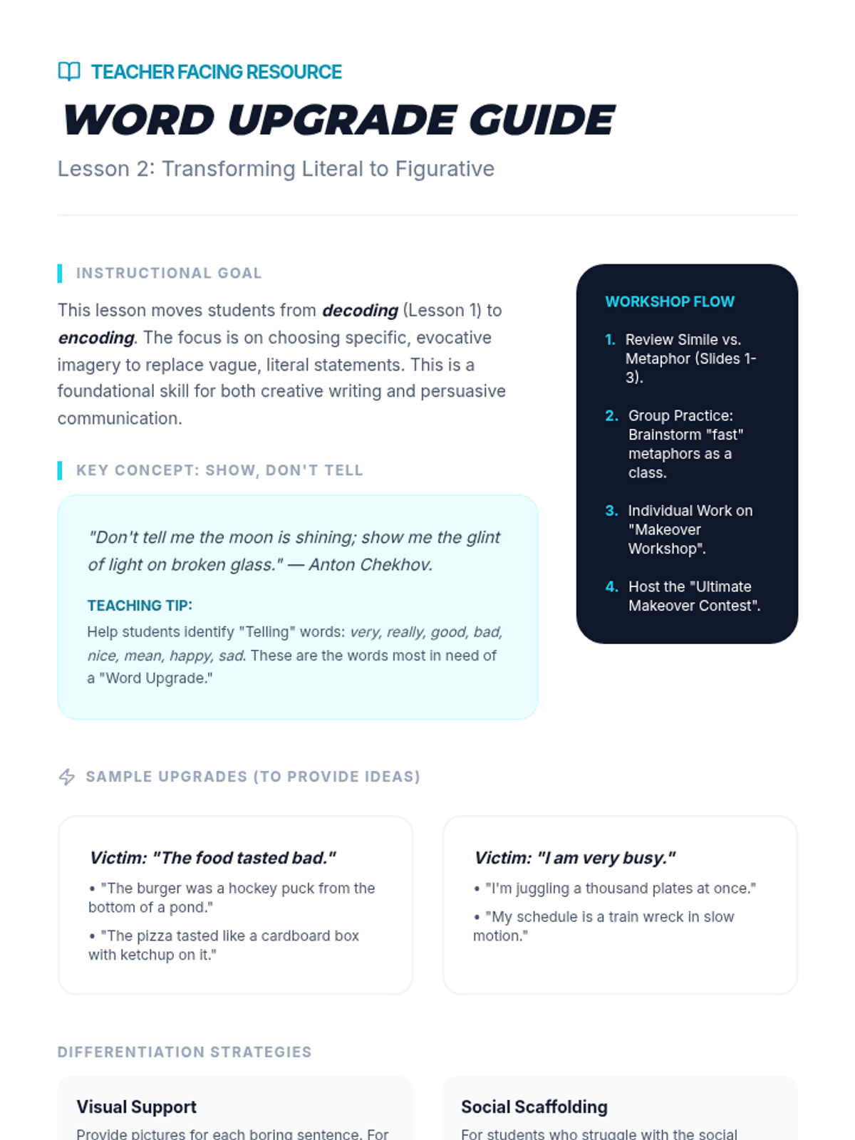 A high-school level sequence focused on social communication through the lens of figurative language. Students explore how idioms, metaphors, and similes are used in advertising, creative writing, and emotional expression, culminating in a persuasive pitch project.