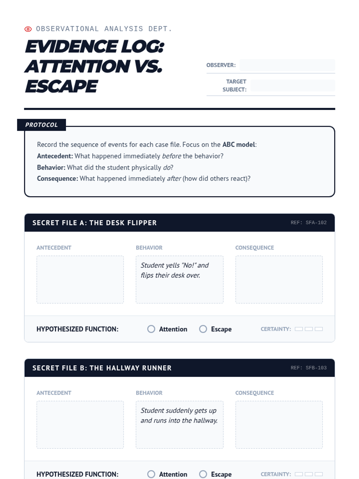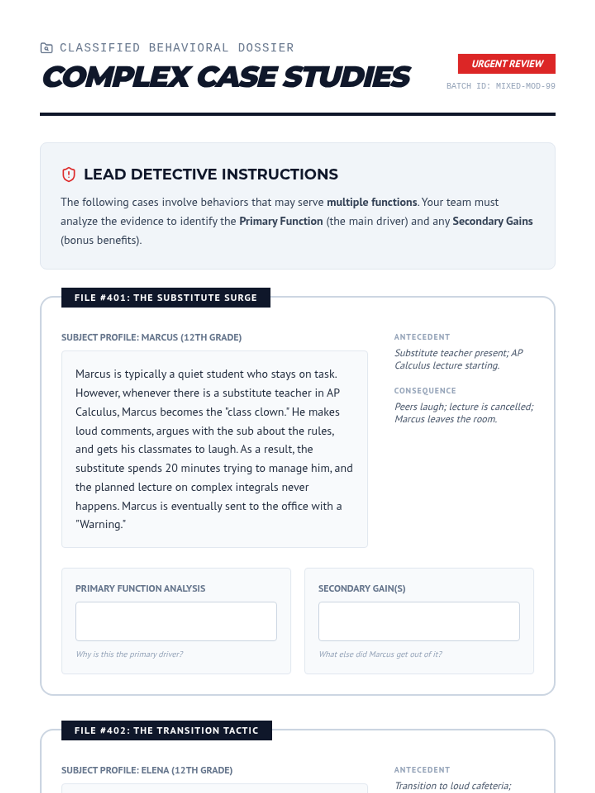 A comprehensive 12th-grade unit exploring the SEAT model (Sensory, Escape, Attention, Tangible) to understand why individuals engage in challenging behaviors and how to identify their underlying needs.