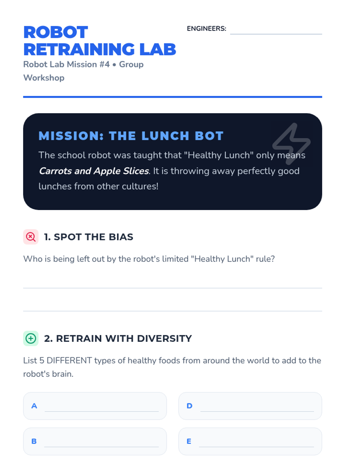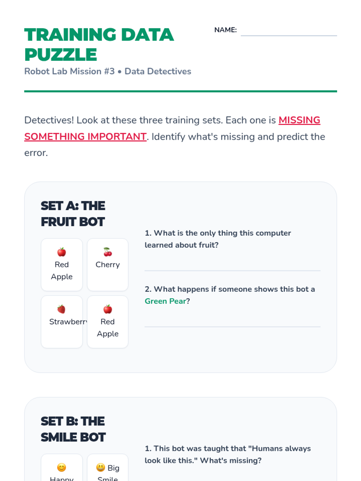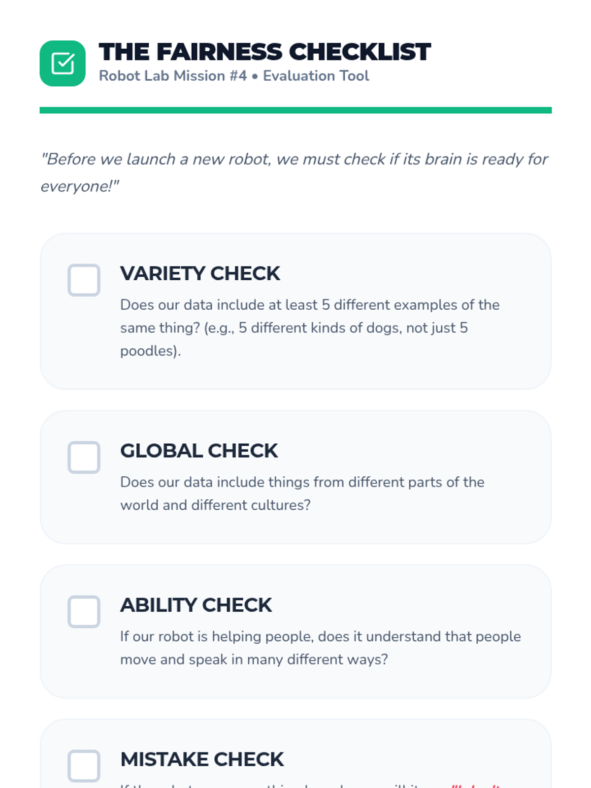 A sequence for 3rd graders to explore the concepts of training data, algorithms, and bias. Students learn how computers make decisions and why 'fairness' in data is crucial for ethical technology.