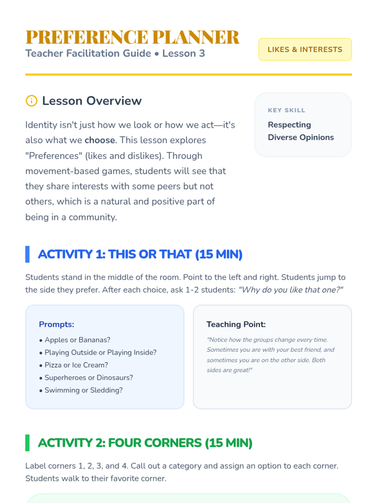 This first-grade sequence introduces the concept of authority figures at home, school, and in the community. Students learn to identify leaders, understand the purpose of rules, and distinguish between positive authority and bullying through interactive lessons and creative projects.