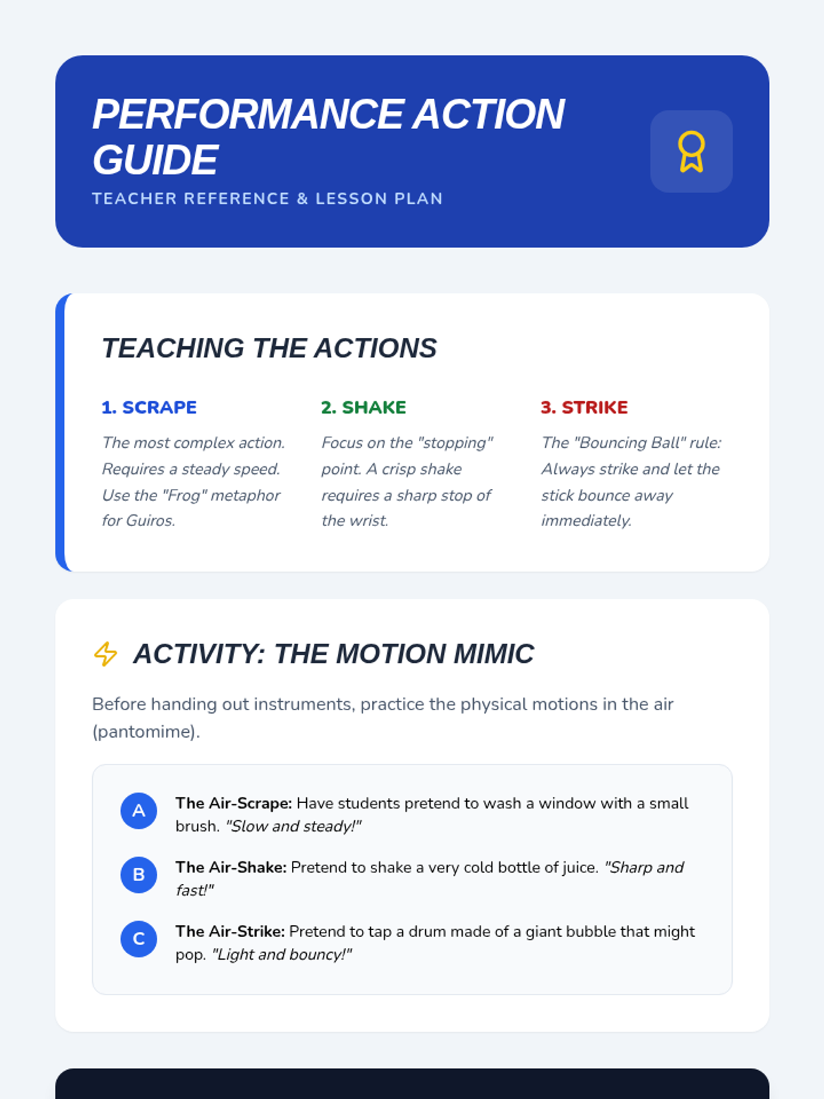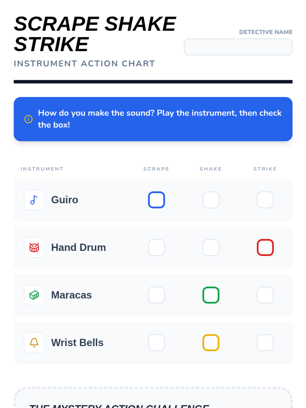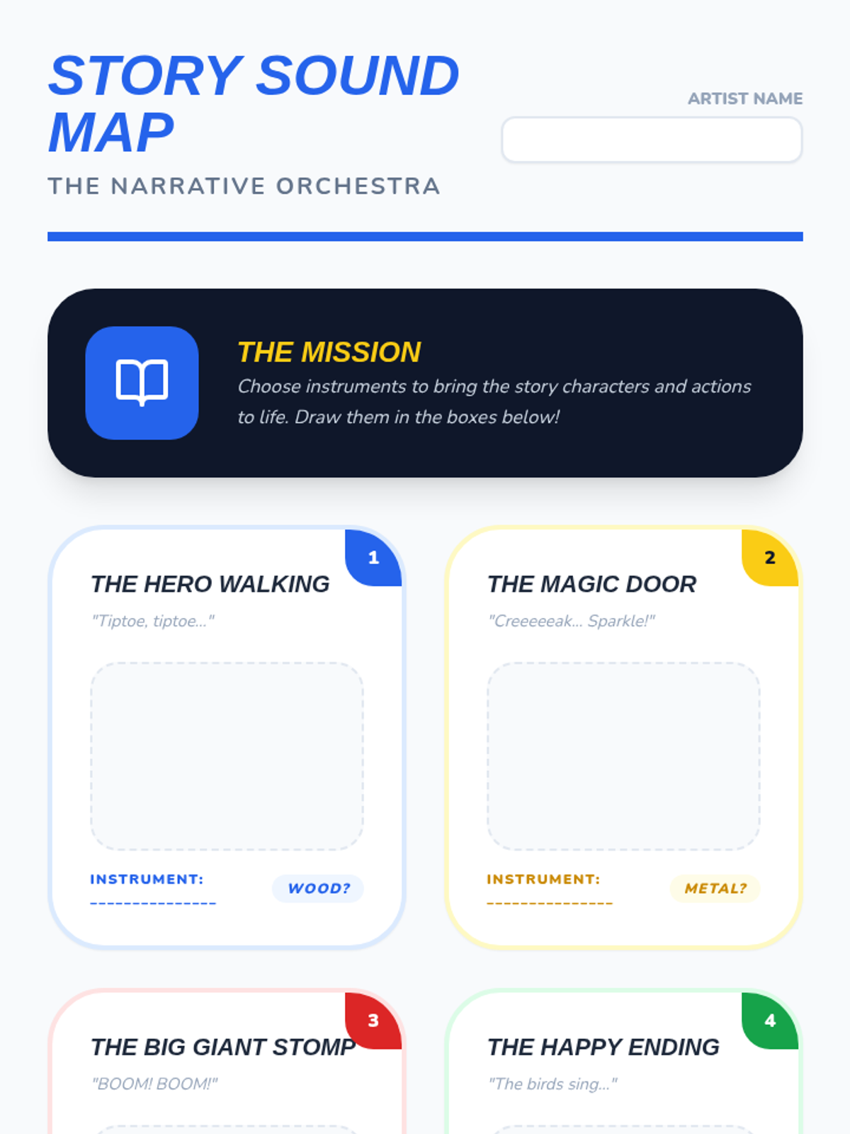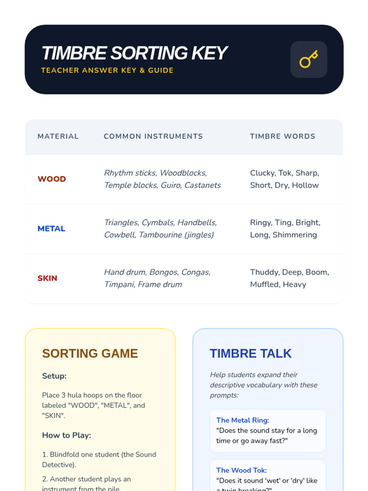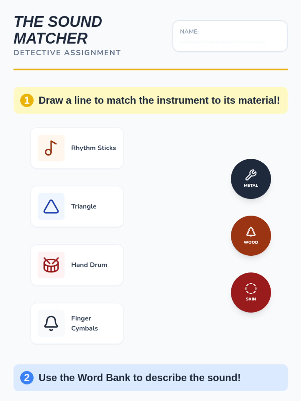 In this inquiry-based sequence, 1st-grade students explore the science of sound and instrument classification. Through hands-on investigation, they discover how materials (wood, metal, skin) determine an instrument's timbre and family, culminating in a sound-story project.