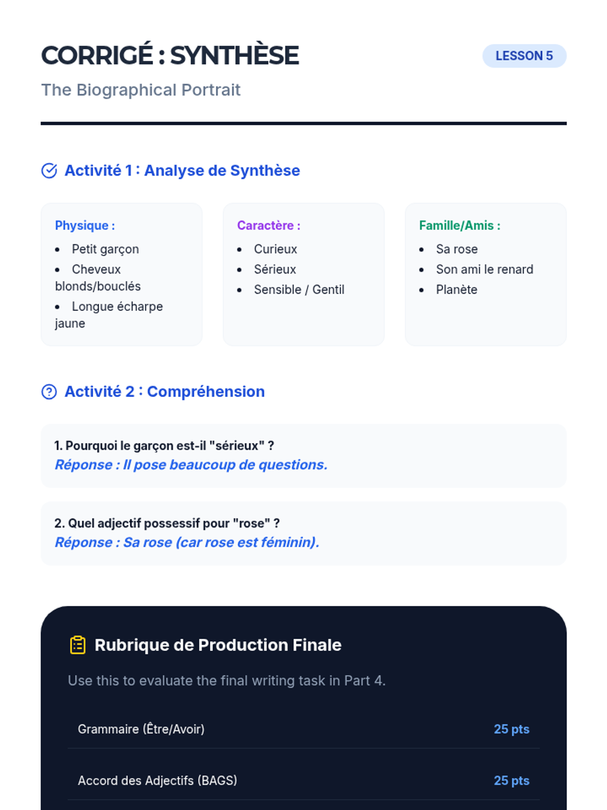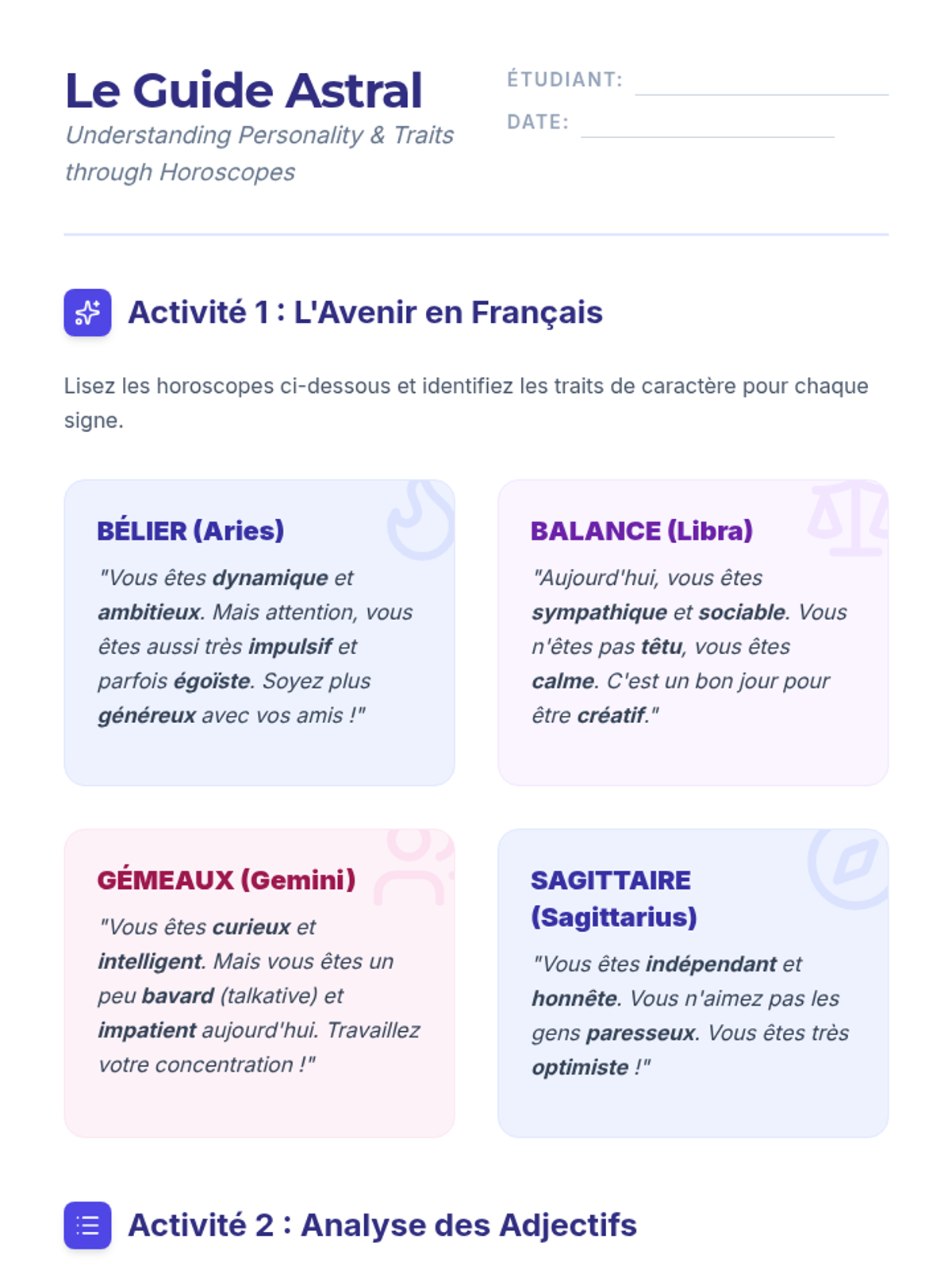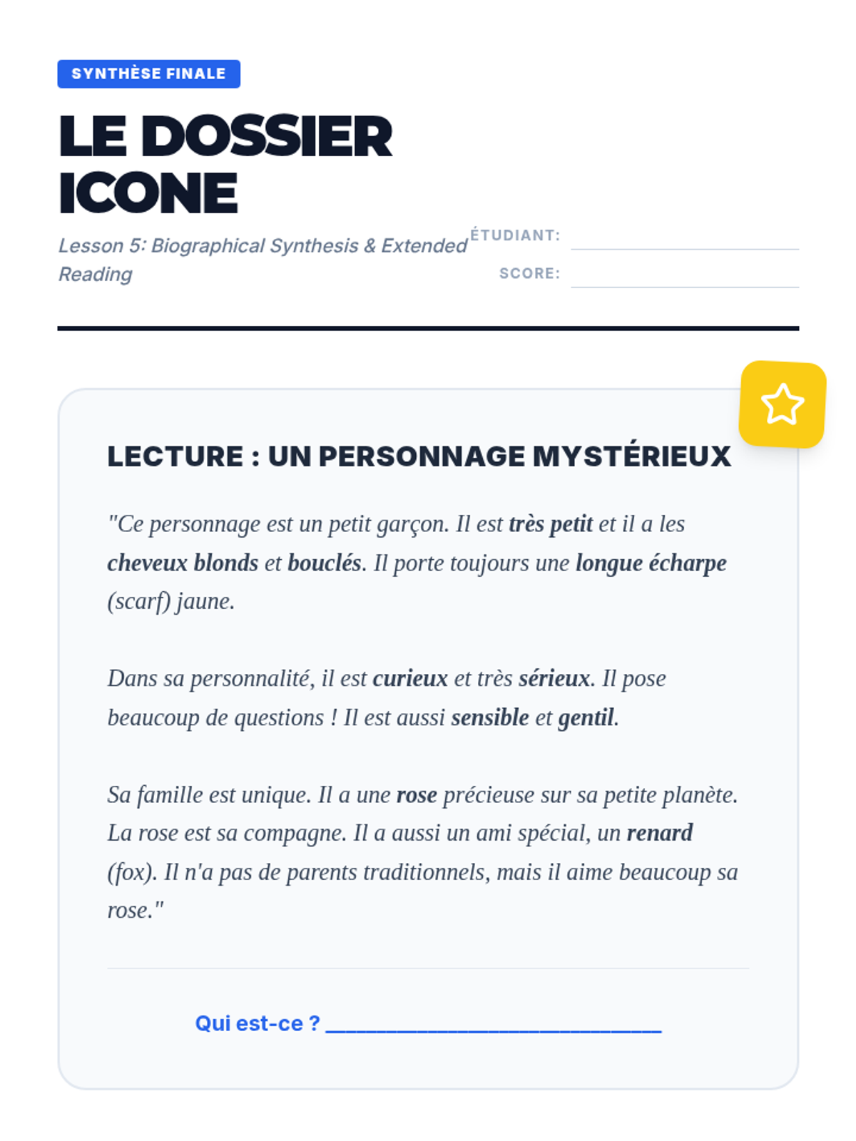 A comprehensive sequence for beginner French students focusing on identity, physical descriptions, and personality through various reading formats from social media to biographies.