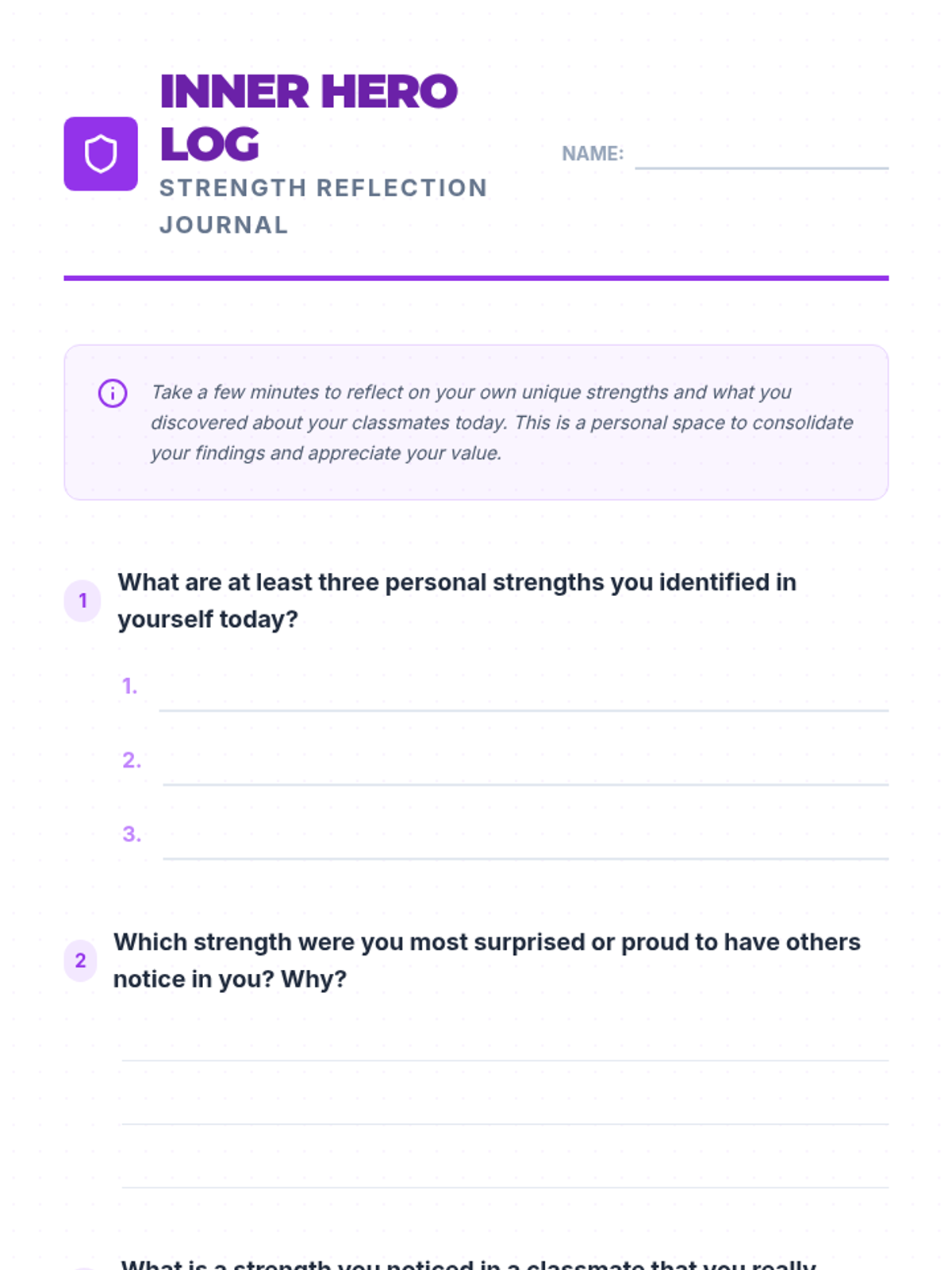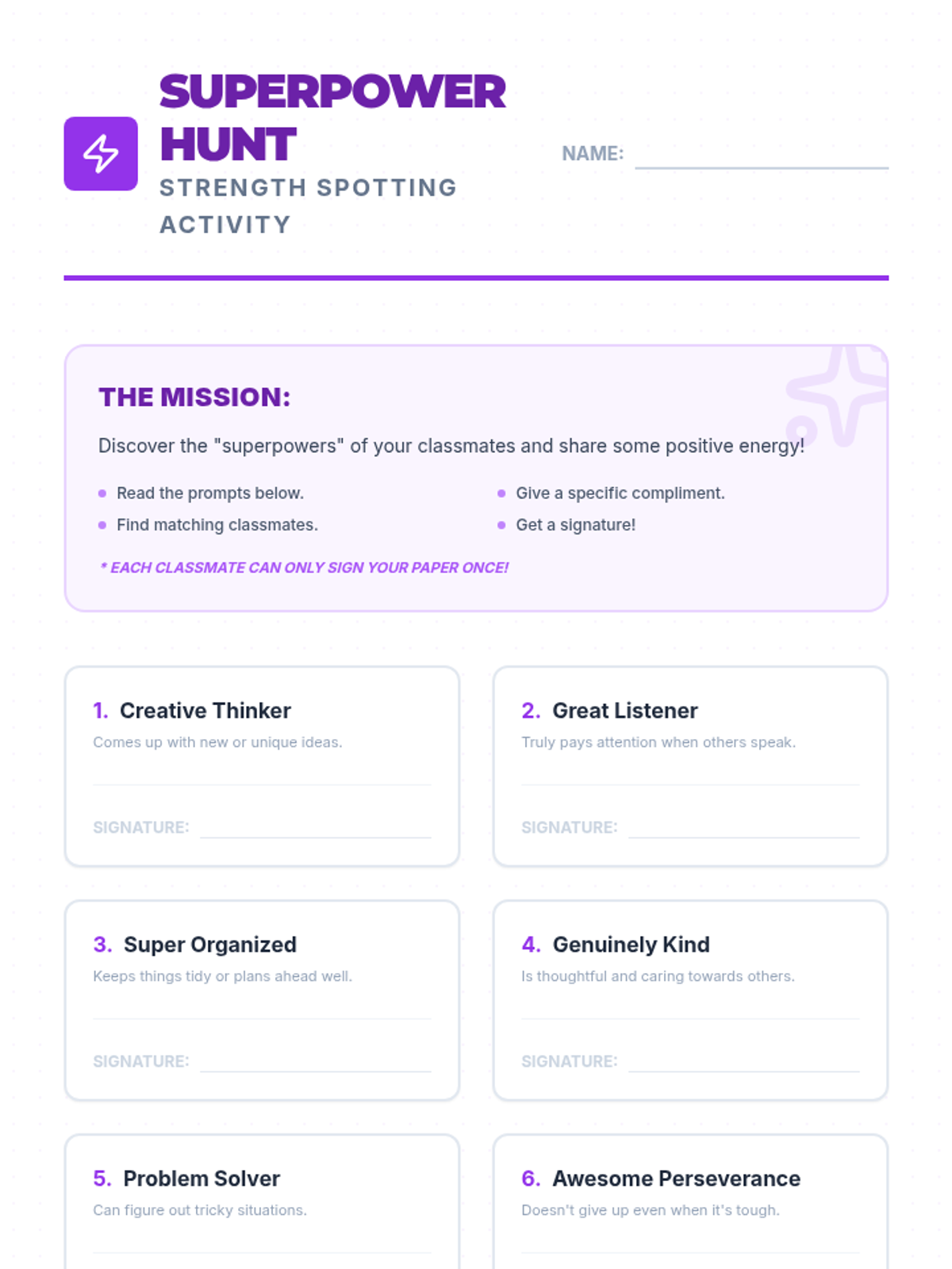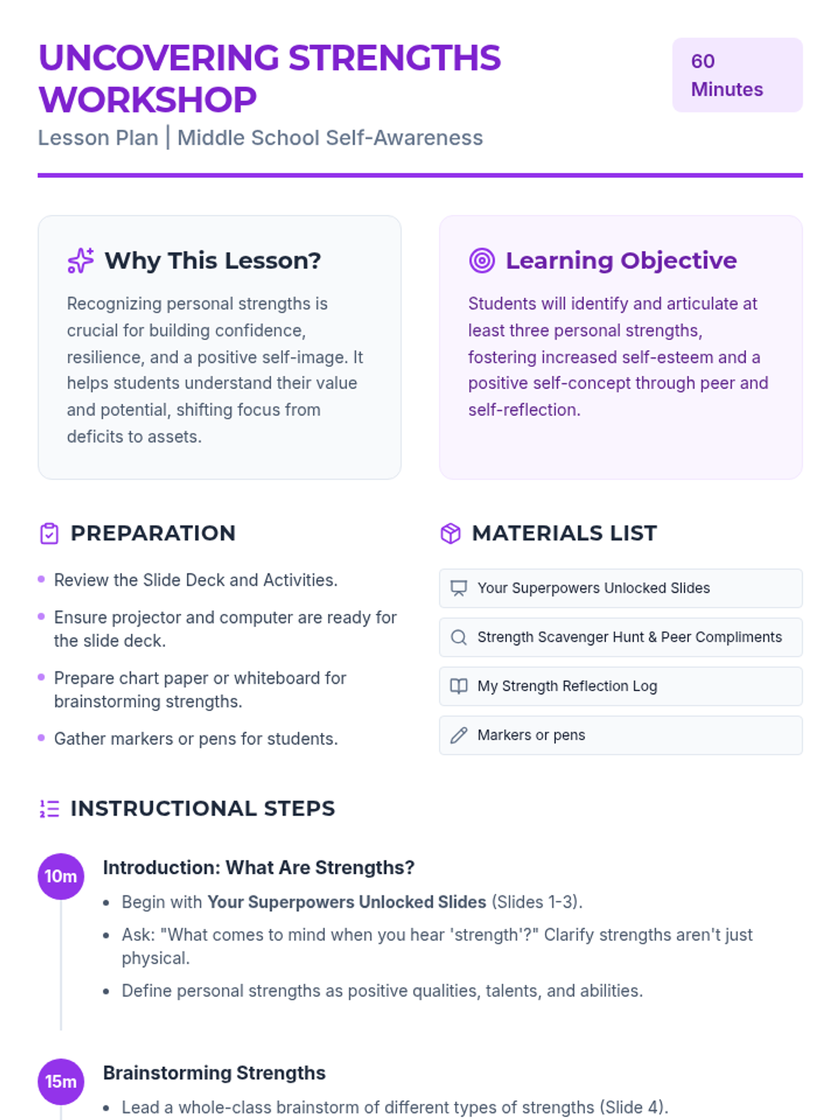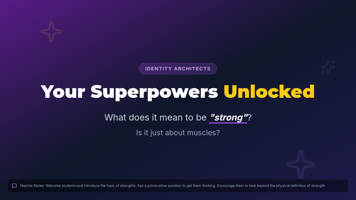 A two-part series designed for middle school students to develop a positive online presence and recognize their internal value. Students explore the concept of a digital footprint and then transition into identifying their unique personal strengths.