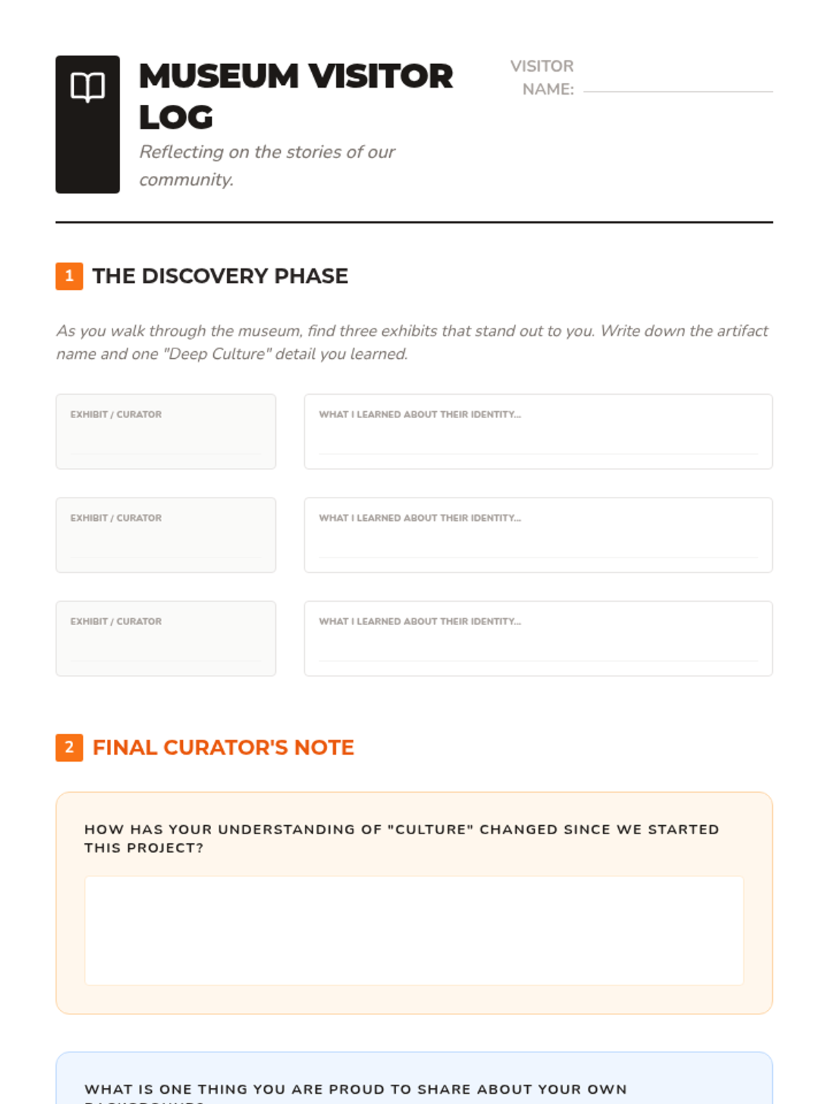 This project-based sequence invites 5th-grade students to act as anthropologists of their own lives, investigating how culture, heritage, and history shape their identity. Students explore the 'Iceberg Model of Culture,' conduct family oral histories, and curate personal artifacts for a culminating 'Museum of Me' exhibition.