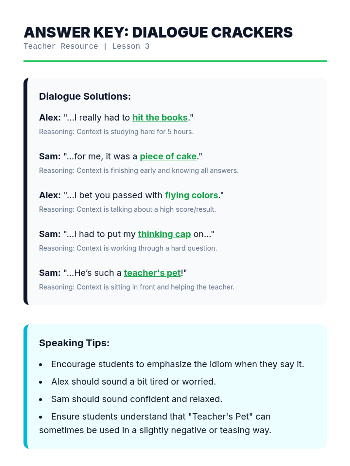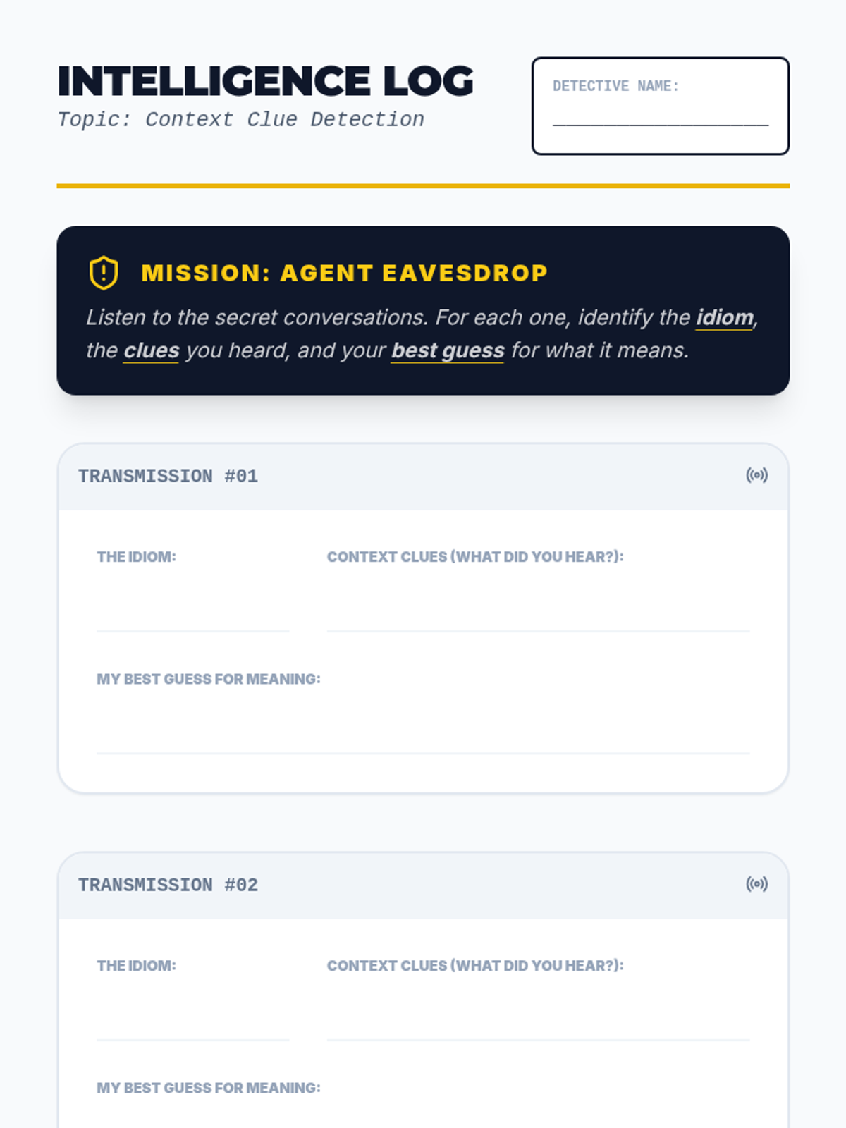A 5-lesson sequence for 4th-grade ESL students to master English idioms through a 'Code Breaker' theme, moving from literal understanding to natural conversational usage.