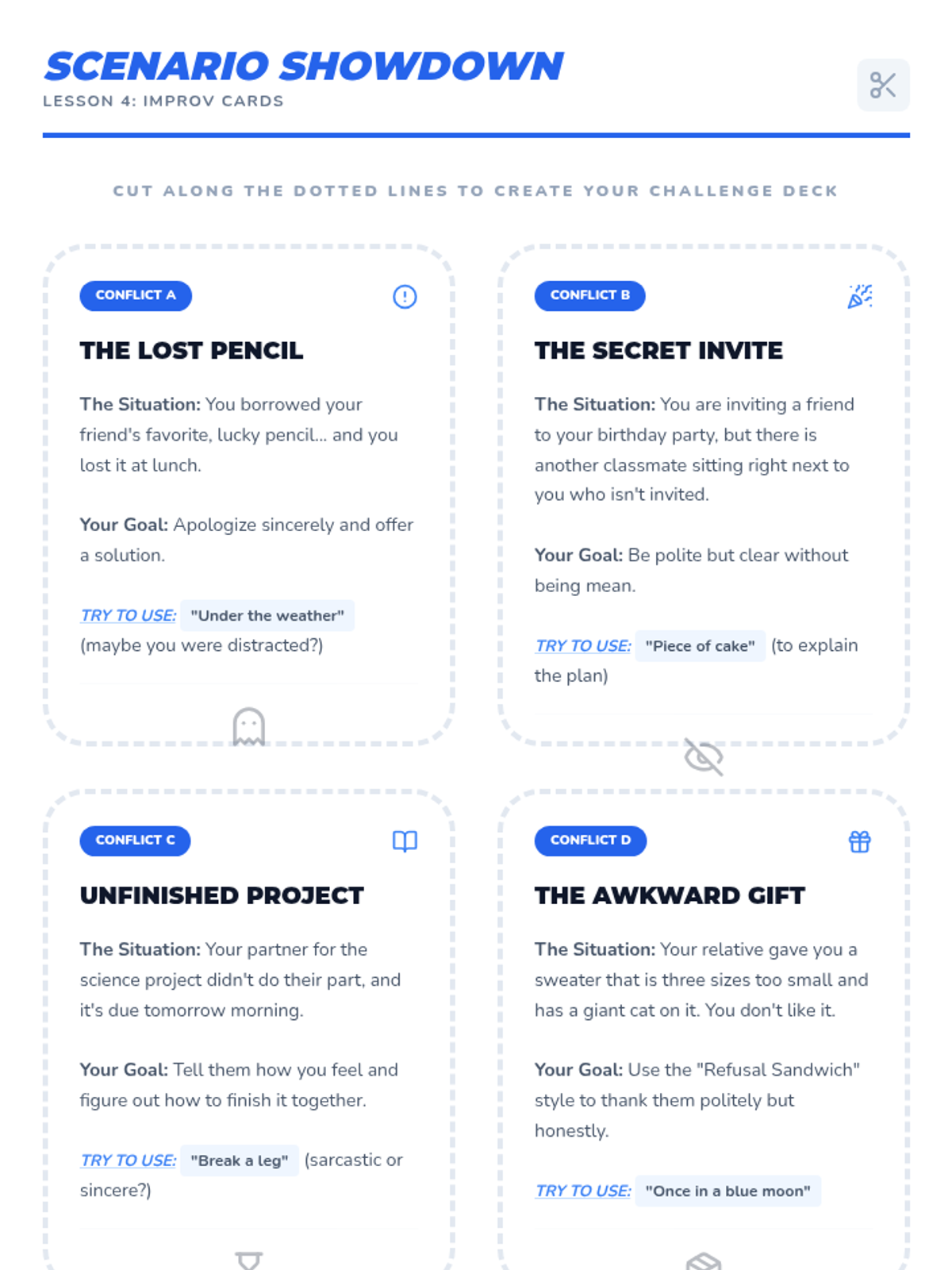 This sequence immerses intermediate ESL students in the nuances of casual English conversation, focusing on idiomatic expressions, emotional intonation, and social registers. Students transition from literal understanding to figurative fluency through inquiry, simulation, and performance.