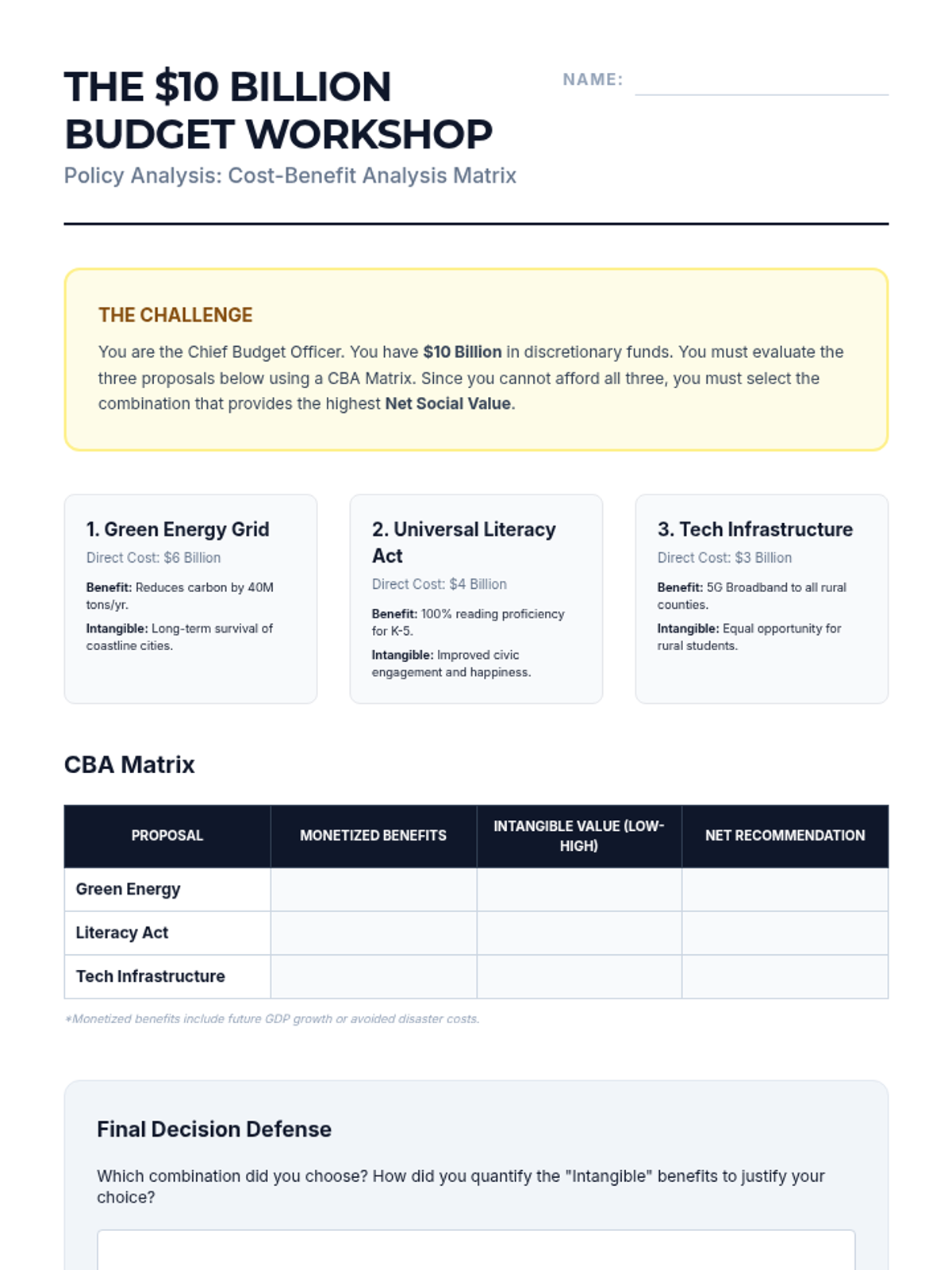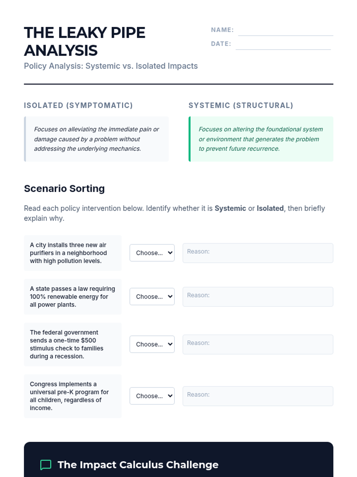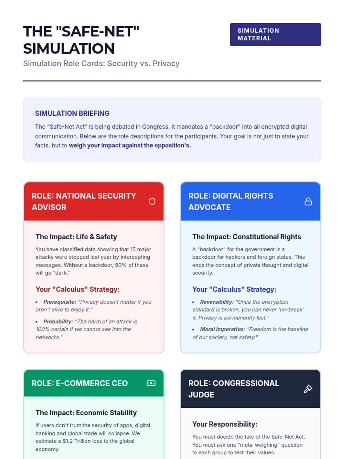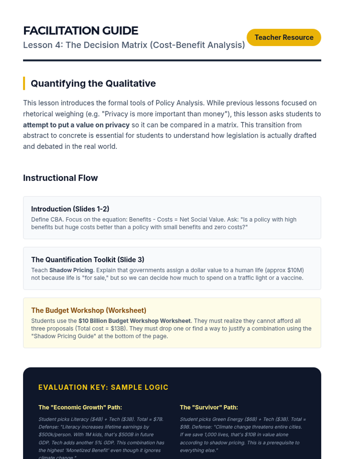 This sequence applies impact calculus to complex real-world policy decisions, moving beyond abstract debate theory to concrete analysis. Students examine case studies to understand how leaders weigh competing interests and culminate in a policy justification simulation.