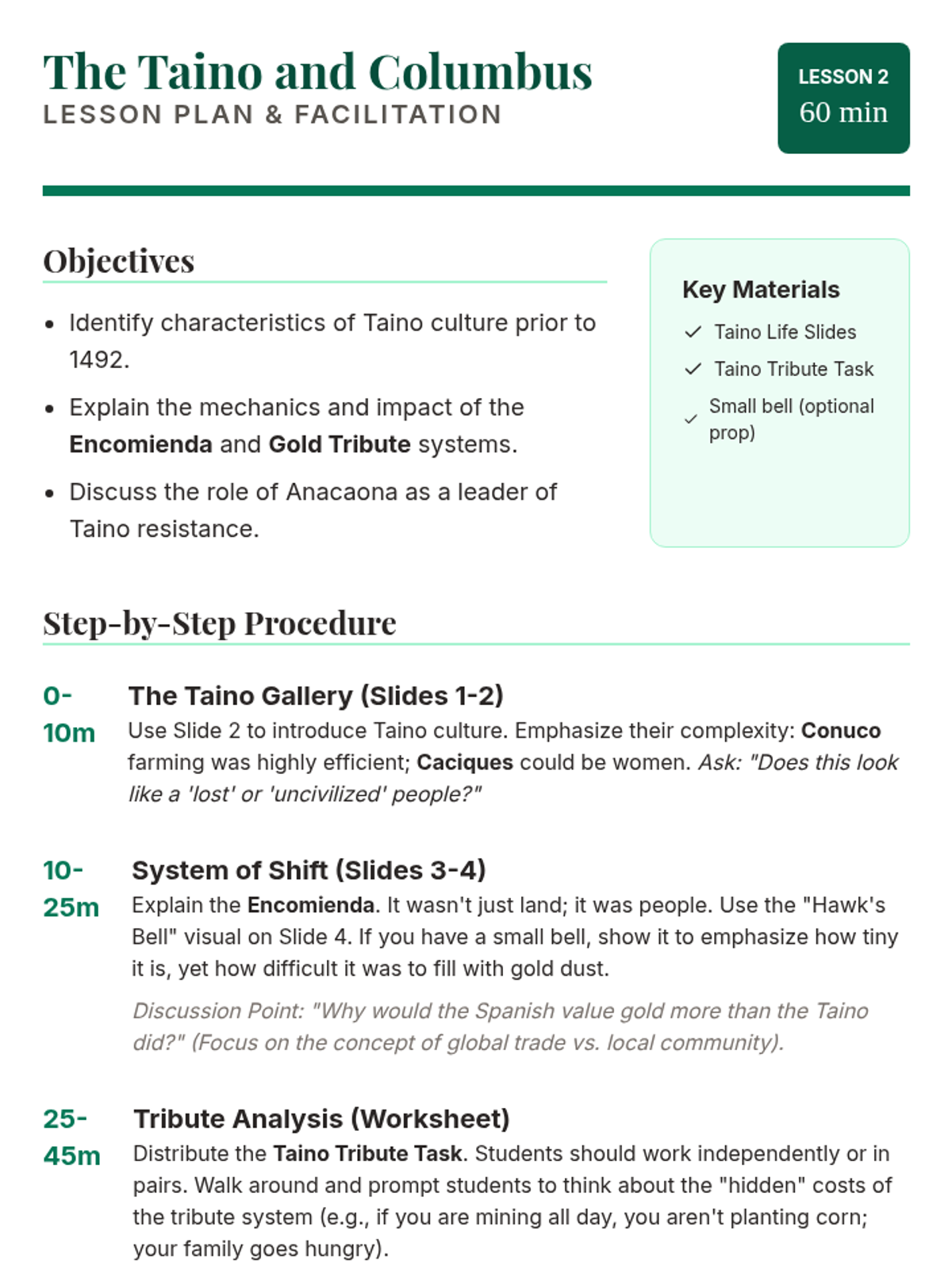 This sequence critically examines the Age of Exploration from the perspective of Indigenous peoples in the Americas. Students analyze primary accounts, debunk myths of passive reception, and explore the complexity of interactions including trade, alliance, conflict, and resistance.