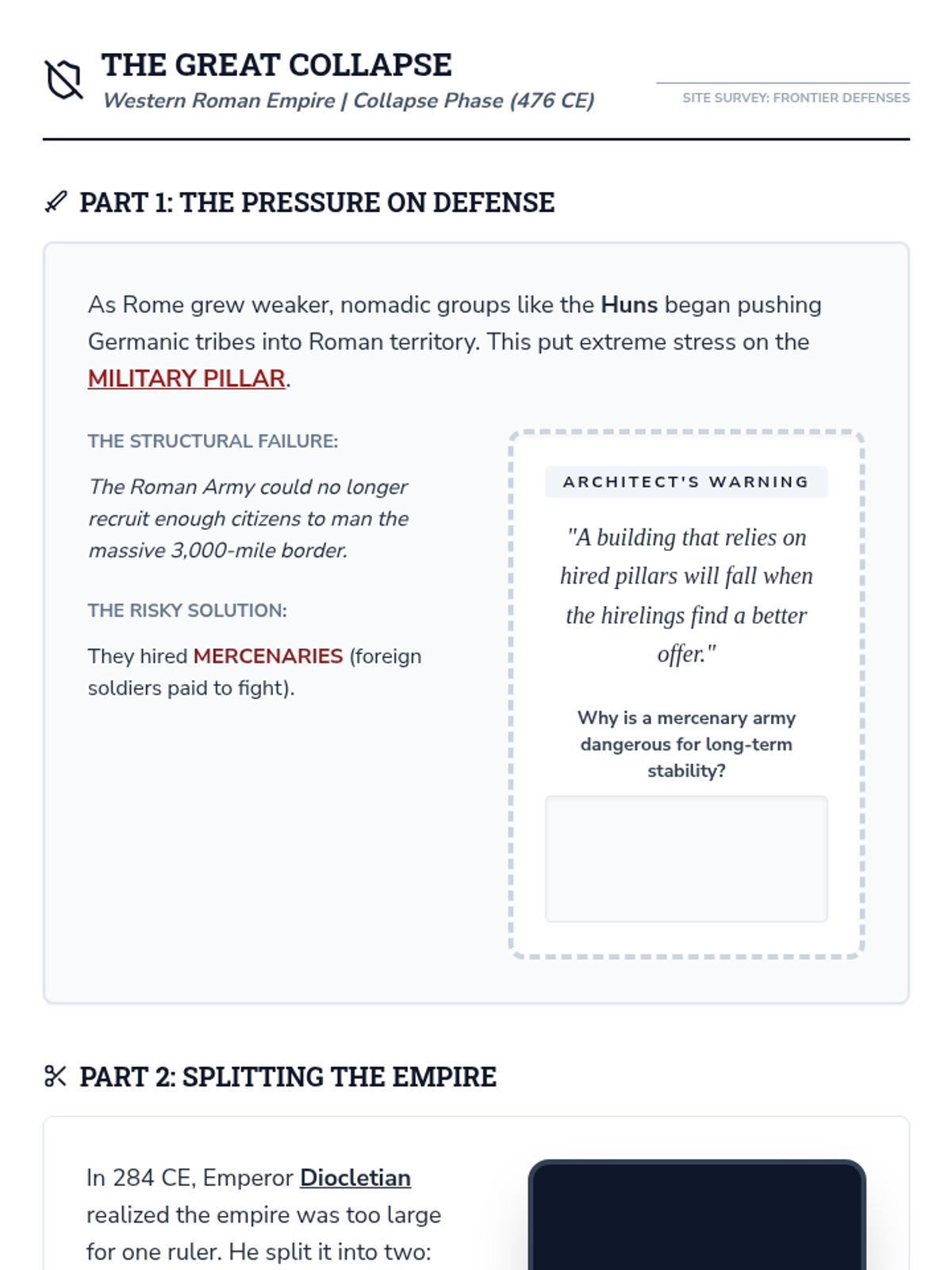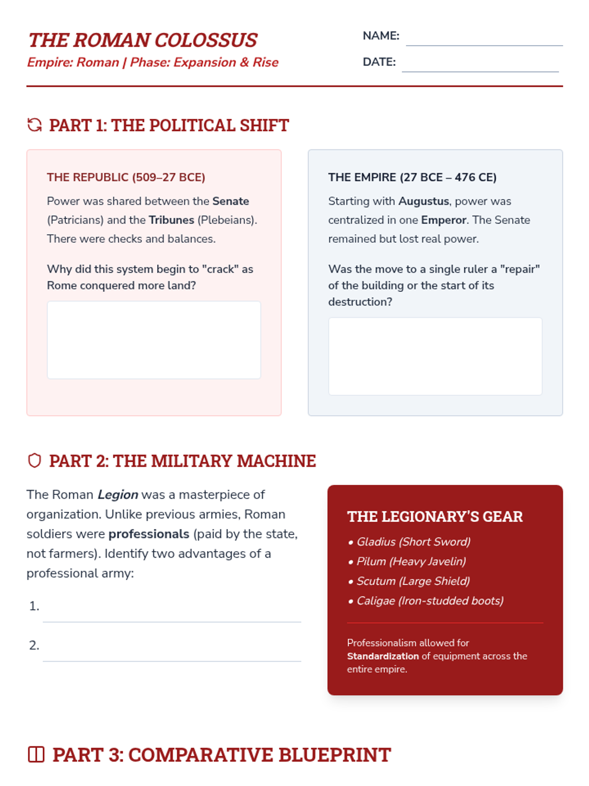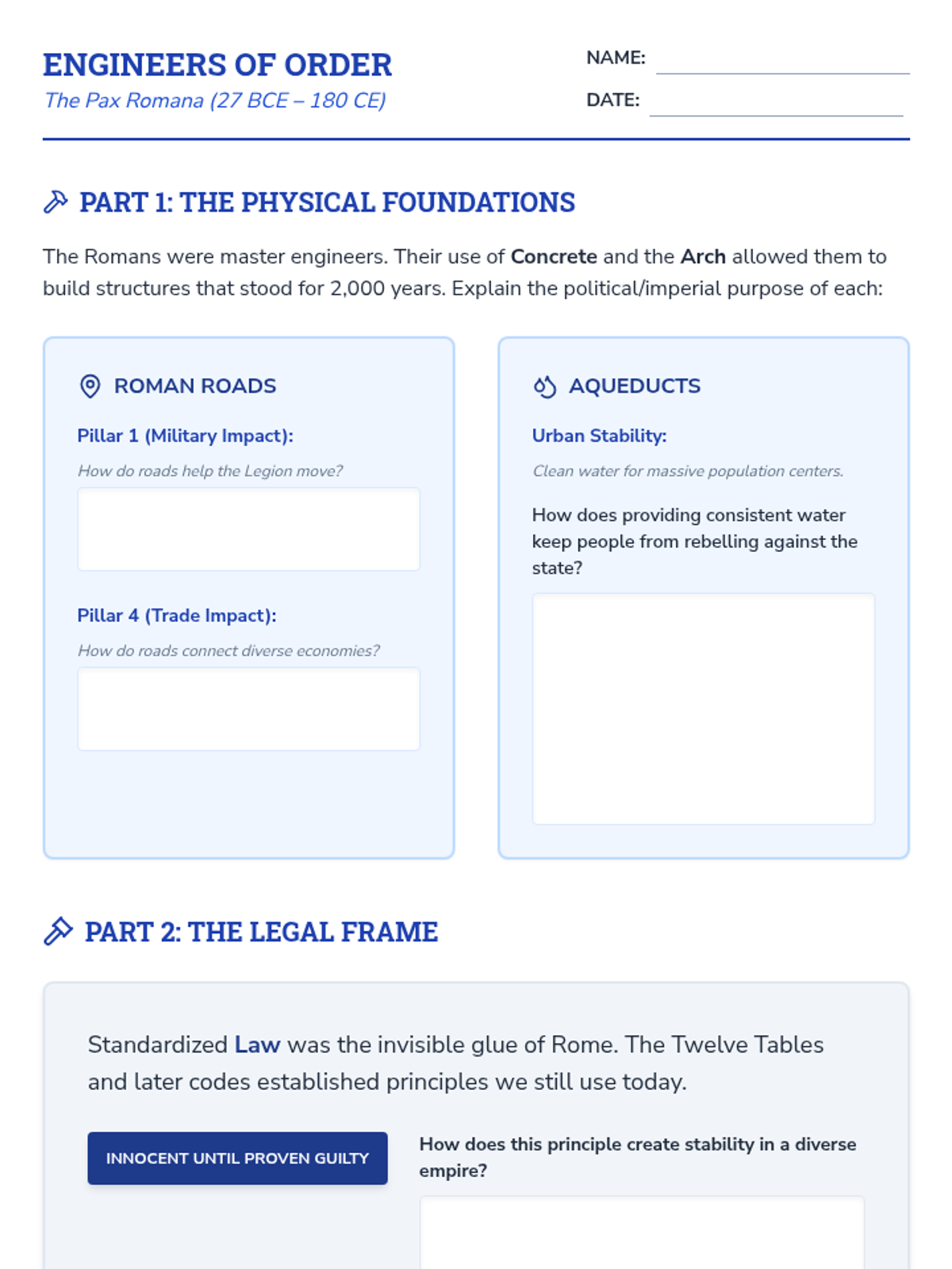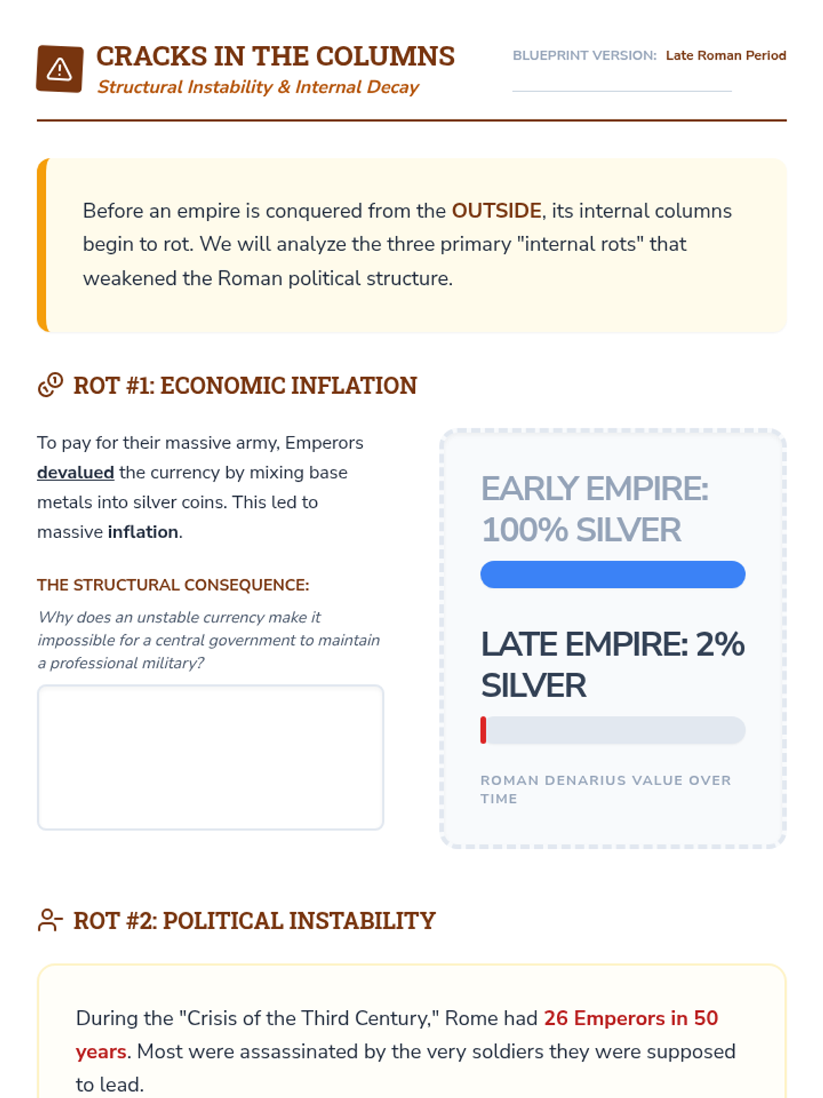 An intensive two-week exploration of the Classical Period's greatest powers—Persia, China, and Rome. Students act as 'Imperial Architects,' analyzing the structural components that allowed these empires to rise, flourish, and eventually crumble.