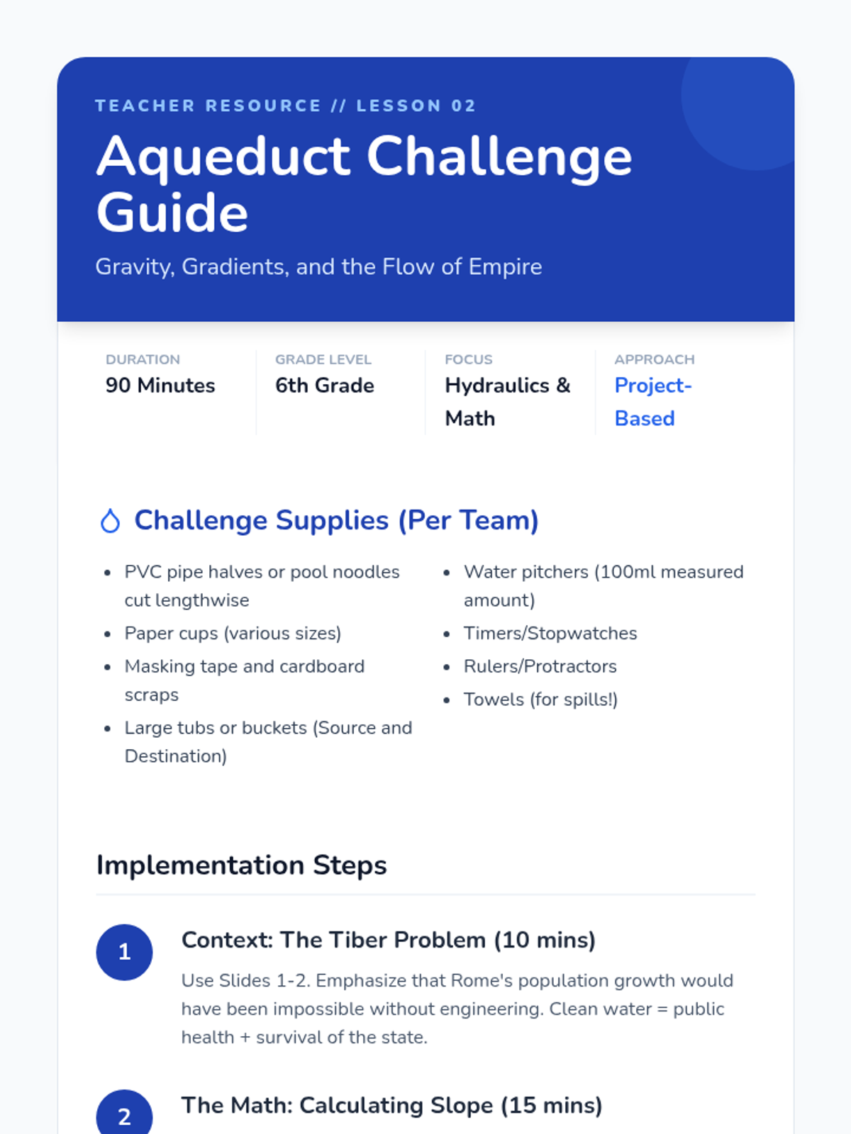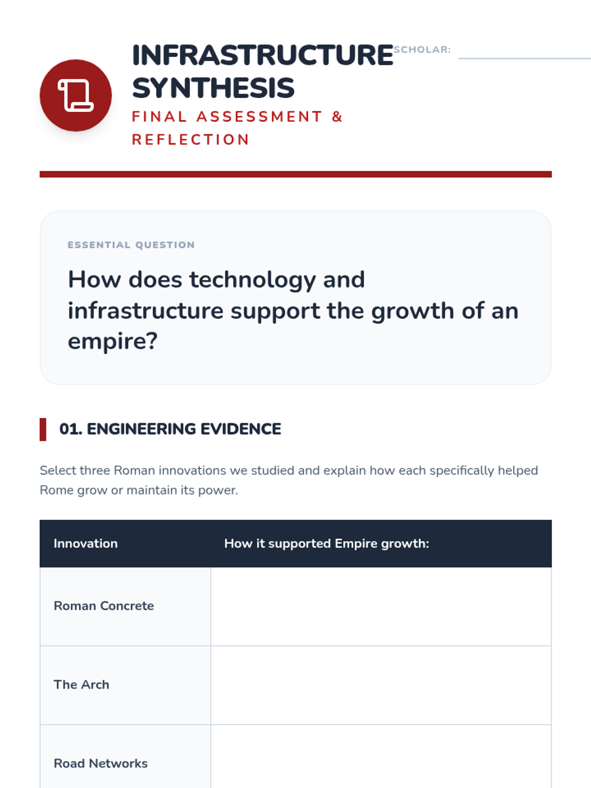 A STEM-focused investigation into Roman engineering, focusing on arches, concrete, aqueducts, roads, and city planning to understand how infrastructure sustained the Roman Empire.