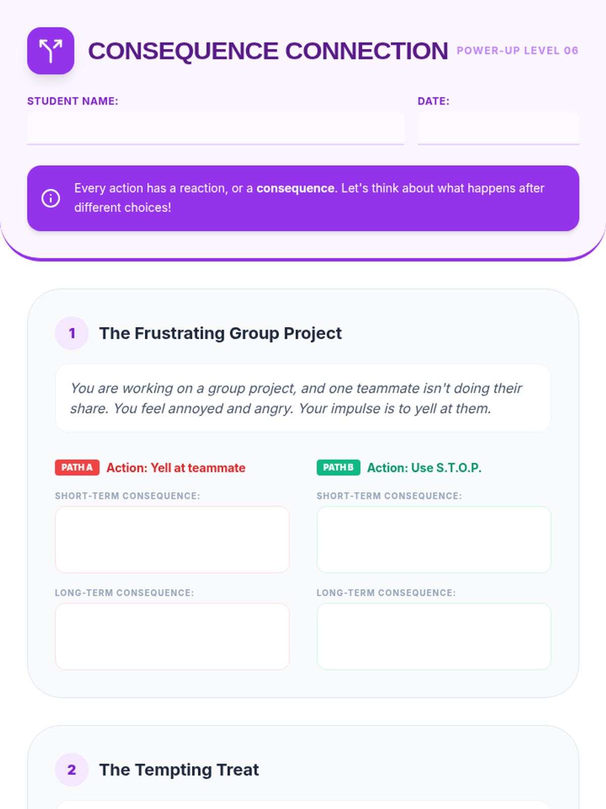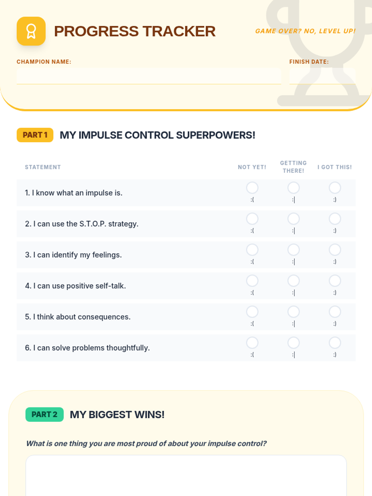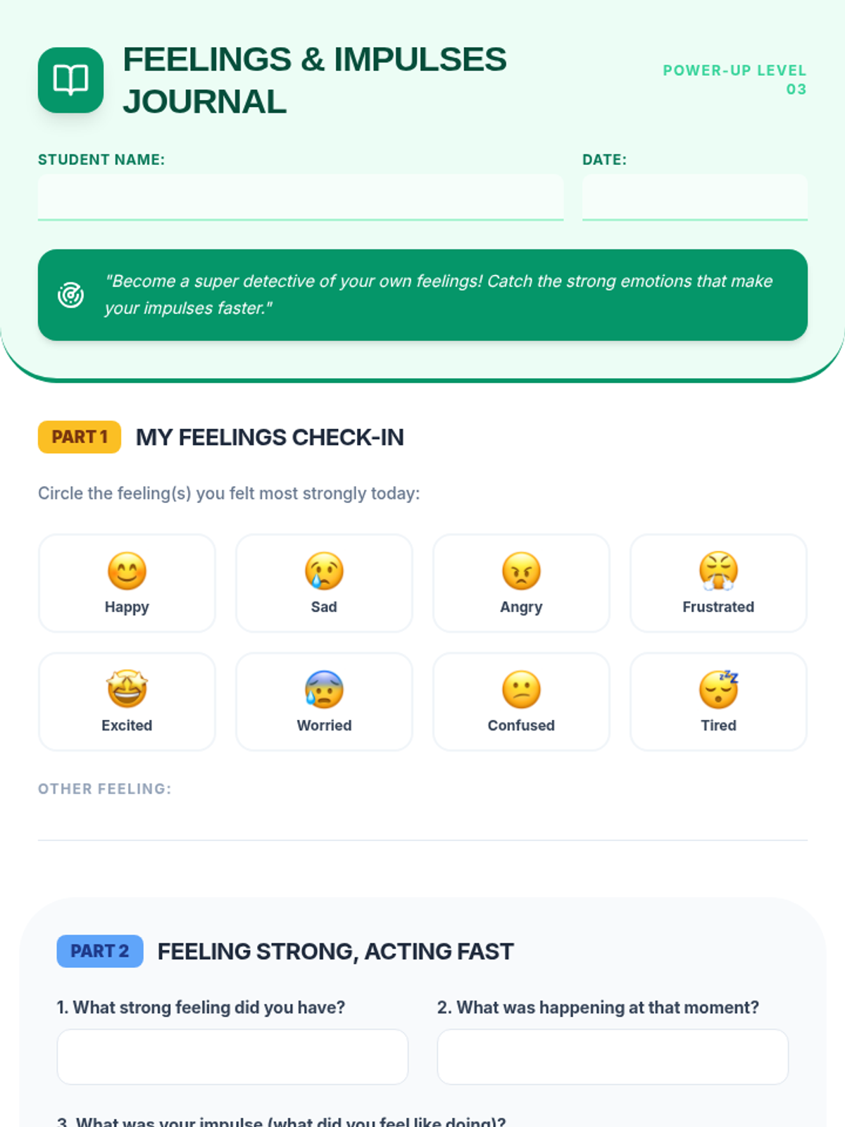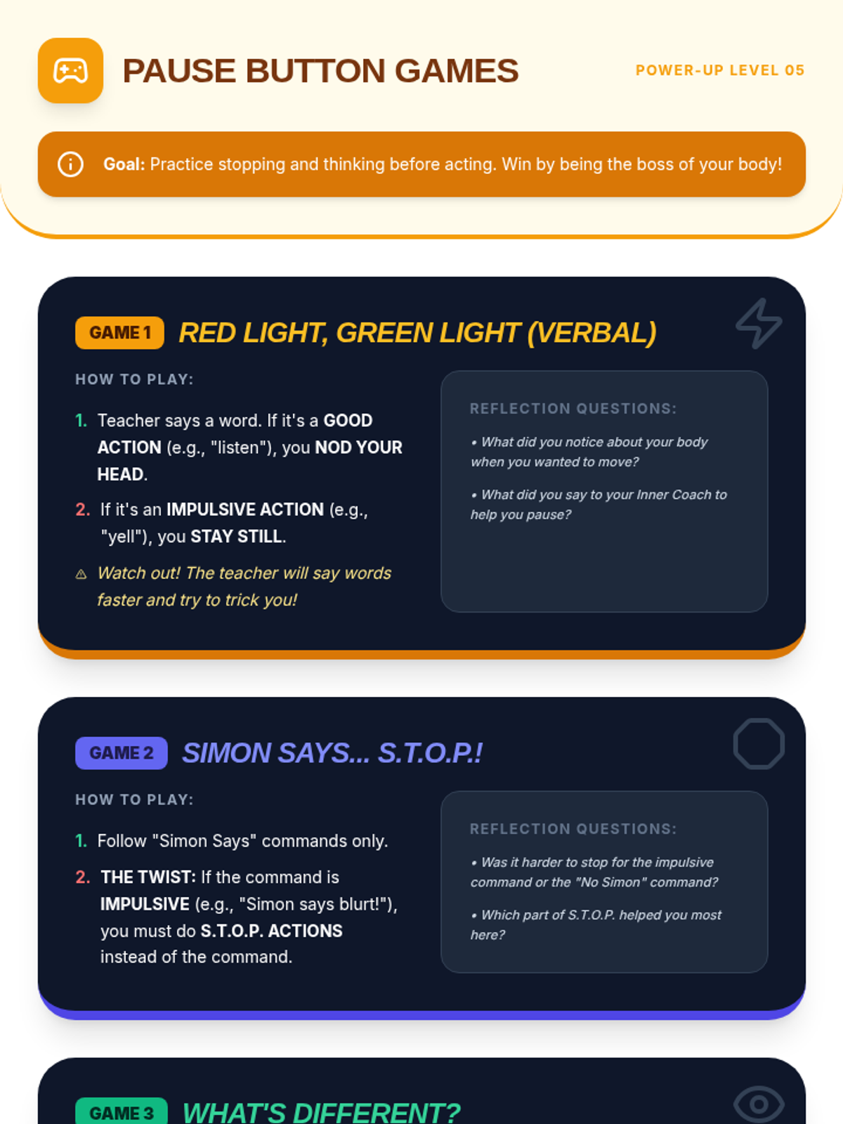 An 8-session Tier 3 intervention unit for 5th-grade students to develop impulse control and self-regulation skills through the S.T.O.P. strategy, identifying feelings, and positive self-talk.