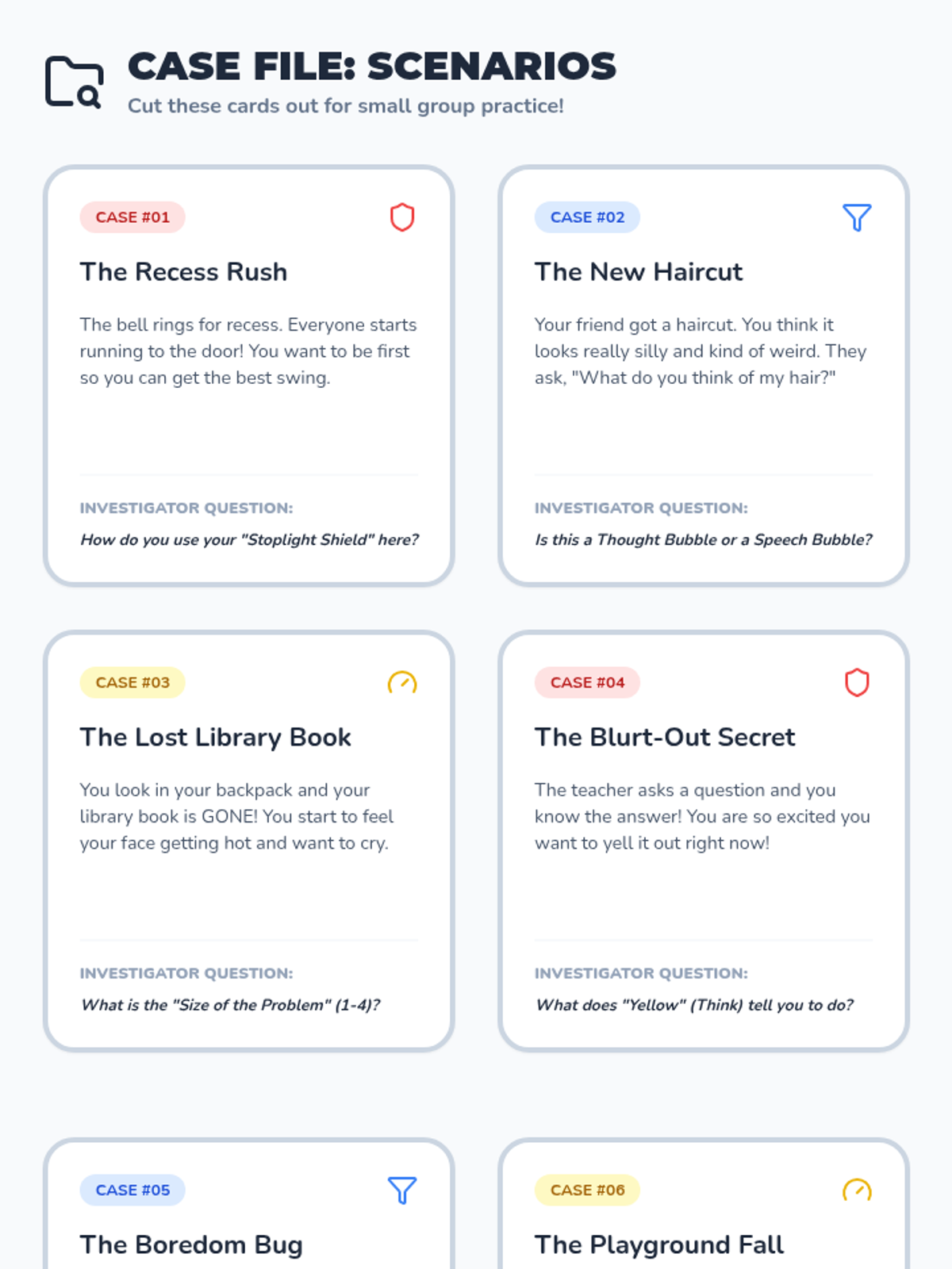 A comprehensive 6-week curriculum for 2nd graders focusing on impulse control, social filters, and emotional regulation using a detective theme.