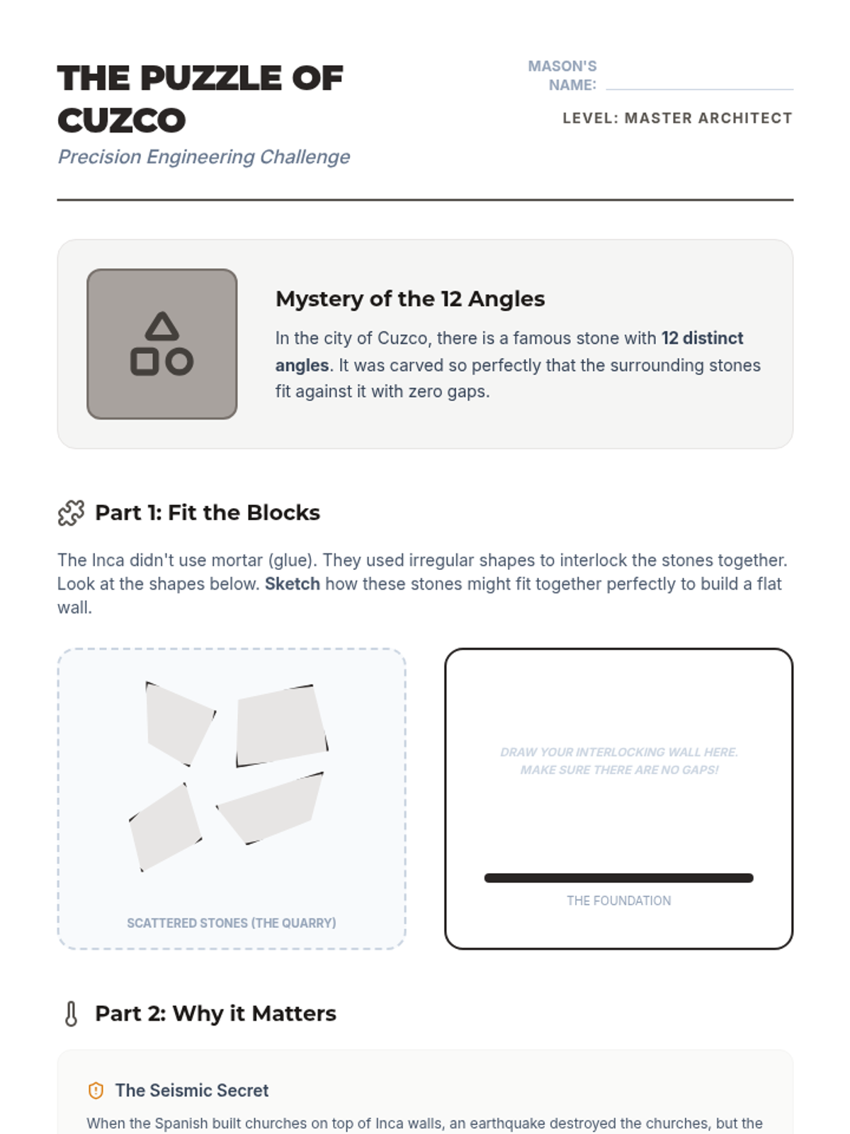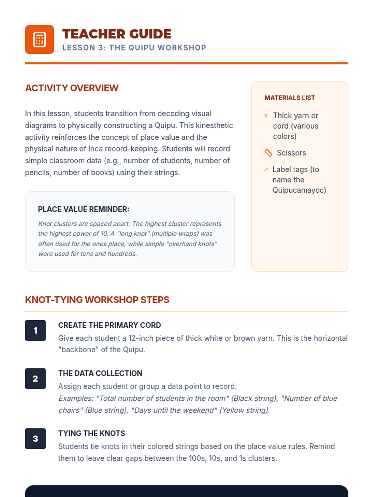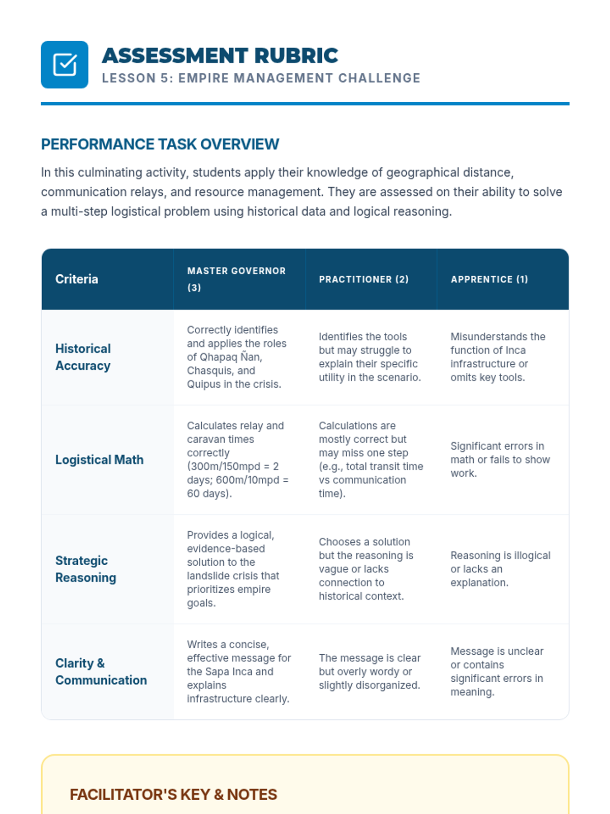 This sequence explores how the Inca Empire managed a vast mountain territory using the Qhapaq Ñan road system, Chasqui runners, and Quipu record-keeping. Students investigate geography, communication, and engineering through hands-on simulations and data analysis.