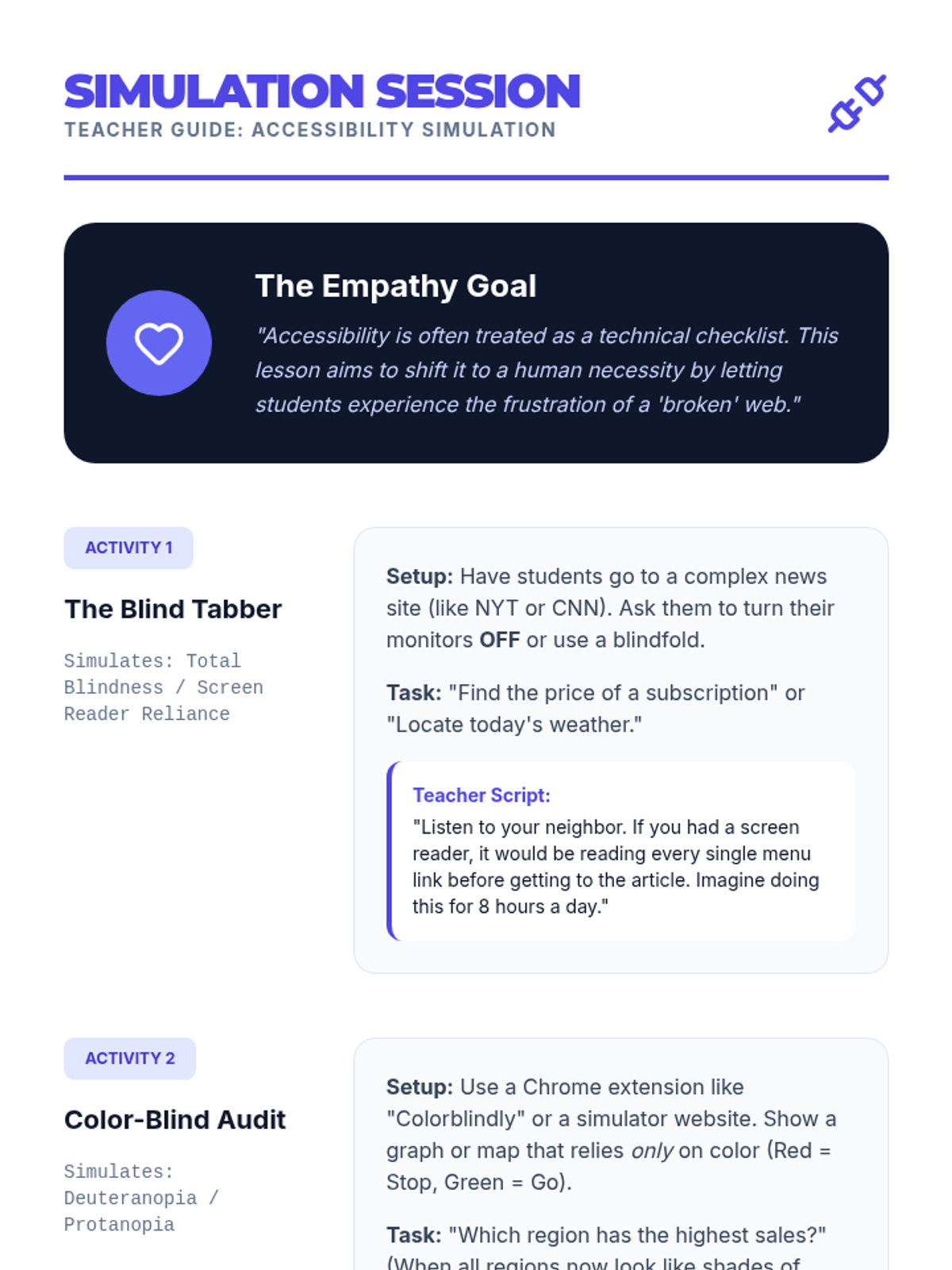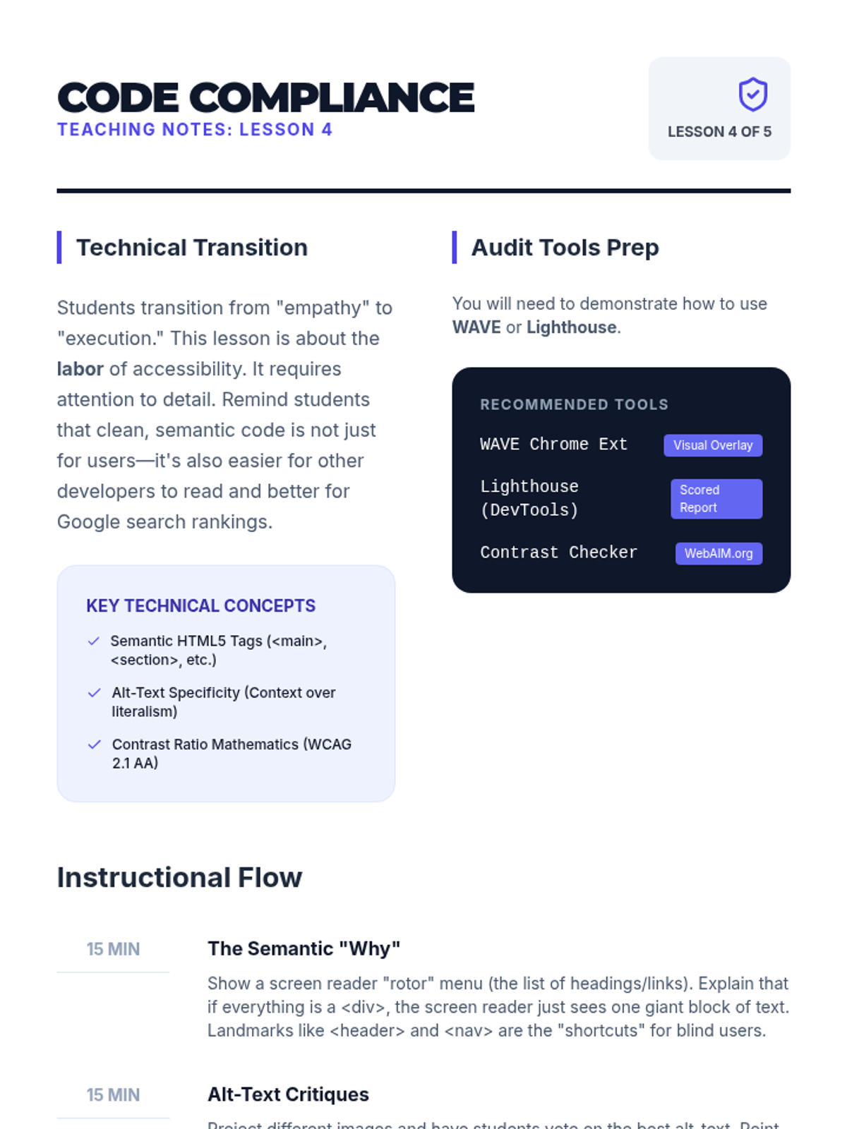 An 11th-grade digital literacy sequence focusing on the principles of User Experience (UX) and Web Accessibility. Students move from theoretical design thinking to practical application of WCAG standards and usability testing.